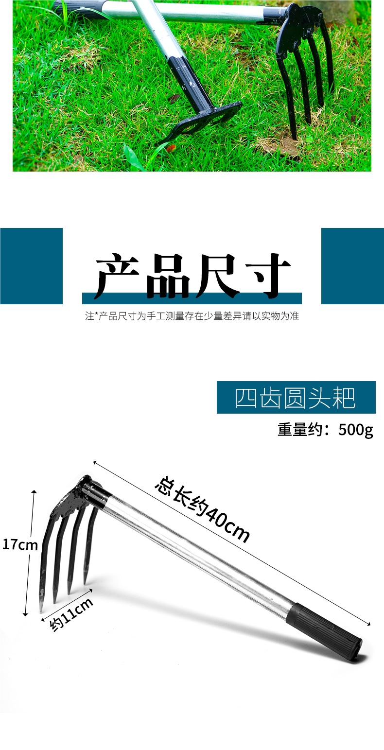 • FLH 4톱니 철제 손잡이가 있는 작은 갈퀴(둥근 톱니)