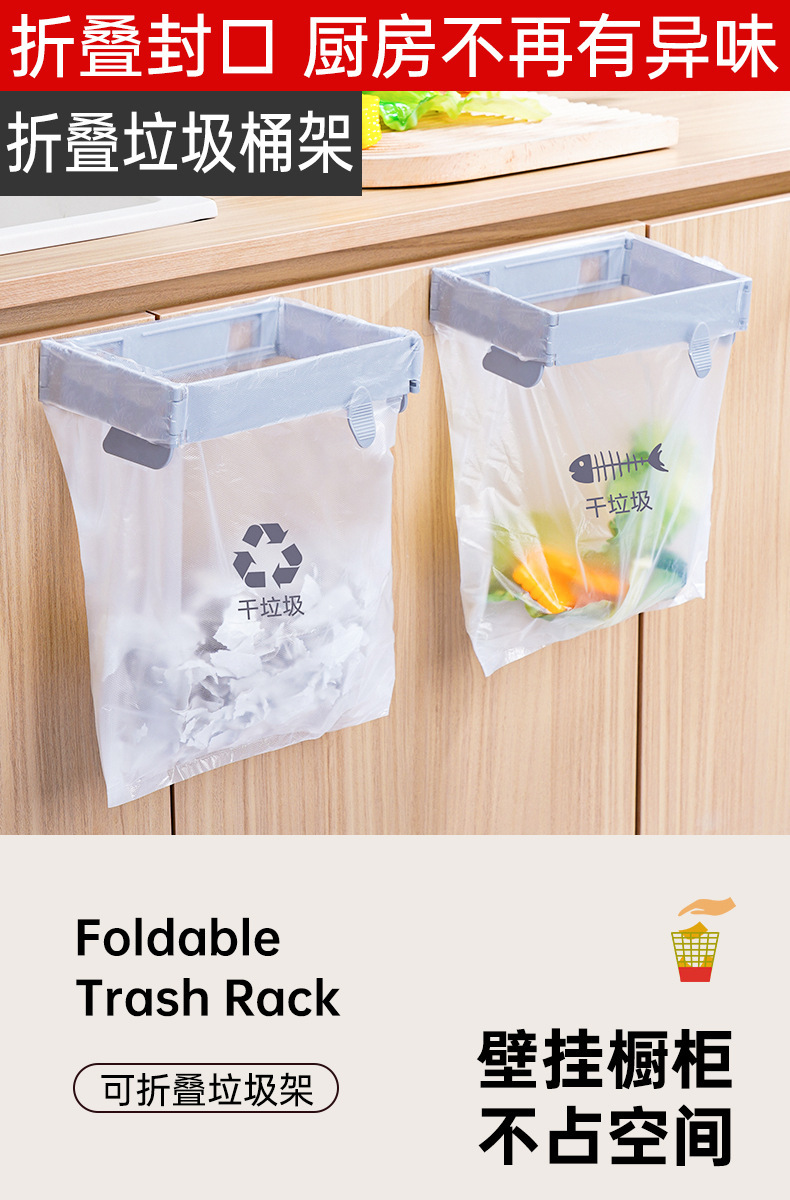 벽걸이 형 접이식 쓰레기 용기 가정용 캐비닛 도어 욕실 주방 데스크탑 접이식 보관 쓰레기 봉투 브래킷