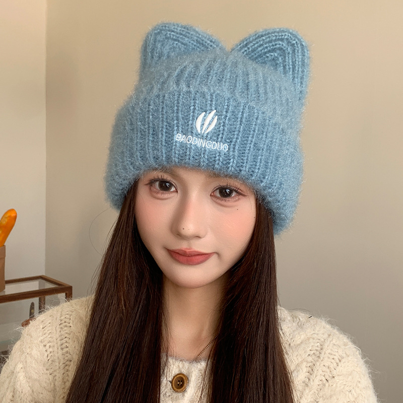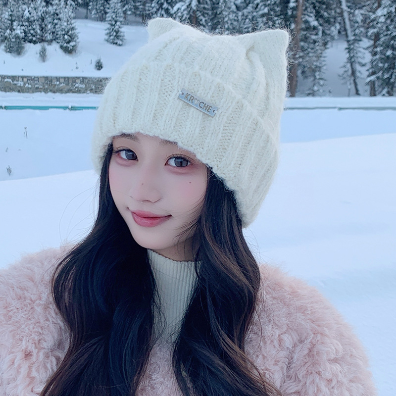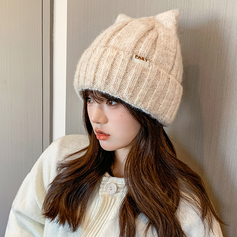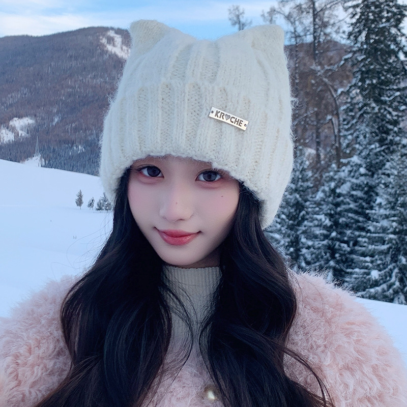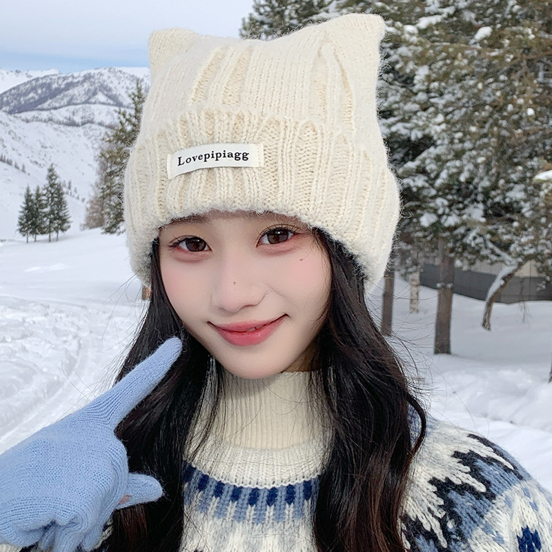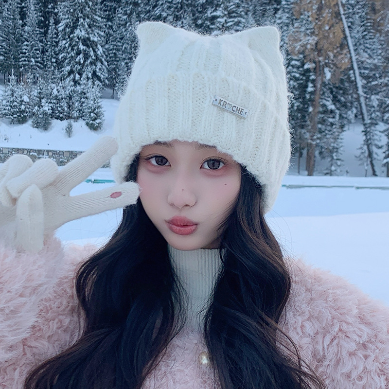 고양이 귀 울 모자 어린이 가을과 겨울 일본 기모 두꺼운 따뜻한 니트 캡 냉장 귀 보호 캡스토어 가기
