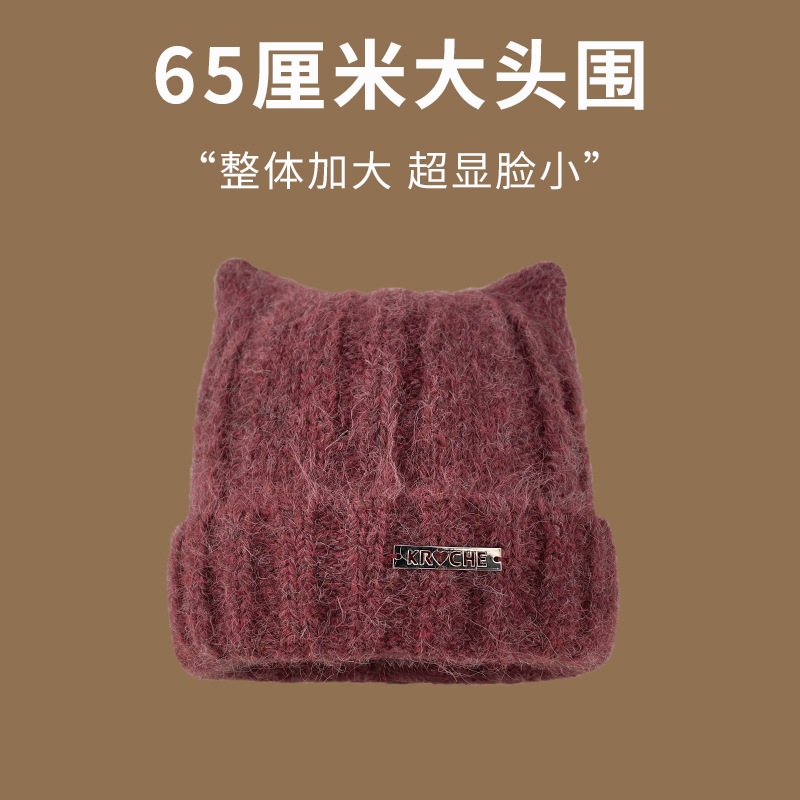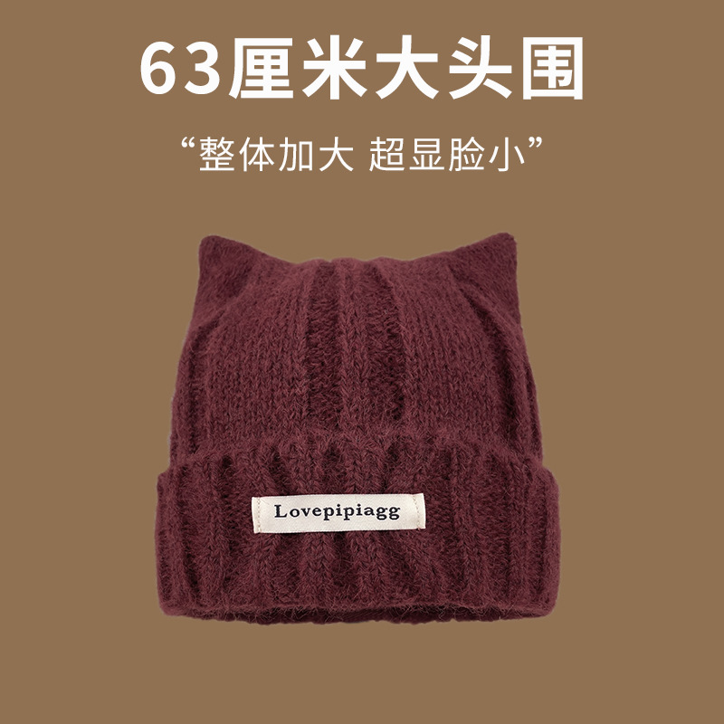 • A-630 와인색 레터링 고양이 귀 니트 모자