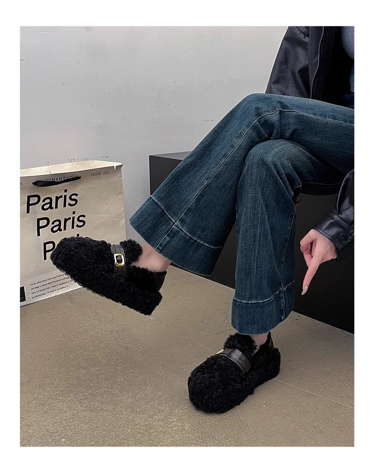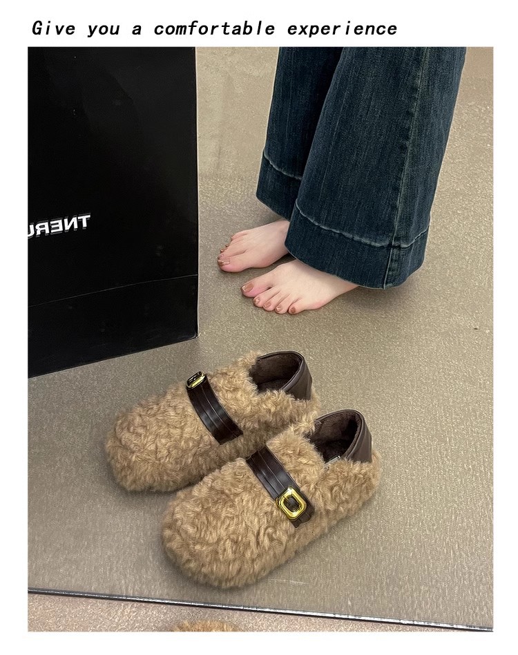 패션 레트로 다재다능한 Peas Cotton Shoes 여성의 2024 가을 및 겨울 새로운 소프트 솔 슬림 슬립 온 신발스토어 가기