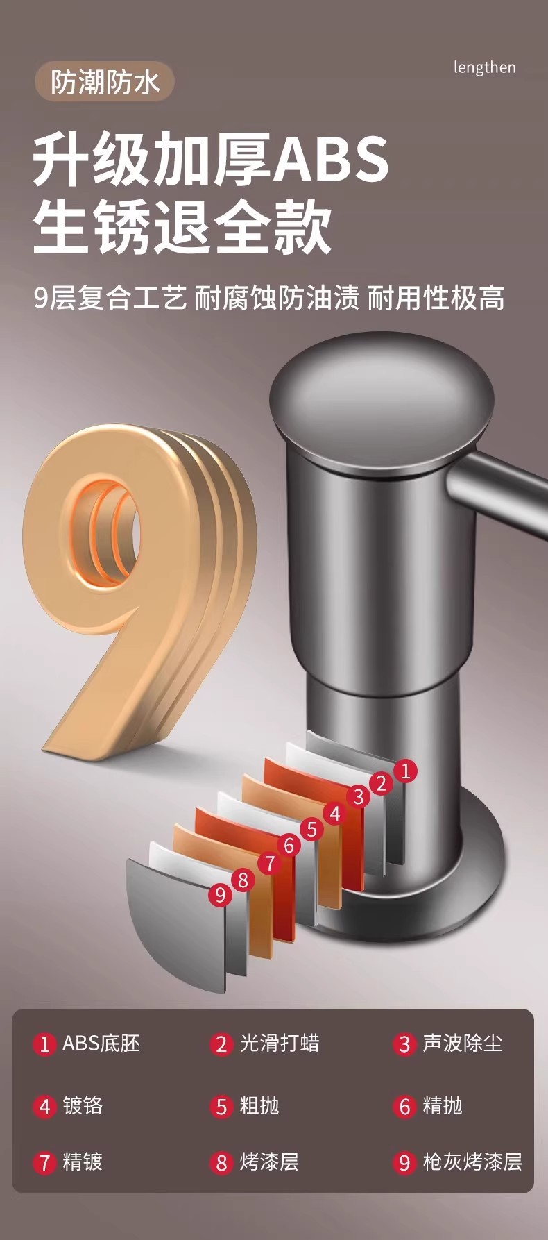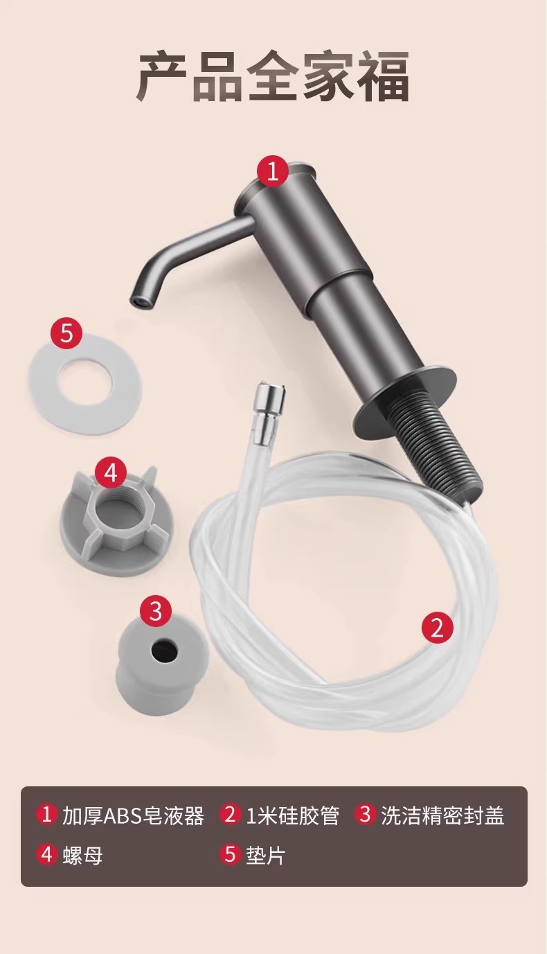 • 강화된 비누 디스펜서 실버 + 1m 호스 + 중력 볼