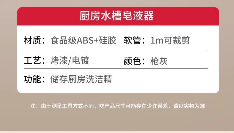 • 강화된 비누 디스펜서 회색 + 1m 호스 + 중력 볼