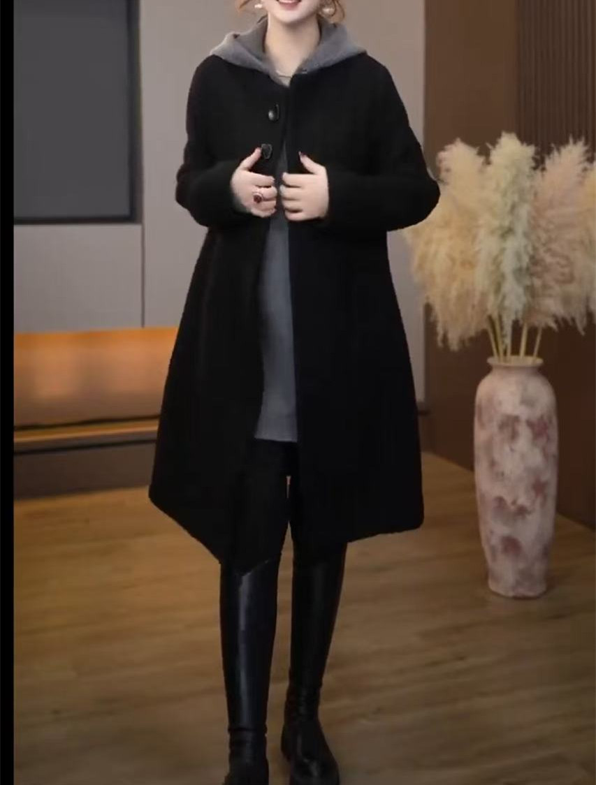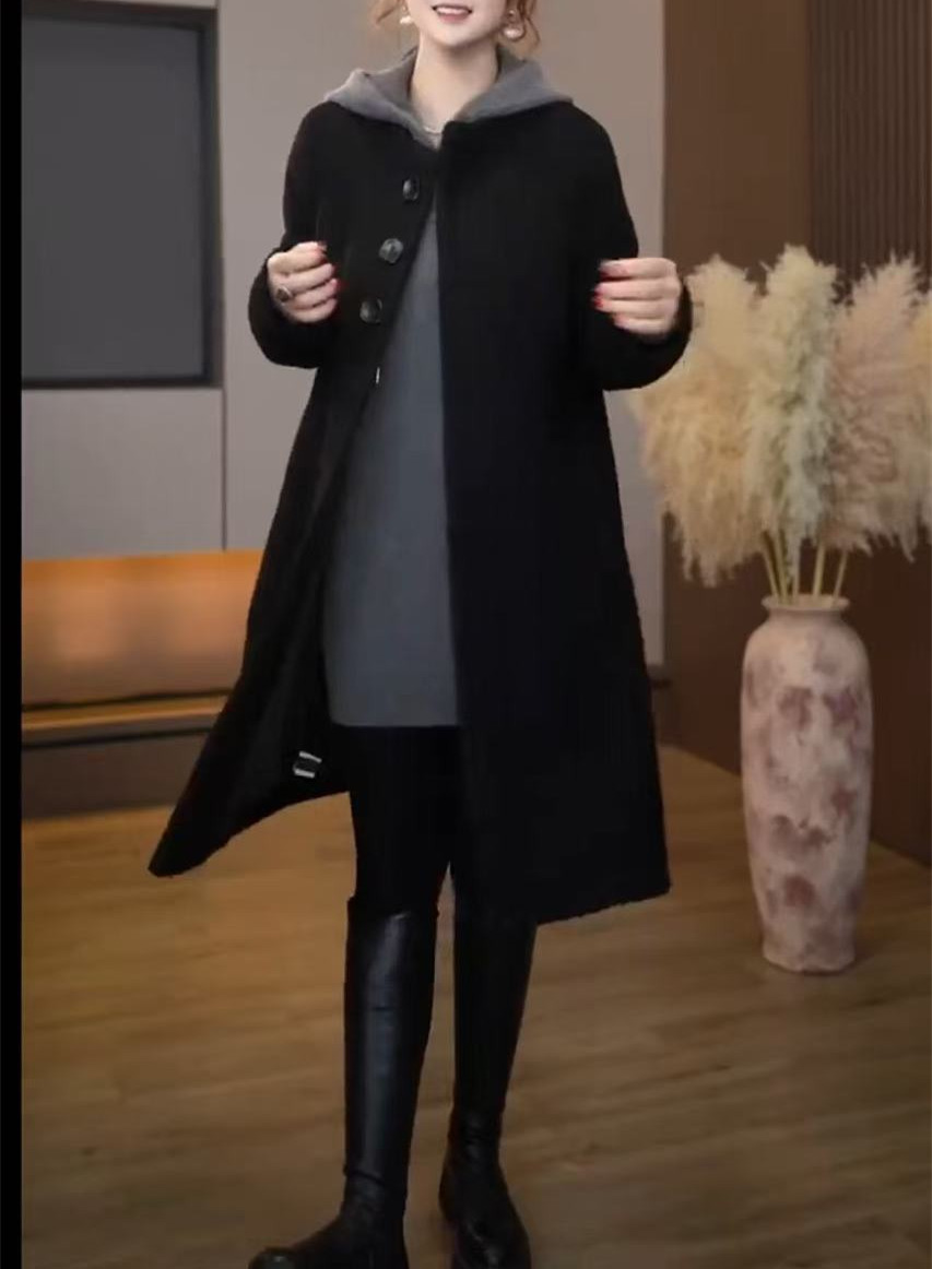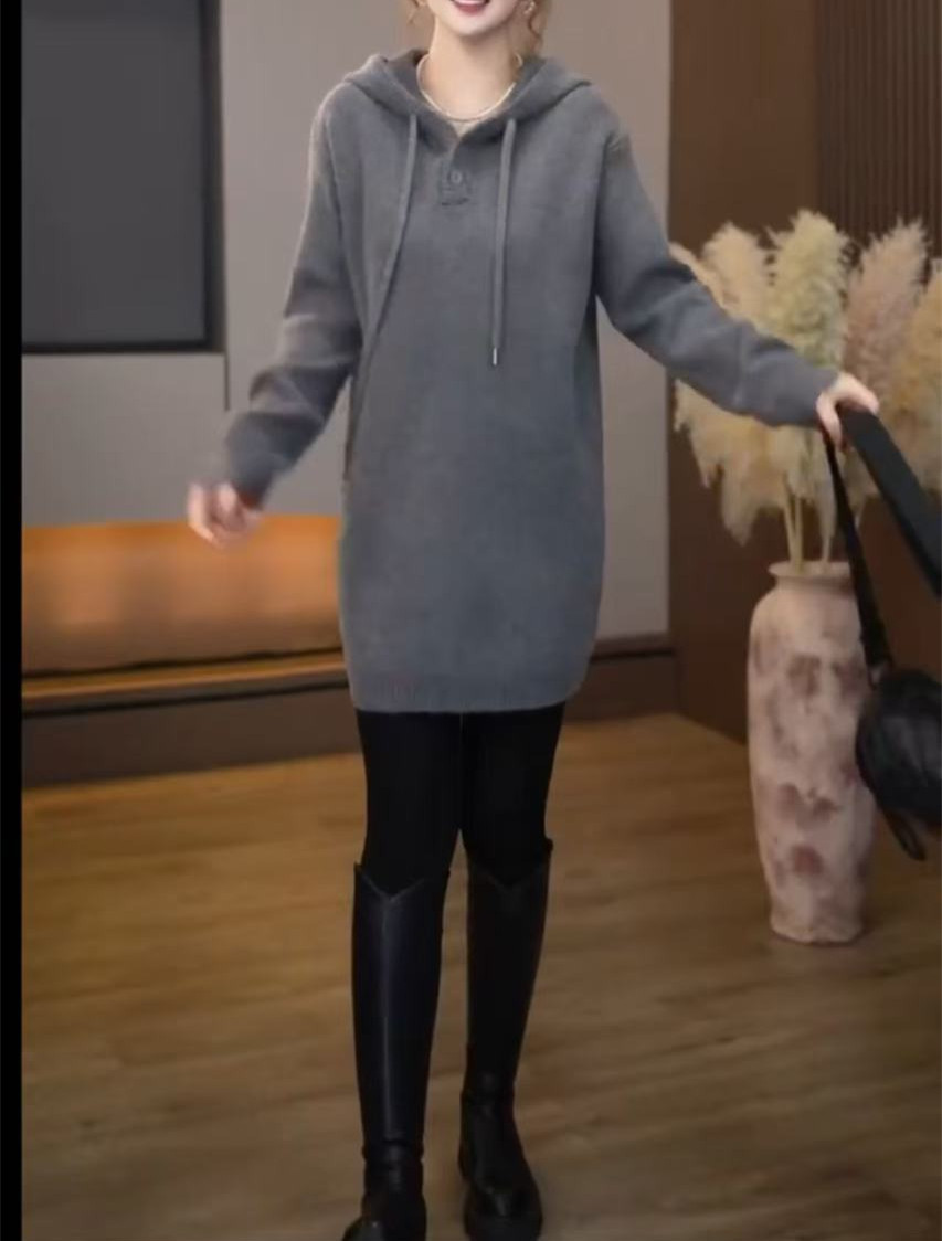 241165 다아이메이위안 2025 신상 심플 중간 길이 루즈핏 후드 패션 원피스 슬림핏스토어 가기