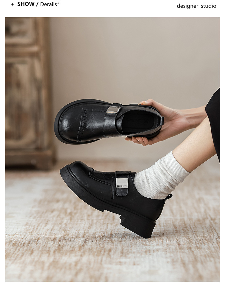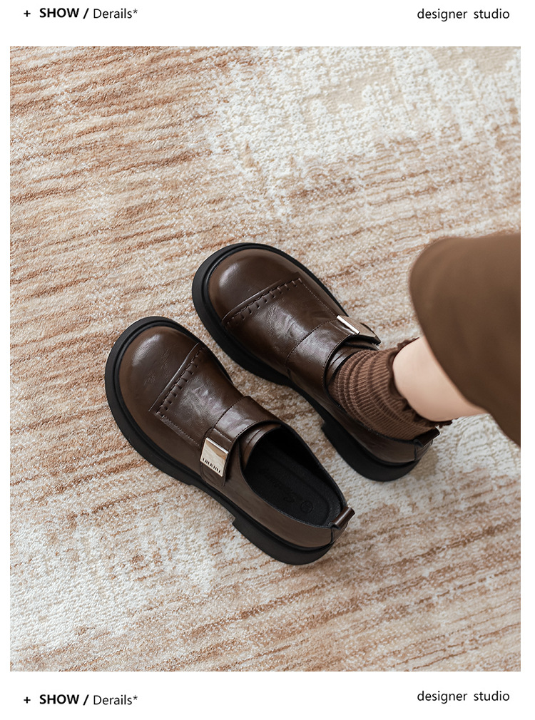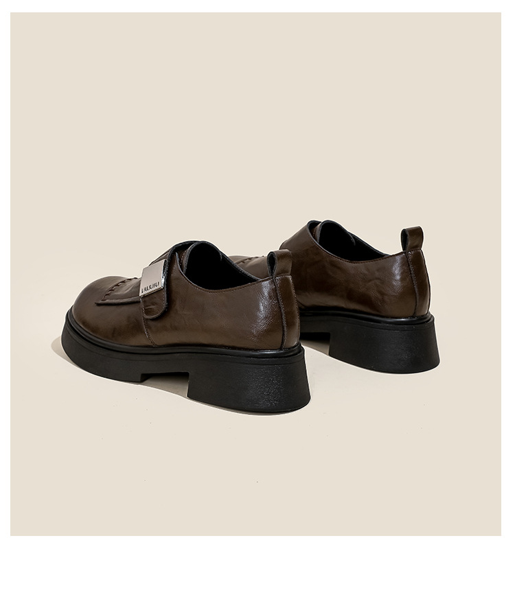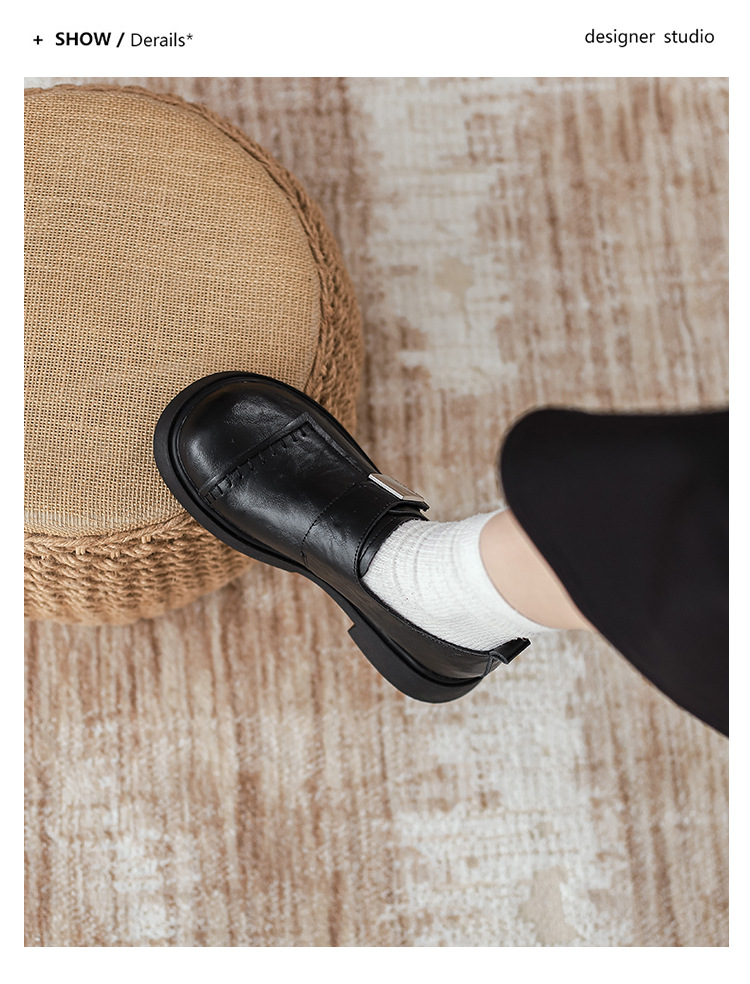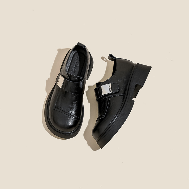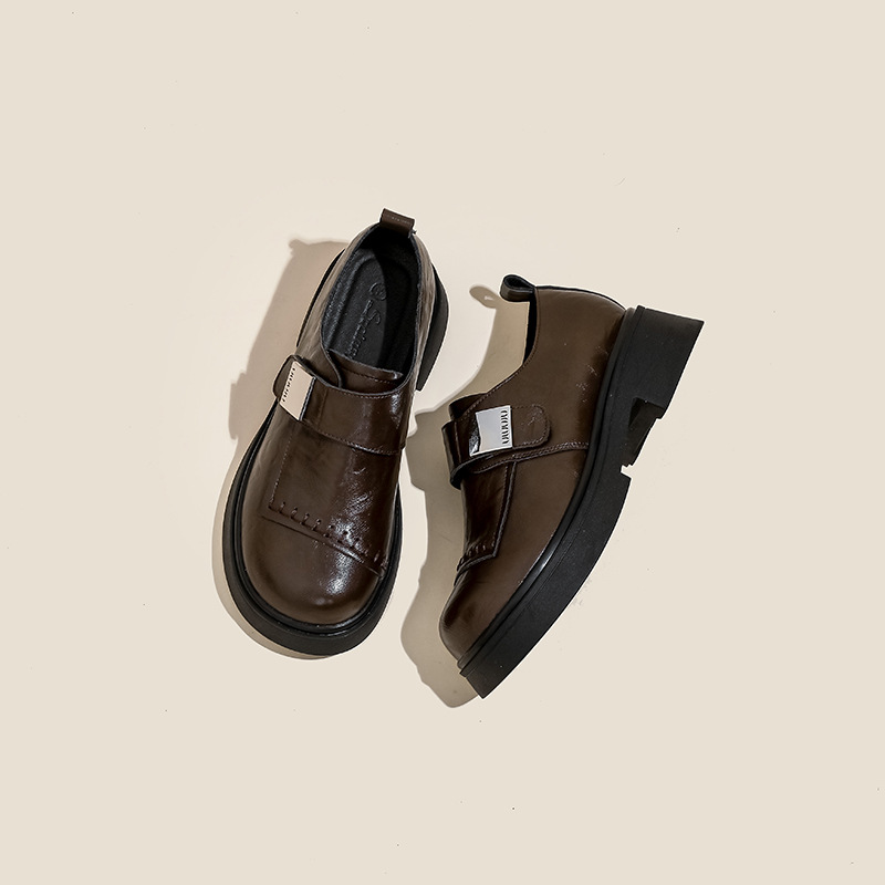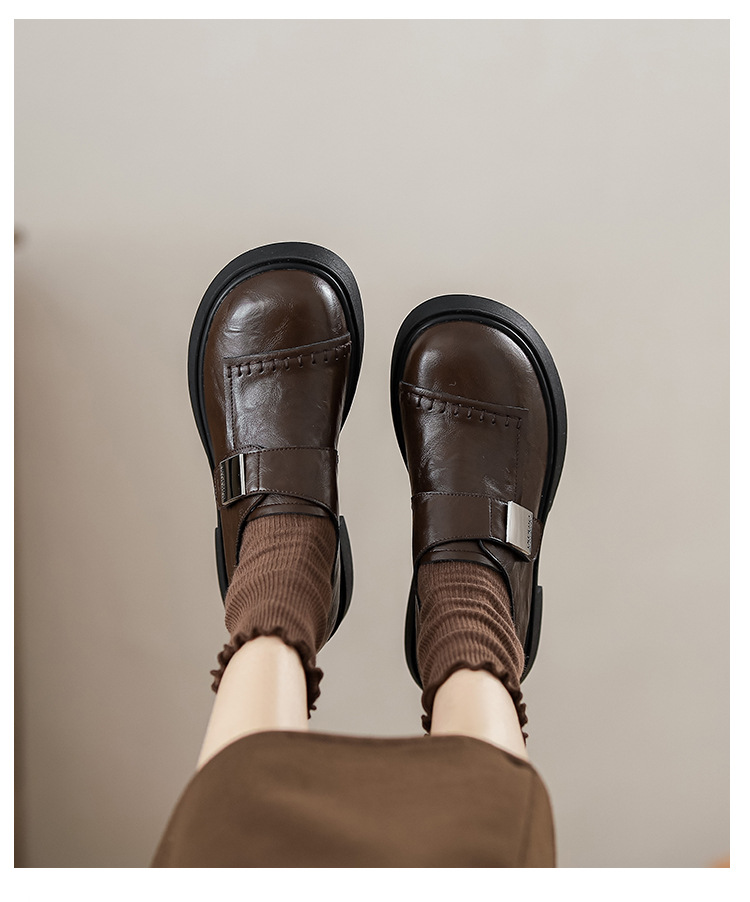 영국 스타일 로퍼 여성의 2024 새로운 두꺼운 가열 정품 가죽 두꺼운 바닥 빈티지 유행 쁘띠 메리 제인 작은 가죽 신발스토어 가기