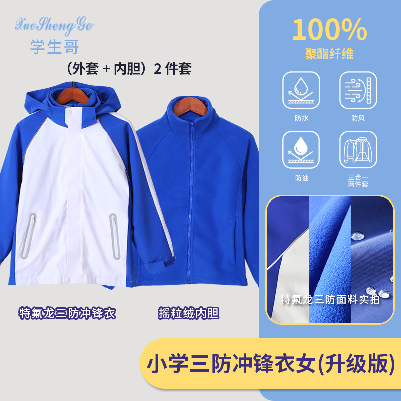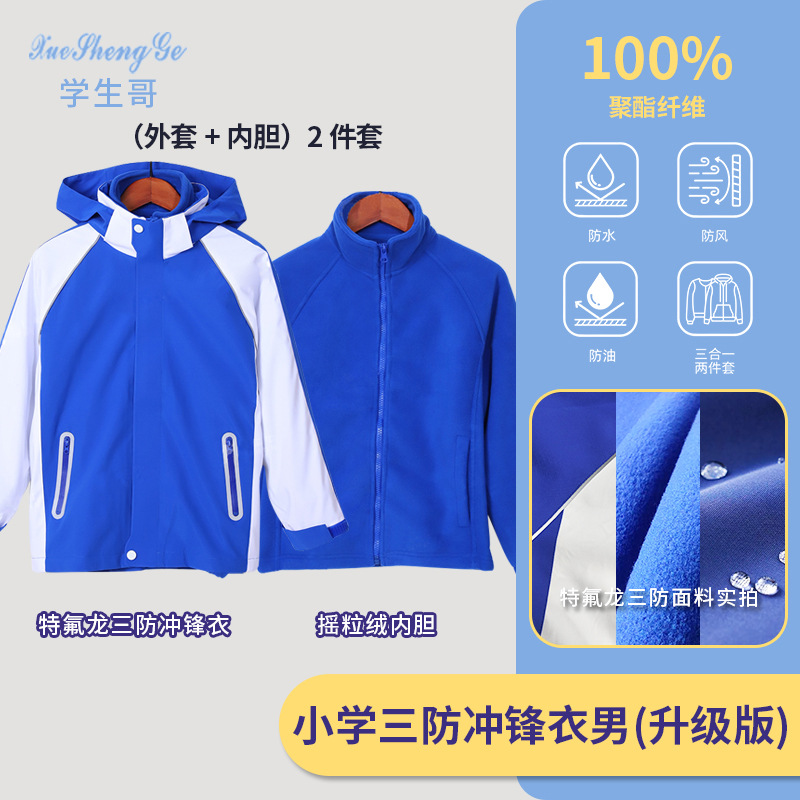 심천 초등학교 유니폼 재킷 투피스 세트 기모 두꺼운 3 대 1 이동식 조끼 방풍 방수 및 내유성