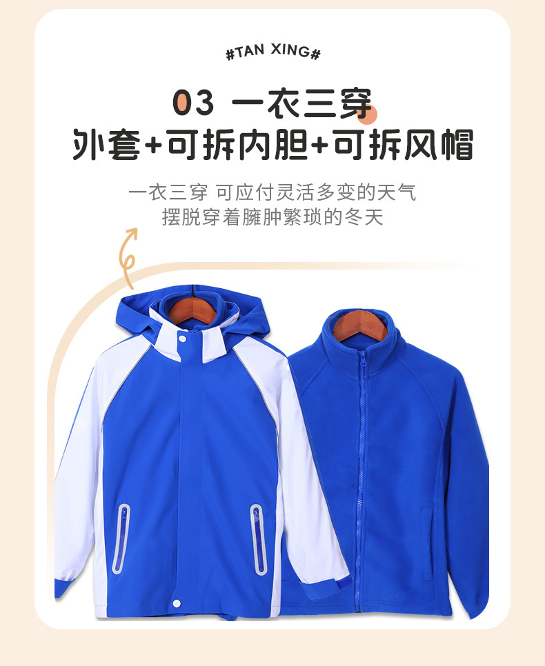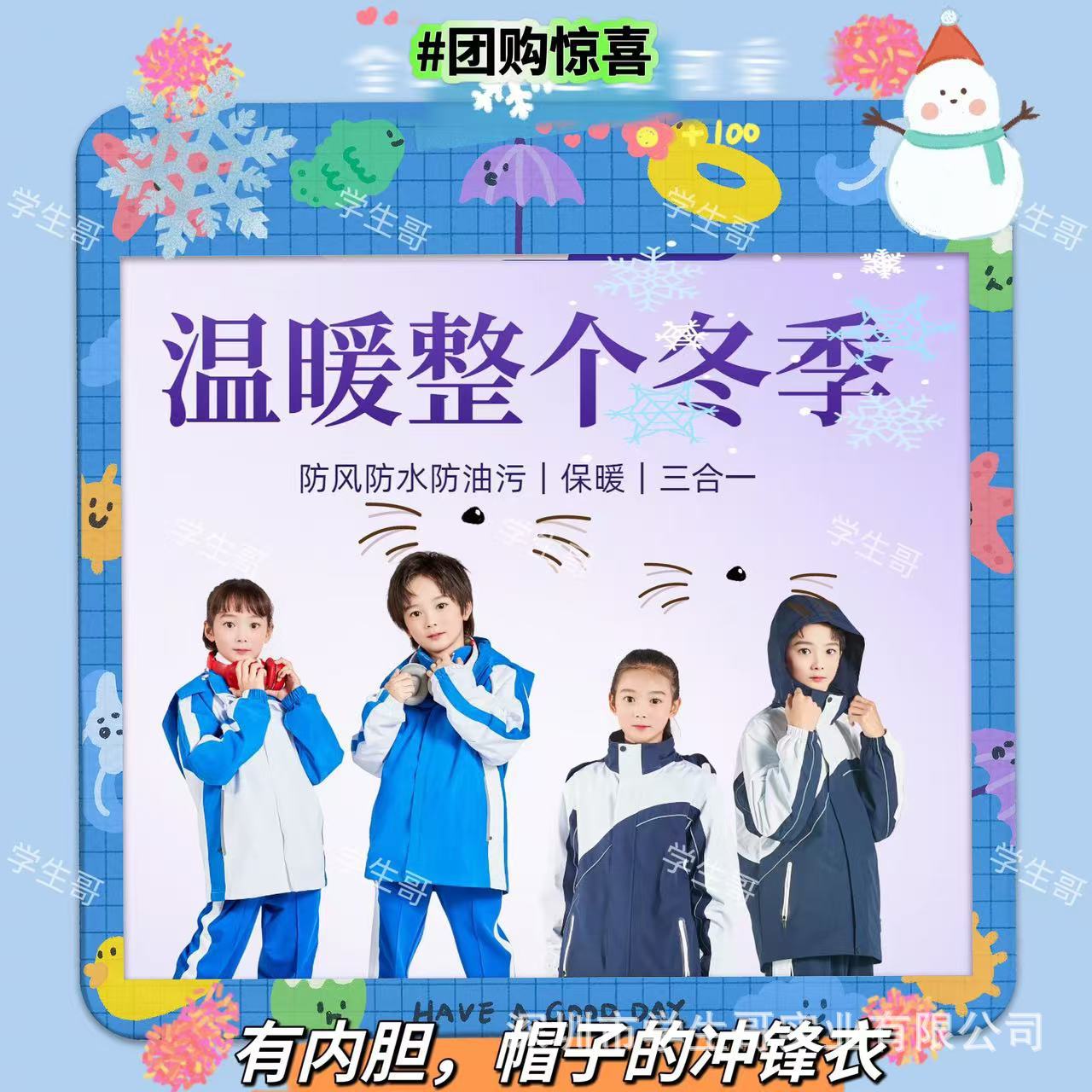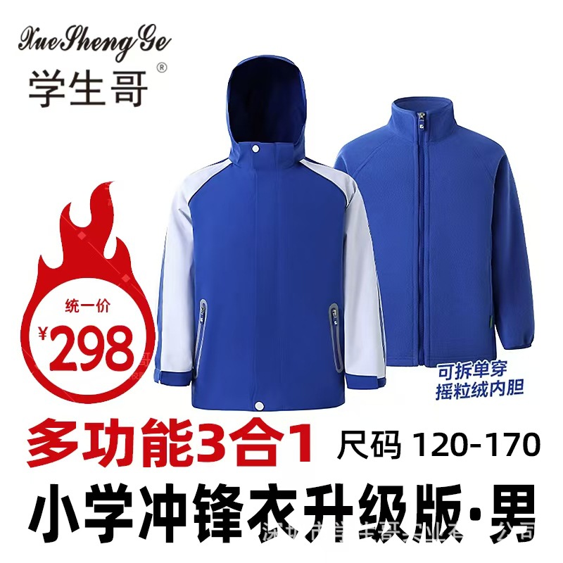 심천 초등학교 유니폼 재킷 투피스 세트 기모 두꺼운 3 대 1 이동식 조끼 방풍 방수 및 내유성스토어 가기