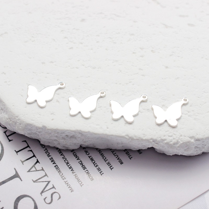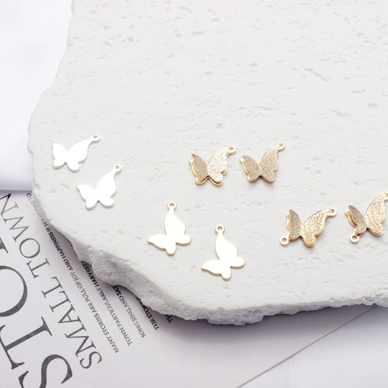 14K包金保色磨砂立体银色蝴蝶结吊坠耳坠吊DIY手链项链饰品配件