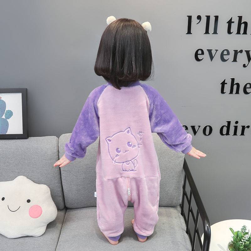 아기의 플란넬 슬리핑 백 소년 소녀를위한 아기 가을과 겨울 산호 양털 원피스 다리 분할 어린이 따뜻한 킥 방지 퀼트스토어 가기