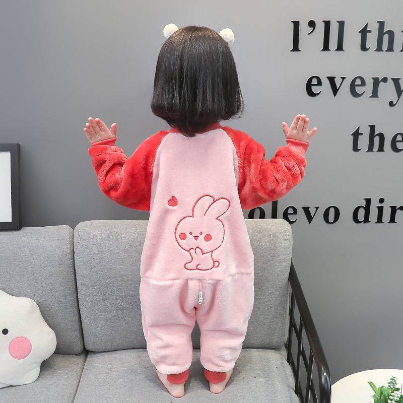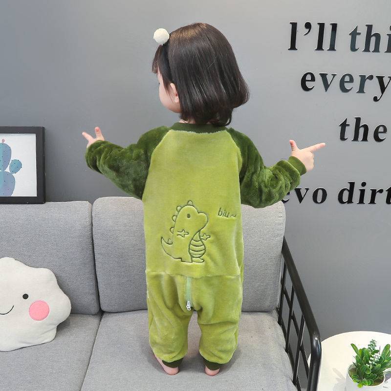 아기의 플란넬 슬리핑 백 소년 소녀를위한 아기 가을과 겨울 산호 양털 원피스 다리 분할 어린이 따뜻한 킥 방지 퀼트
