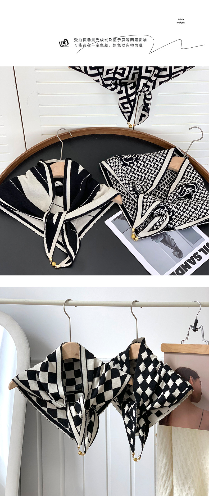 가을과 겨울 새로운 마그네틱 버클 하운스 투스 니트 양면 삼각형 스카프 여성의 작은 금 공 고급 목 스카프 목도리스토어 가기