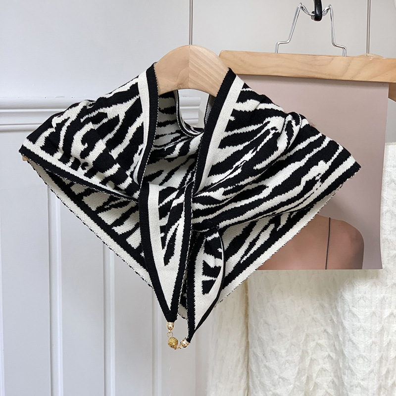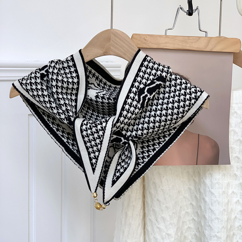 가을과 겨울 새로운 마그네틱 버클 하운스 투스 니트 양면 삼각형 스카프 여성의 작은 금 공 고급 목 스카프 목도리
