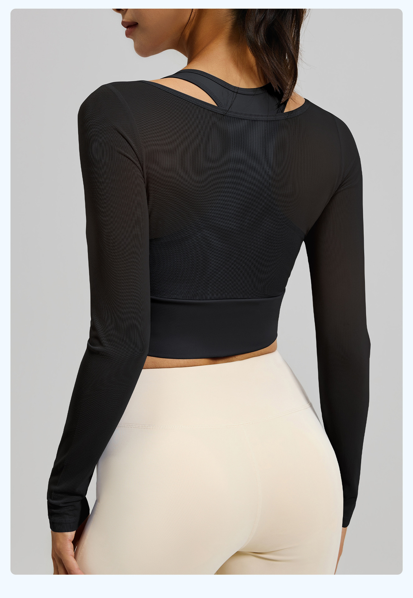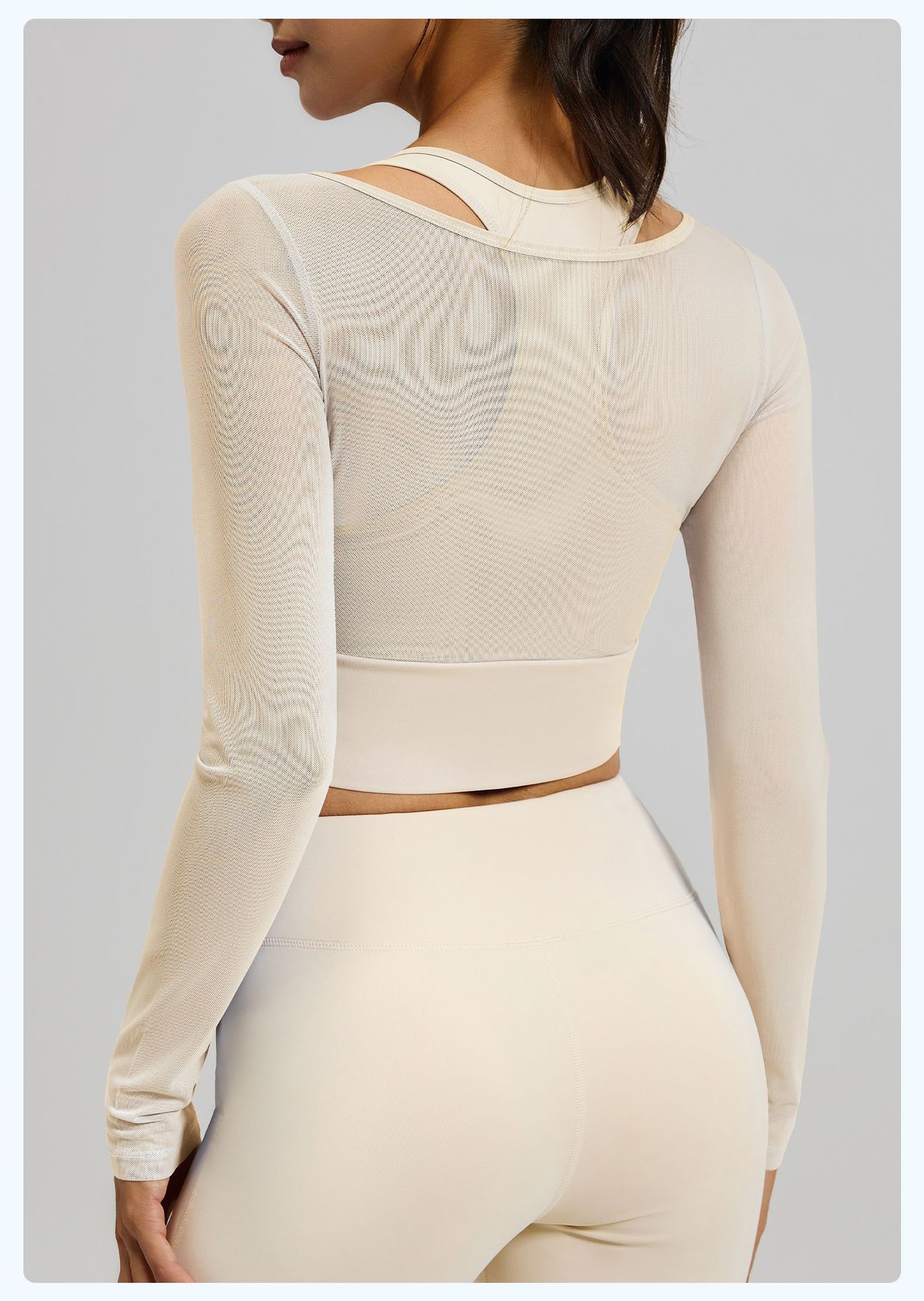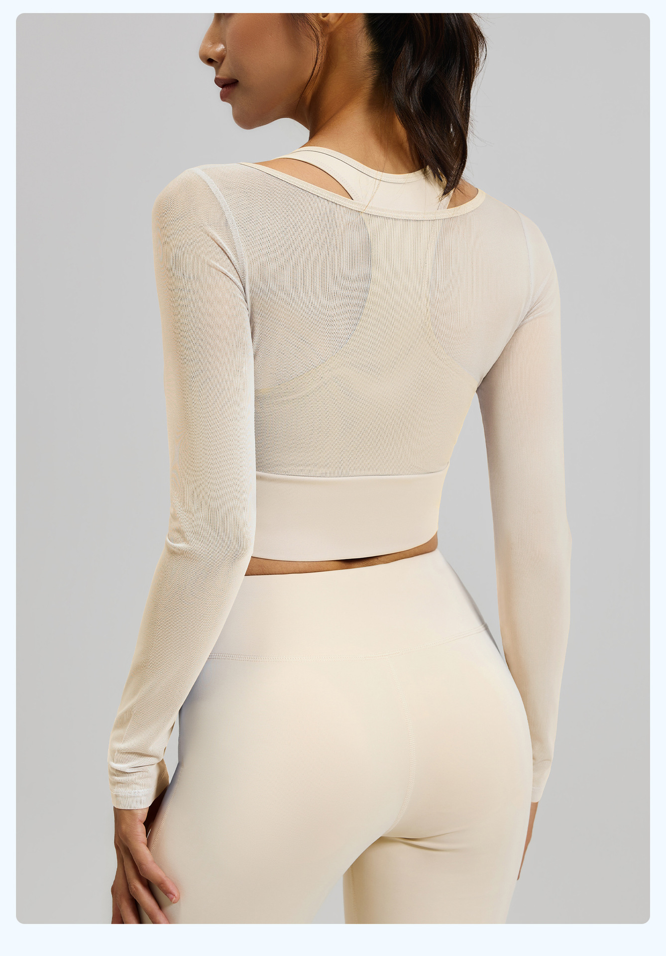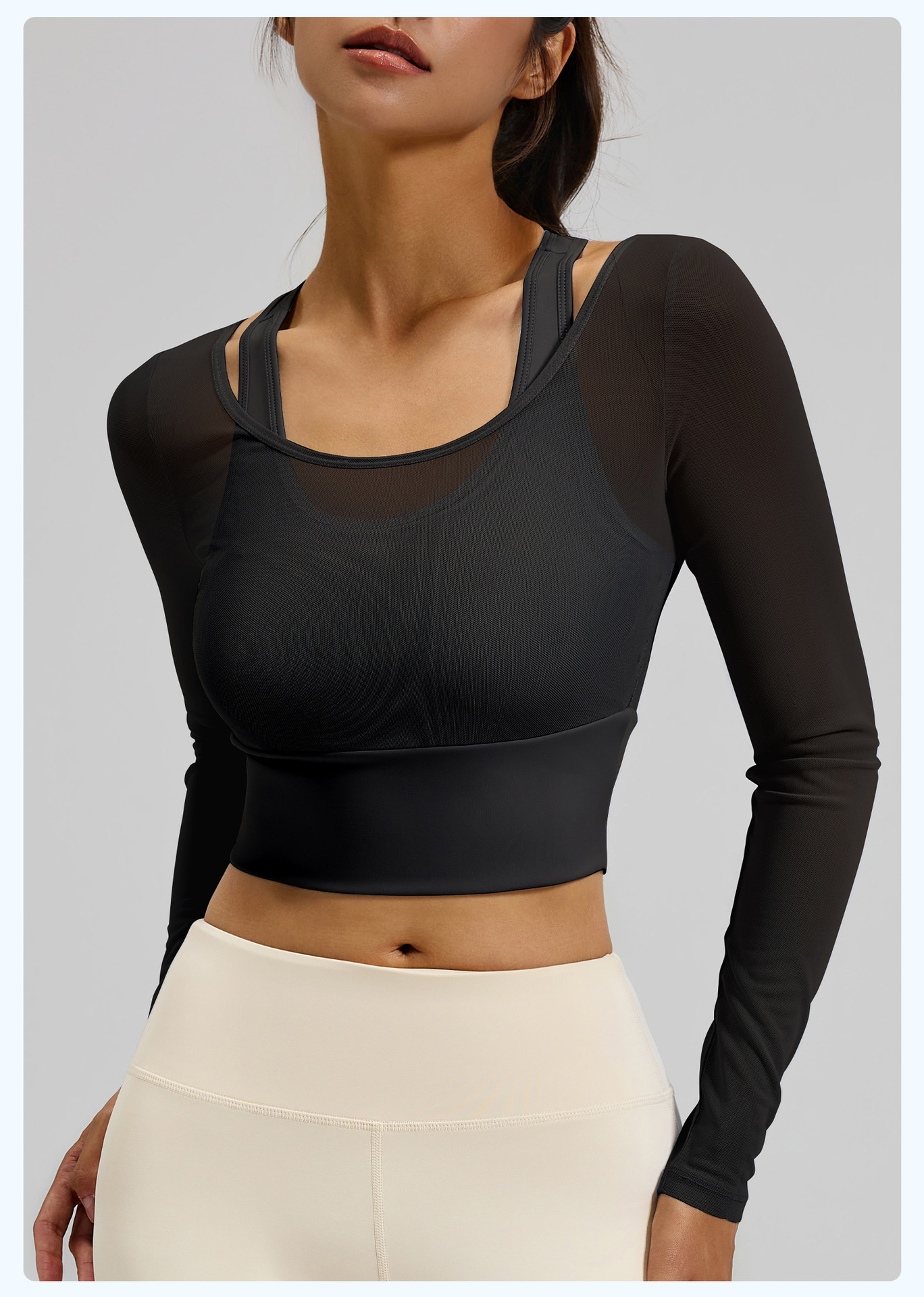 Juyitang 봄과 가을 새로운 메쉬 가짜 투피스 요가 의류 탑 브라 프리 스포츠 피트니스 의류 긴 소매