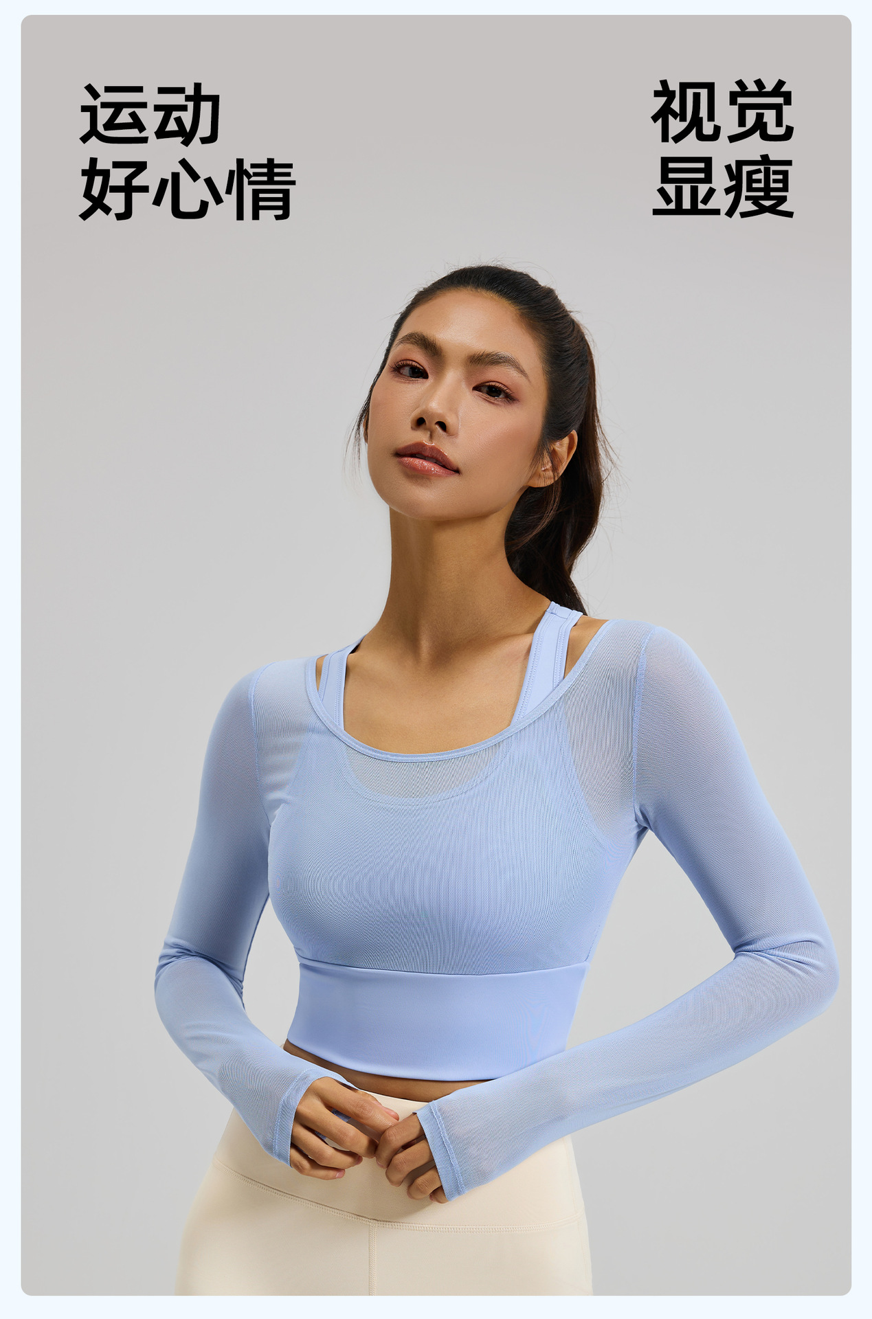 Juyitang 봄과 가을 새로운 메쉬 가짜 투피스 요가 의류 탑 브라 프리 스포츠 피트니스 의류 긴 소매스토어 가기