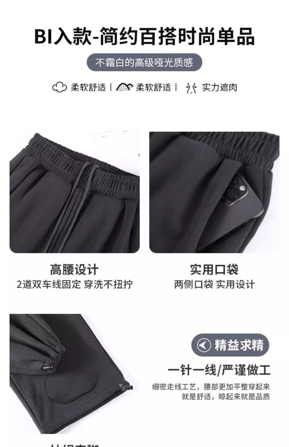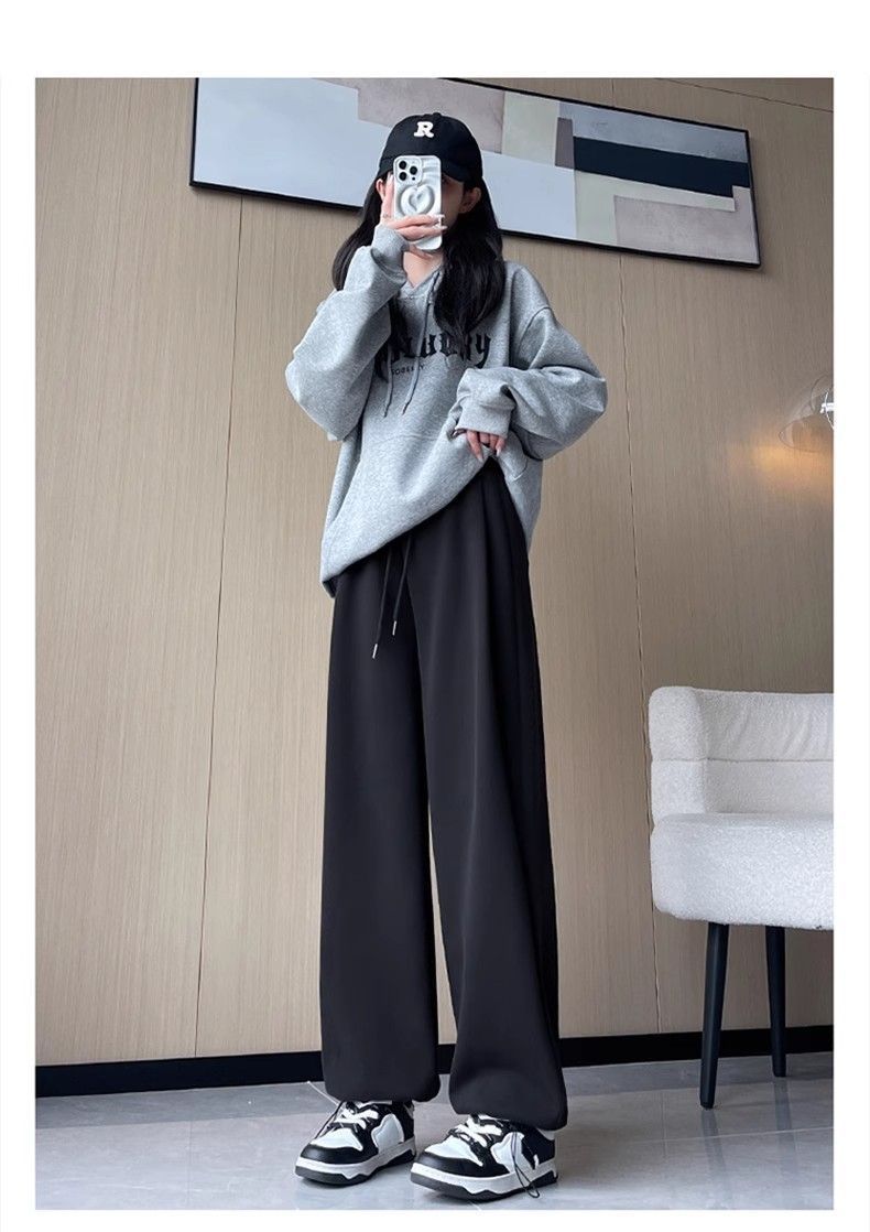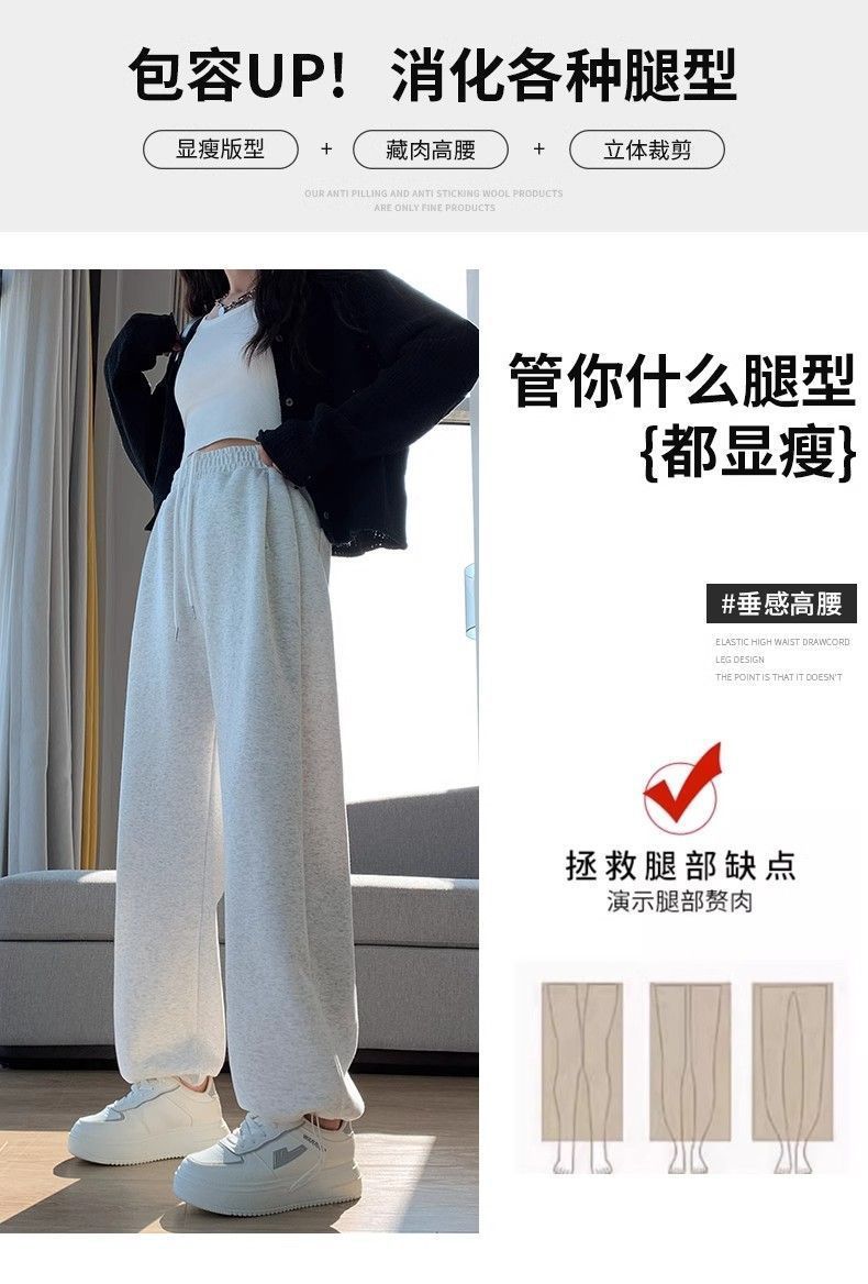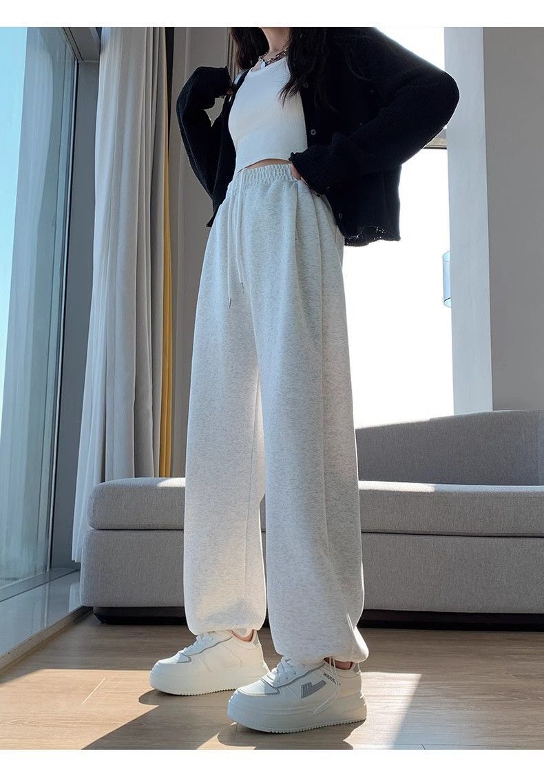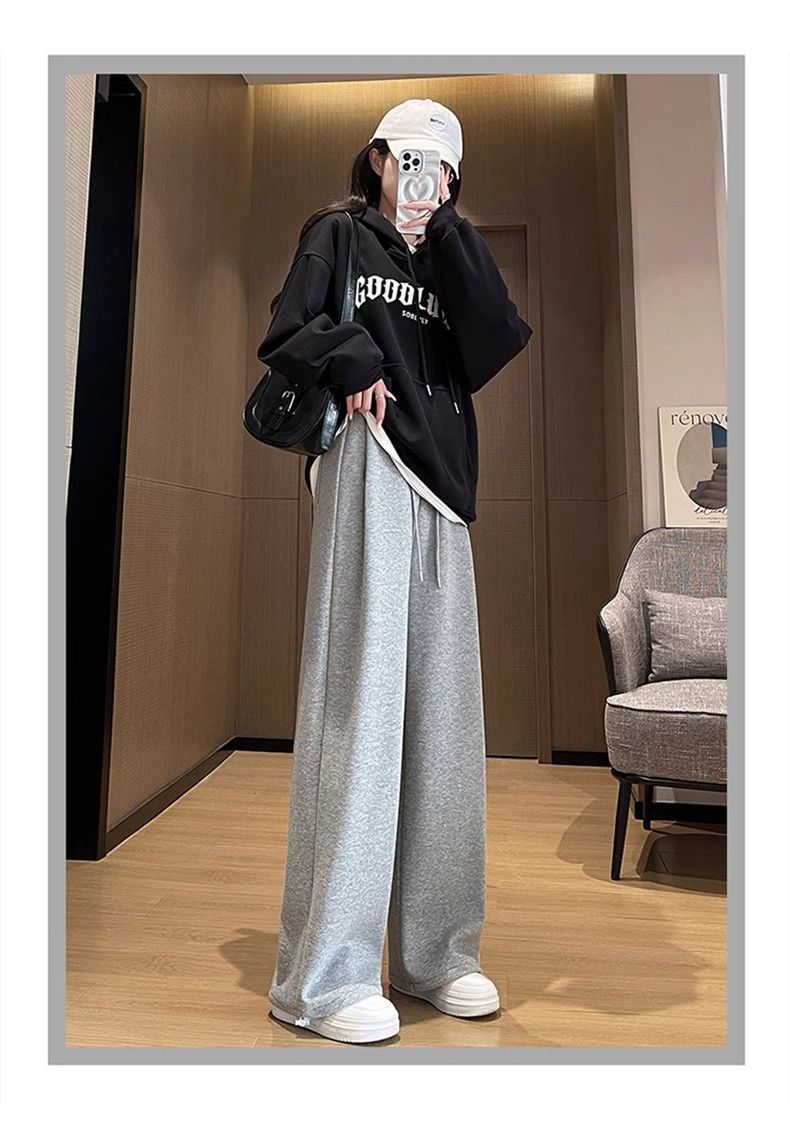 한국 스타일 2024 새로운 캐주얼 그레이 스포츠 바지 미국 스타일 높은 허리 느슨한 짧은 다리 넓은 다리 두 다리 스웨트 팬츠