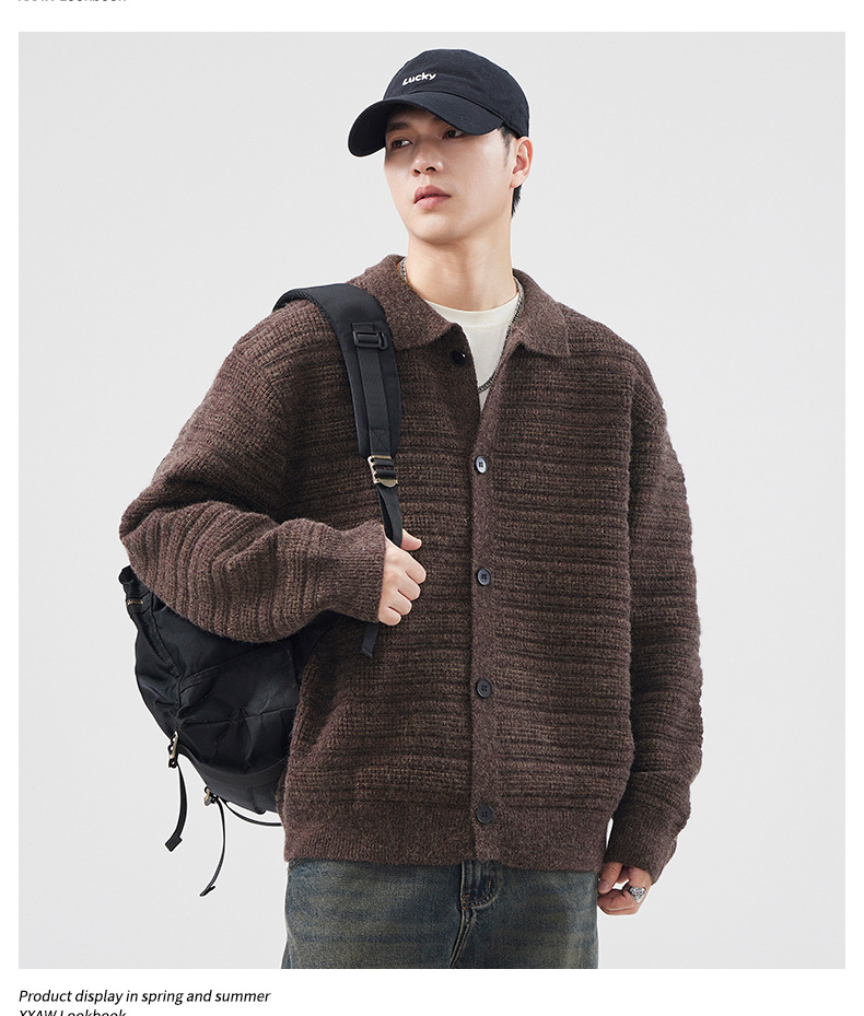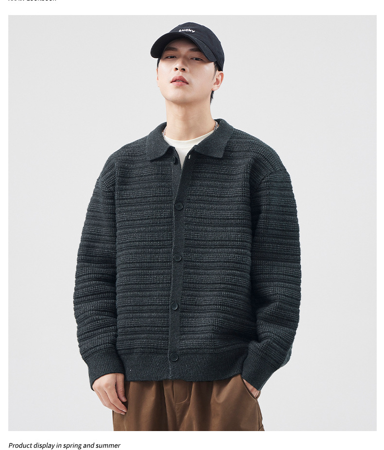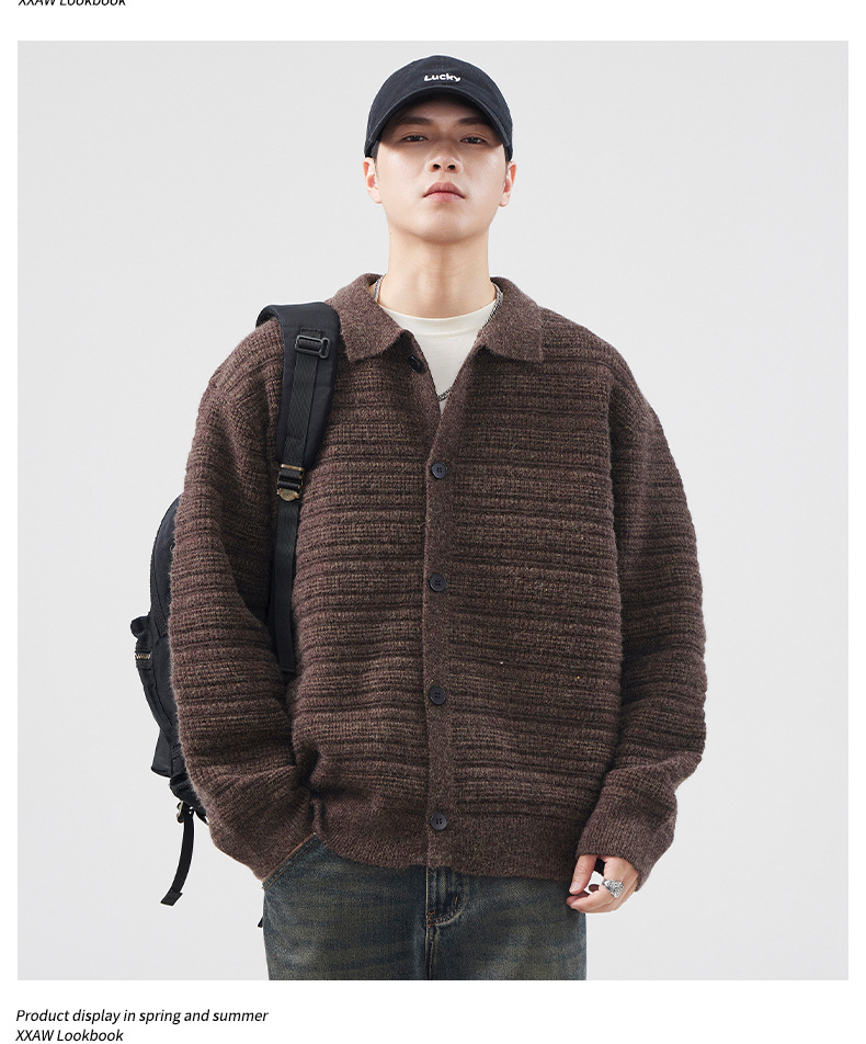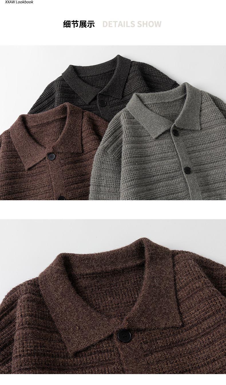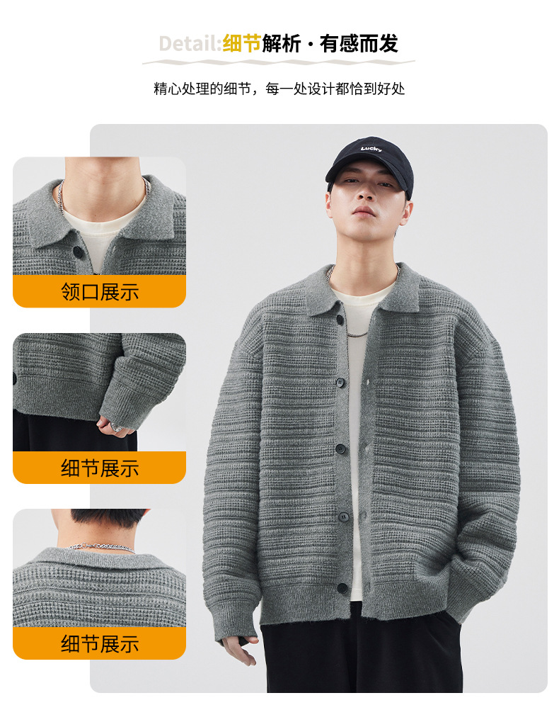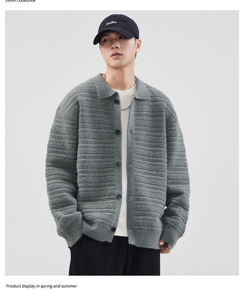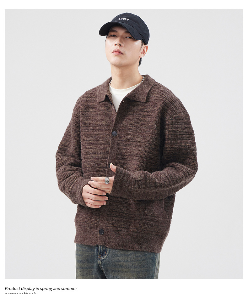 880g 고급 카디건 니트 스웨터 남성 가을과 겨울 새로운 느슨한 캐주얼 조수 옷깃 게으른 윈드 코트