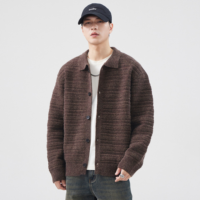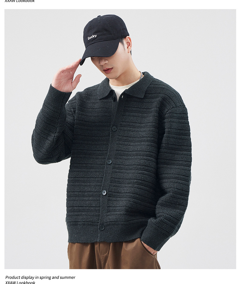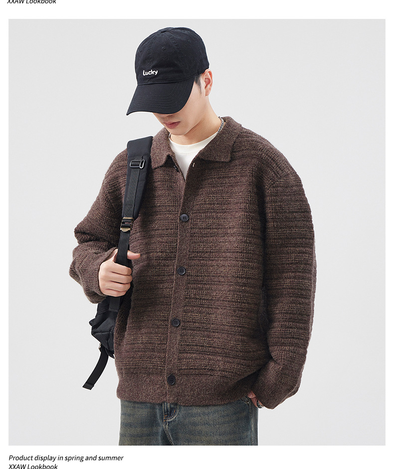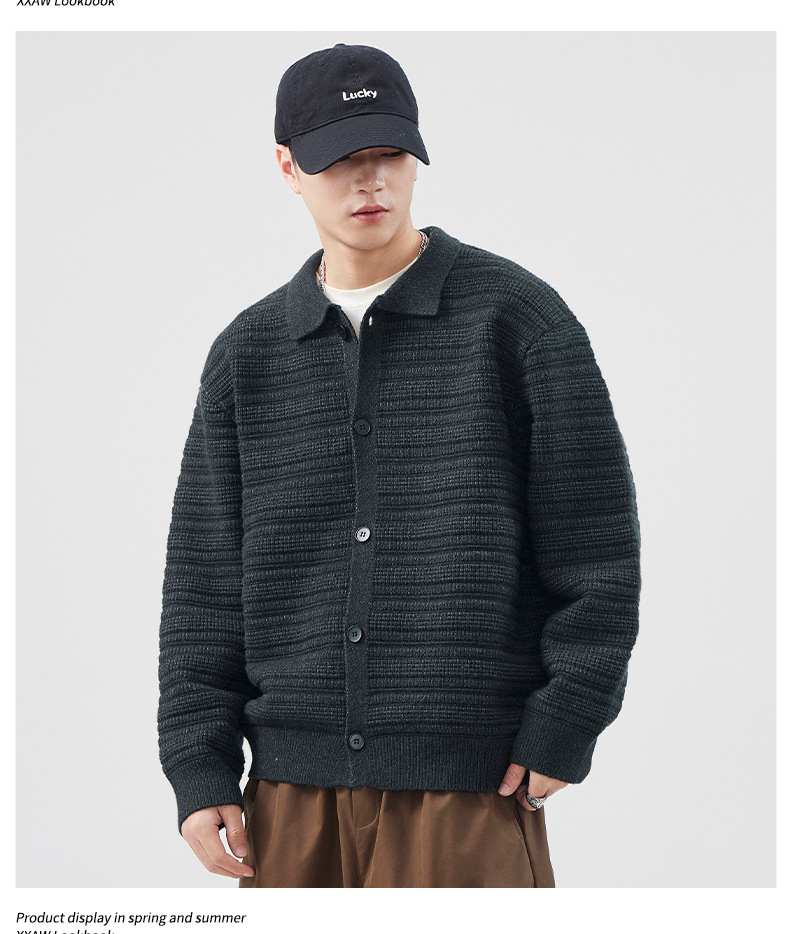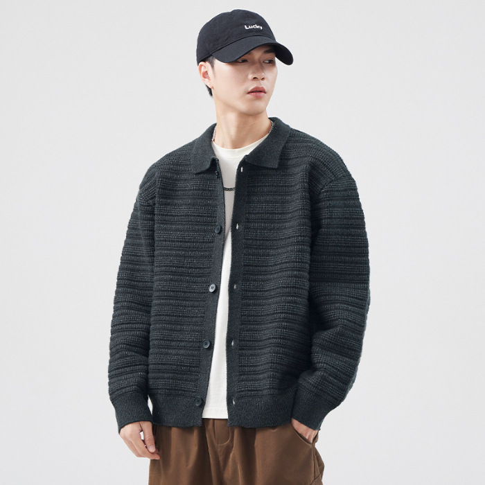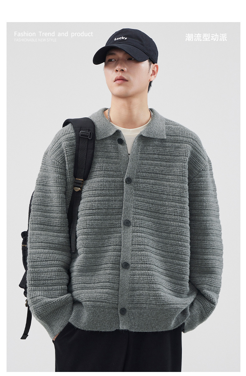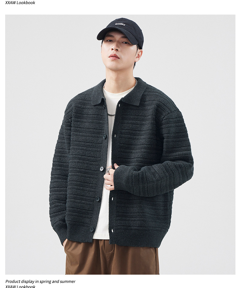 880g 고급 카디건 니트 스웨터 남성 가을과 겨울 새로운 느슨한 캐주얼 조수 옷깃 게으른 윈드 코트
