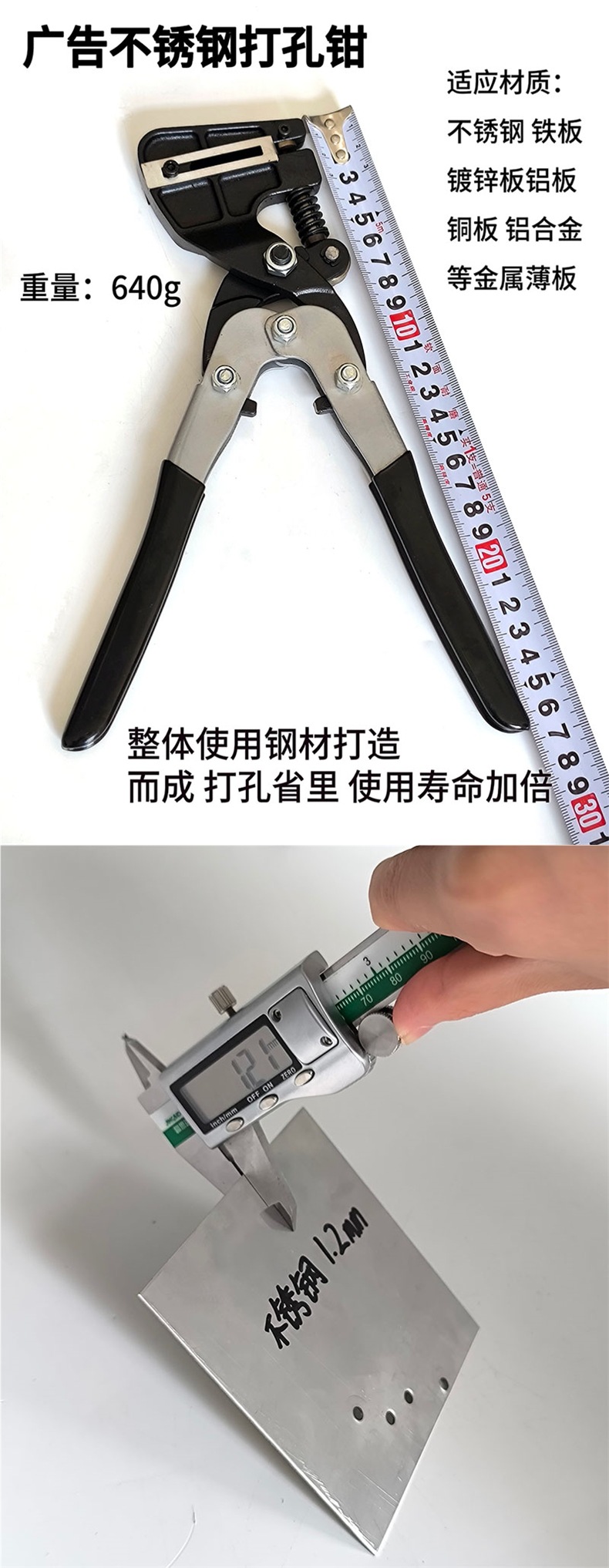 스테인레스 스틸 플레이트 빛나는 캐릭터 빌보드 펀칭 펜치 중금속 알루미늄 가장자리 산업 등급 주석 캐릭터 라운드 홀 오프너스토어 가기