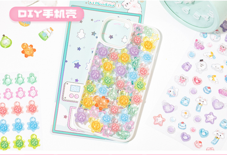 언어 유휴 달콤한 사탕 파티 3D 구호 사랑스러운 만화 귀여운 동물 휴대 전화 쉘 구 카드 퍼즐 페이스트 소재