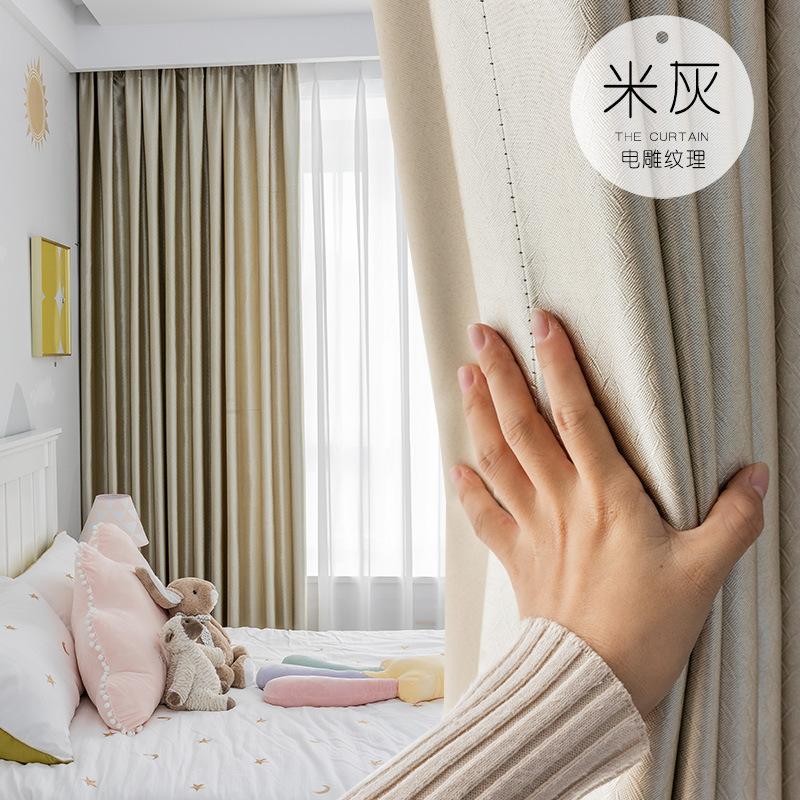 커튼 완제품 2025 새로운 스타일 침실 거실 간단한 현대 두꺼운 완전 암막 천 임대 펀치 없음스토어 가기