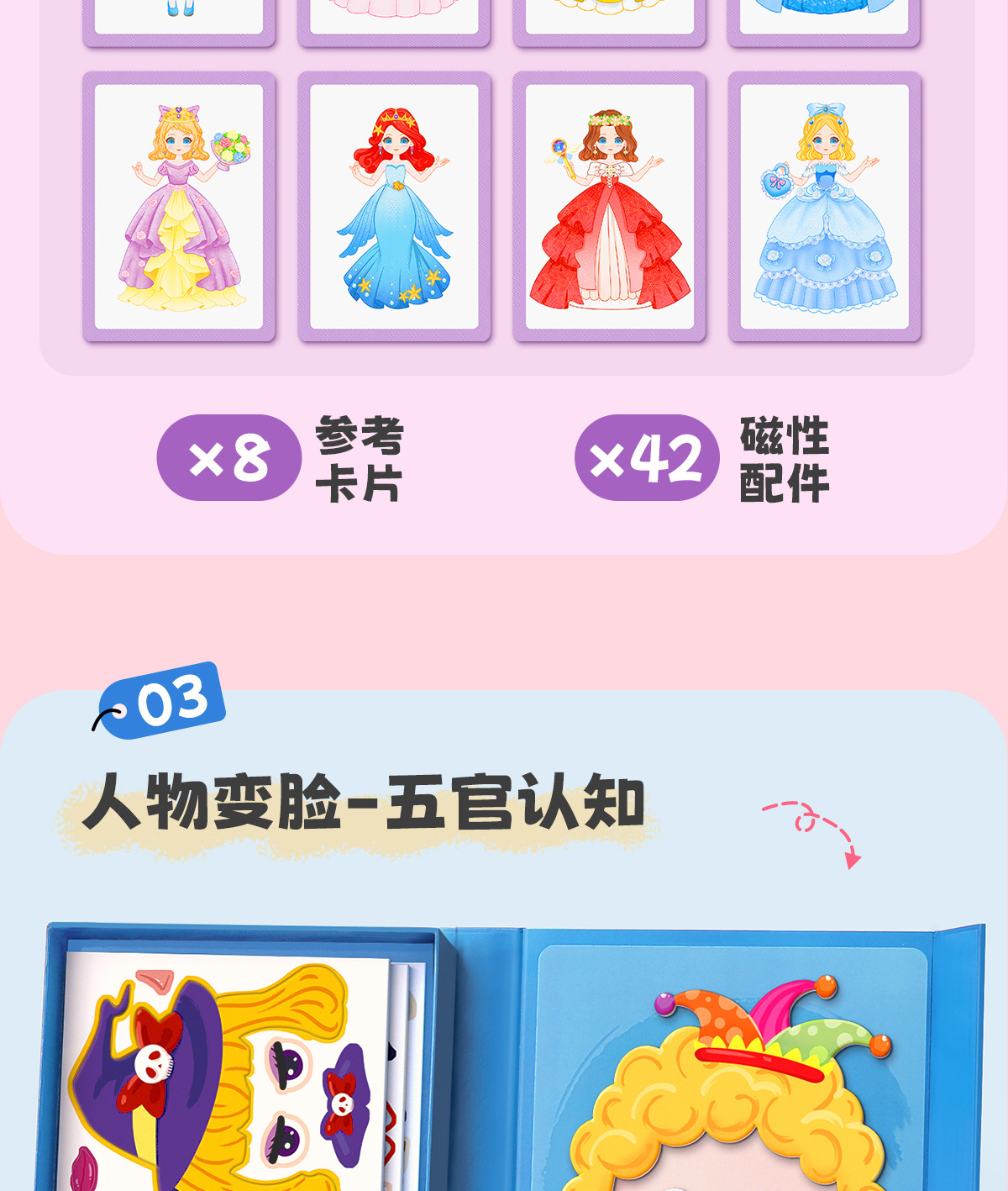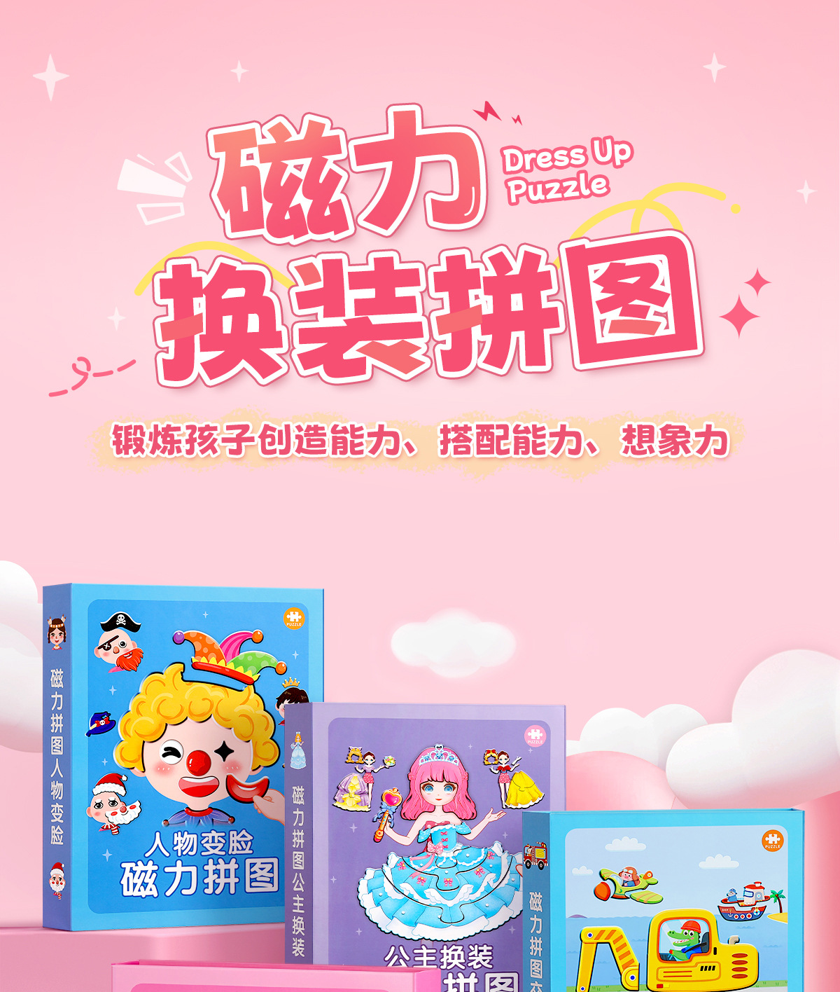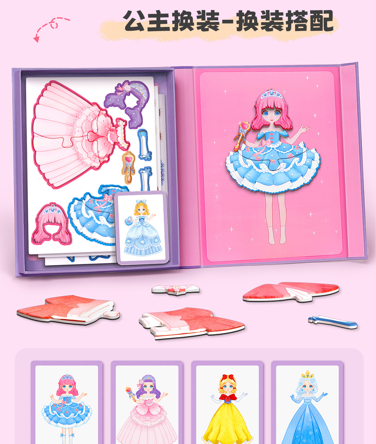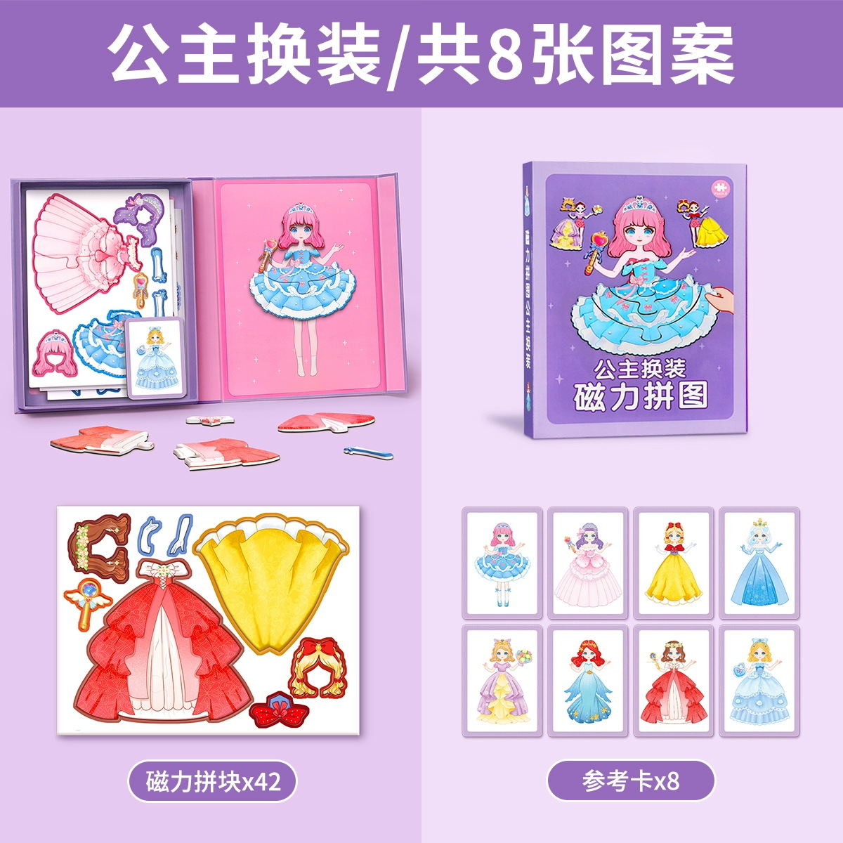어린이 자기 퍼즐 공주 원피스 업 스티커 2 ~ 3 세 6 퍼즐 아기 유아 자기 흡수 자기 장난감 소녀