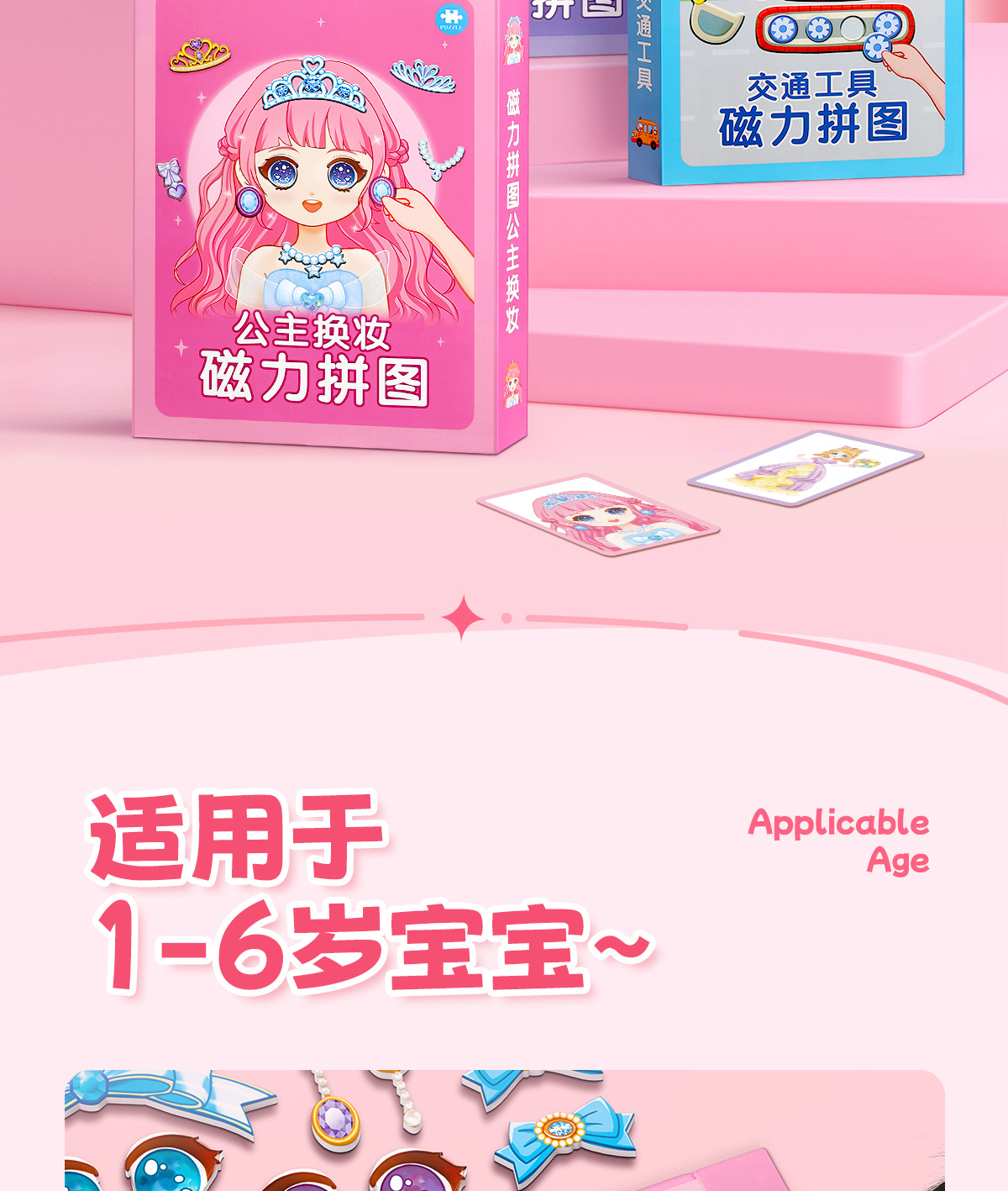 어린이 자기 퍼즐 공주 원피스 업 스티커 2 ~ 3 세 6 퍼즐 아기 유아 자기 흡수 자기 장난감 소녀스토어 가기