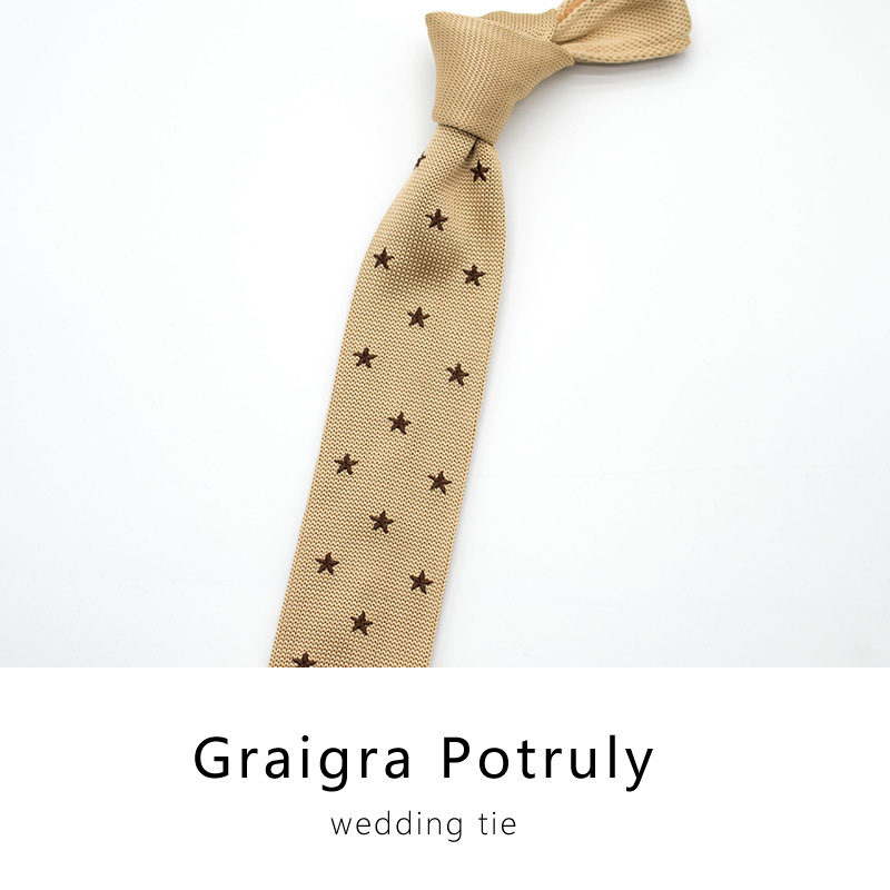 니트 넥타이 5cm 좁은 에디션 다크 브라운 빈티지 다크 브라운 캐주얼 영국 자수 다섯개 별 한국 스타일 플랫 트렌디