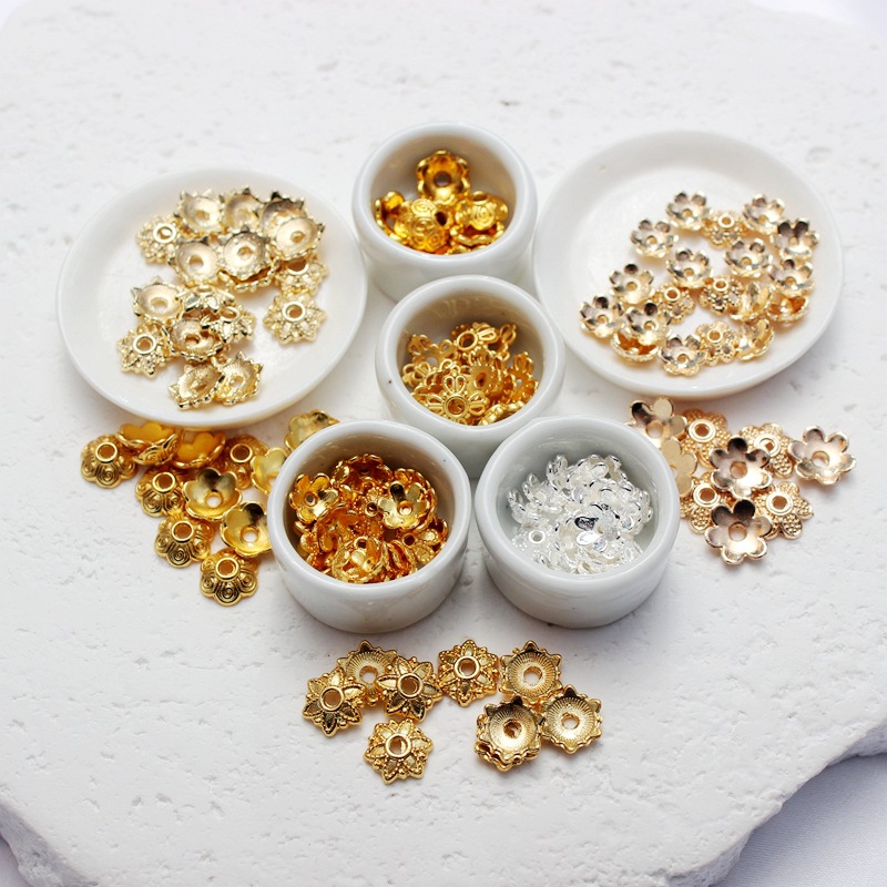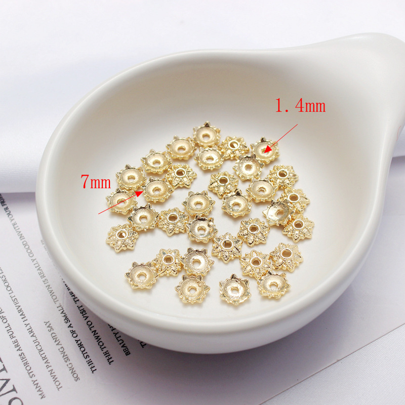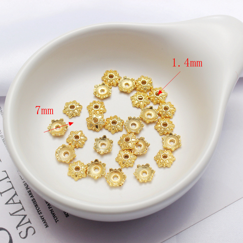14K包金保色哑金银色麻点隔珠珠托DIY手链项链饰品配件加厚花托