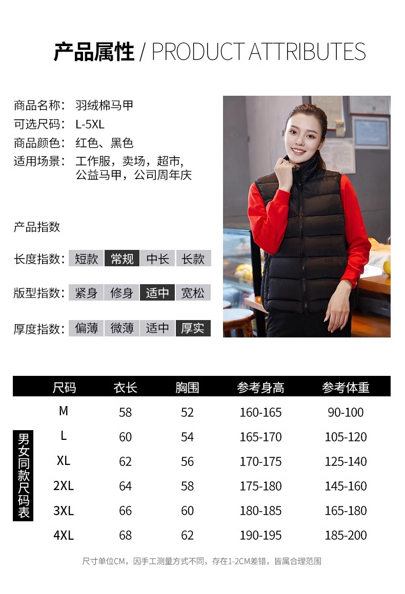 • 단일 조각 단색 모델 - 고급 다운 조끼 - 신축성 있는 모델 - 다양한 색상 사용 가능