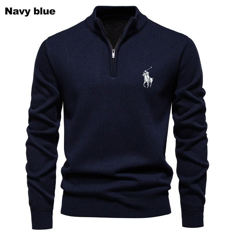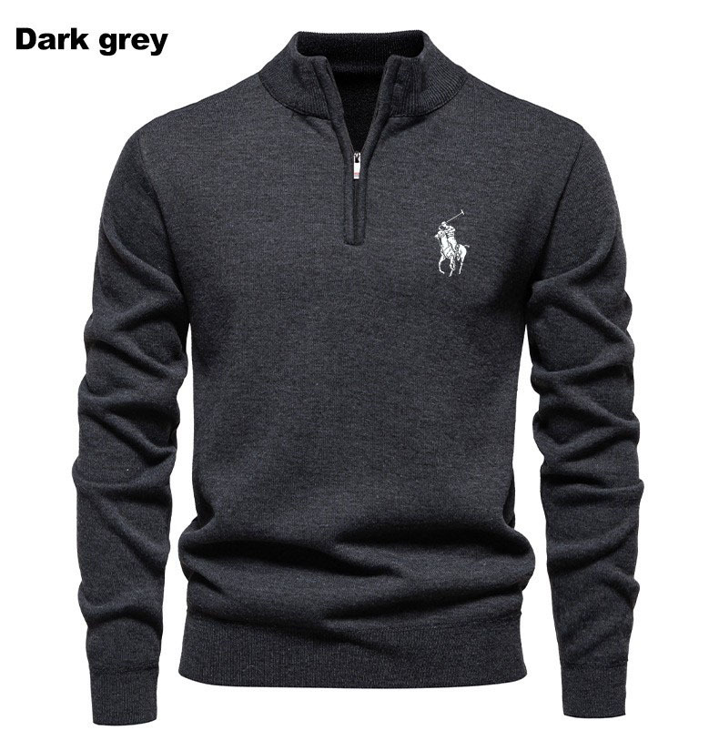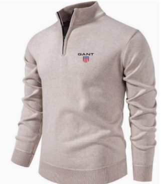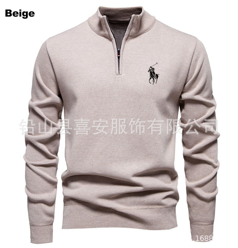 국경 간 남자 2024 남자 뉴 솔리드 컬러 두꺼운 스웨터 남자 수직 칼라 하프 지퍼 슬림 핏 스웨터 남자 탑