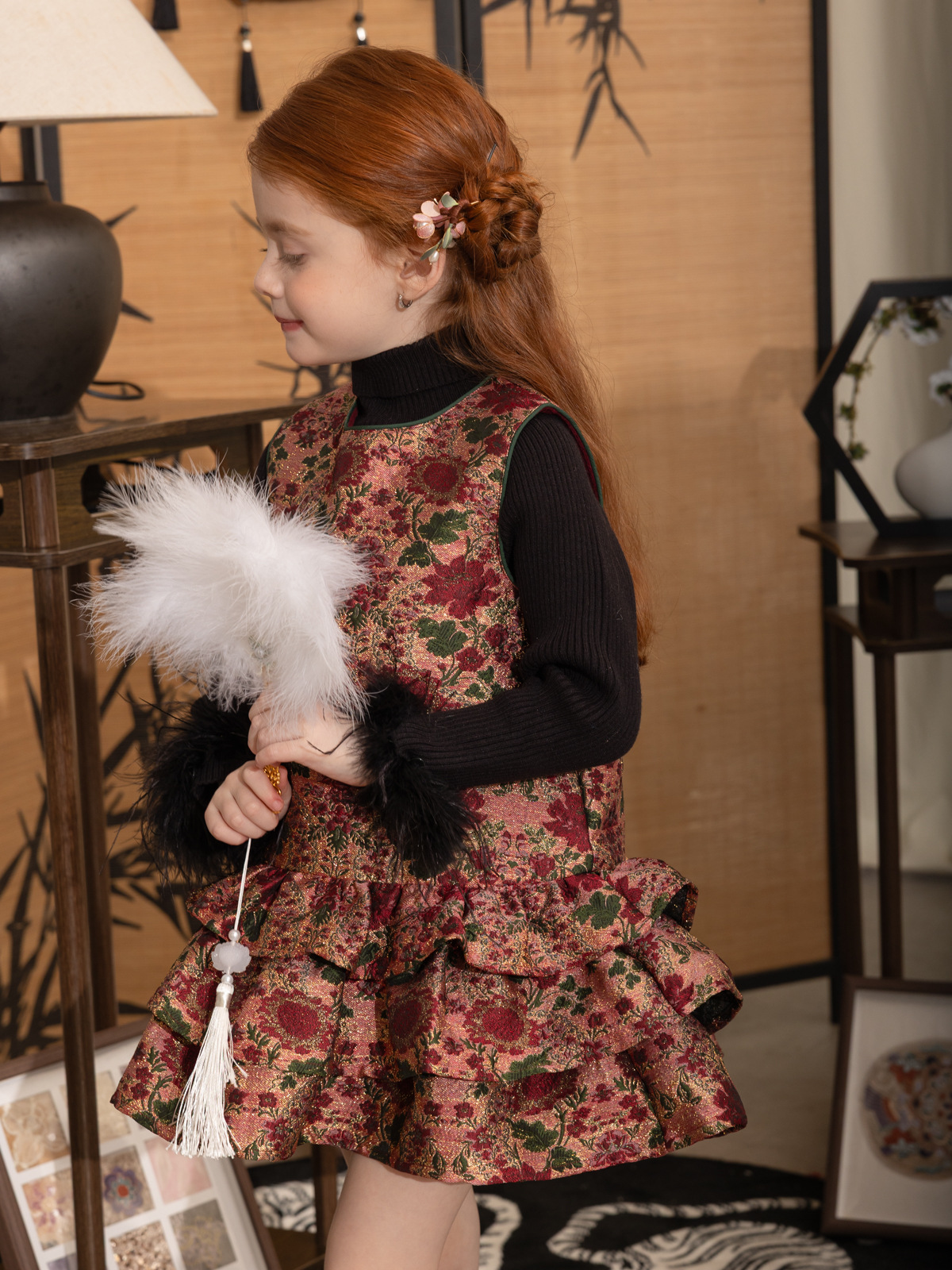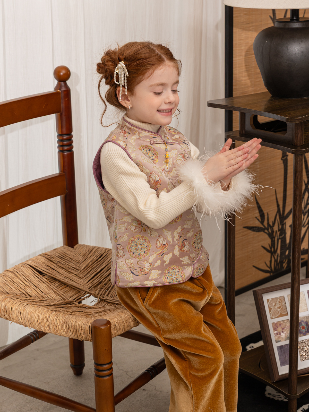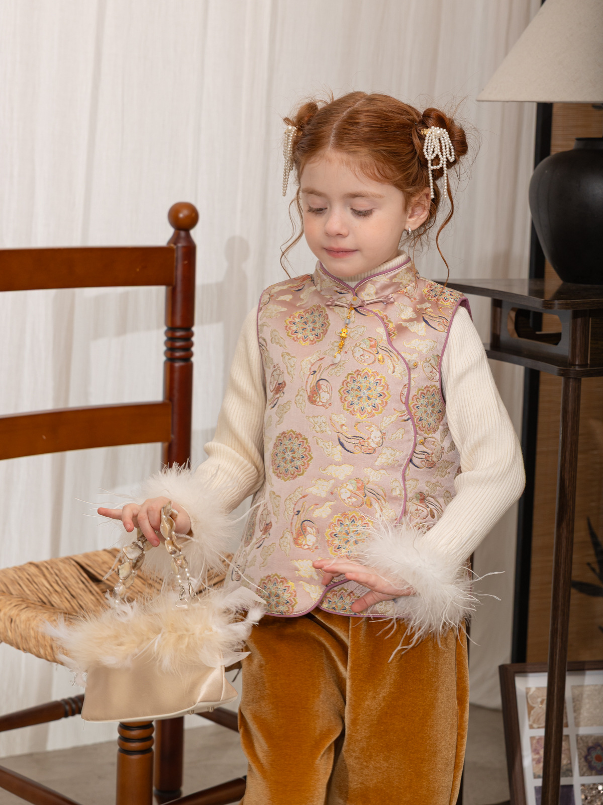 한국 아동복 어린이 고급 타조 울 바닥 스웨터 소녀 가을/겨울 2024 새로운 단색 스웨터스토어 가기