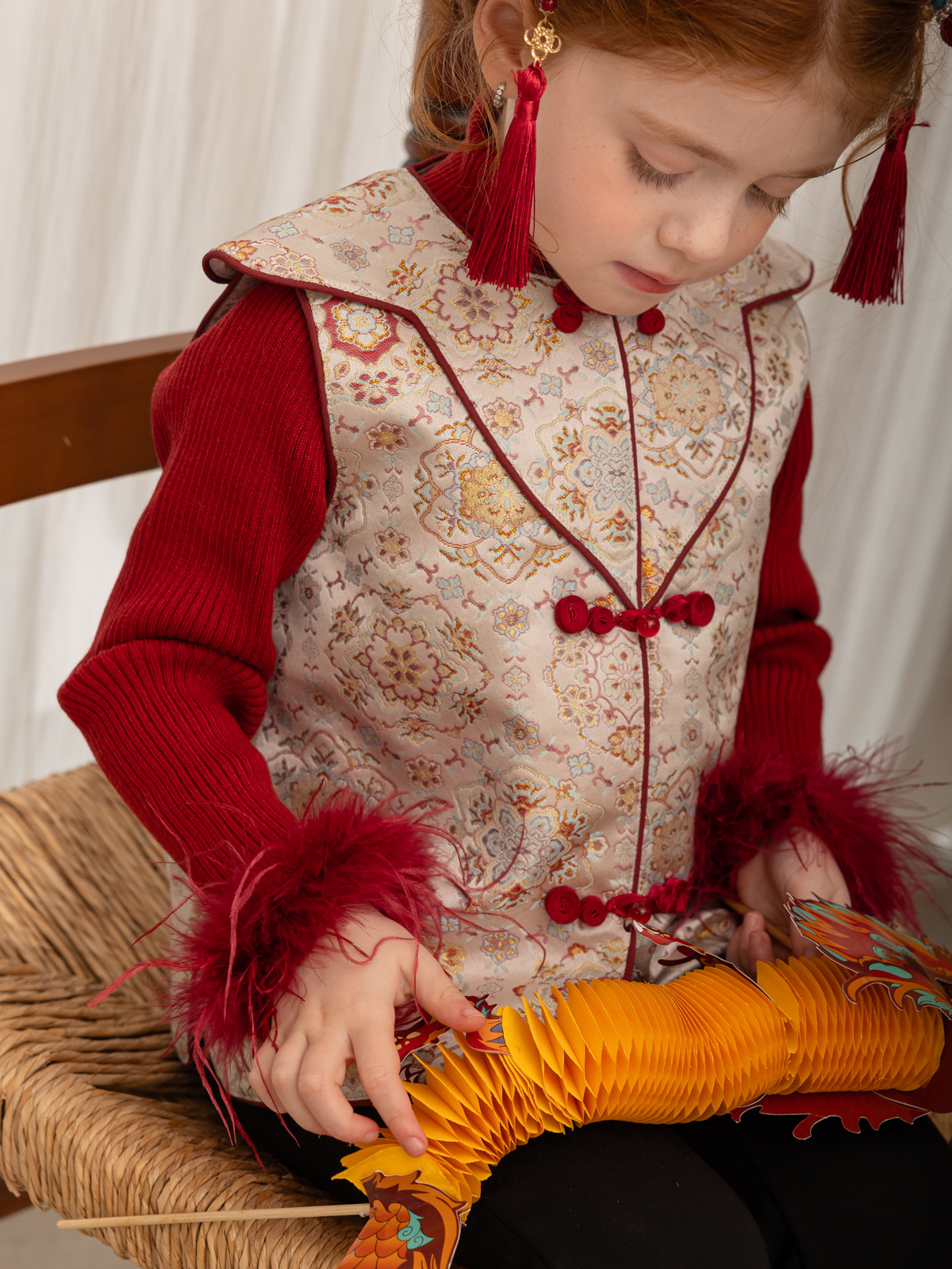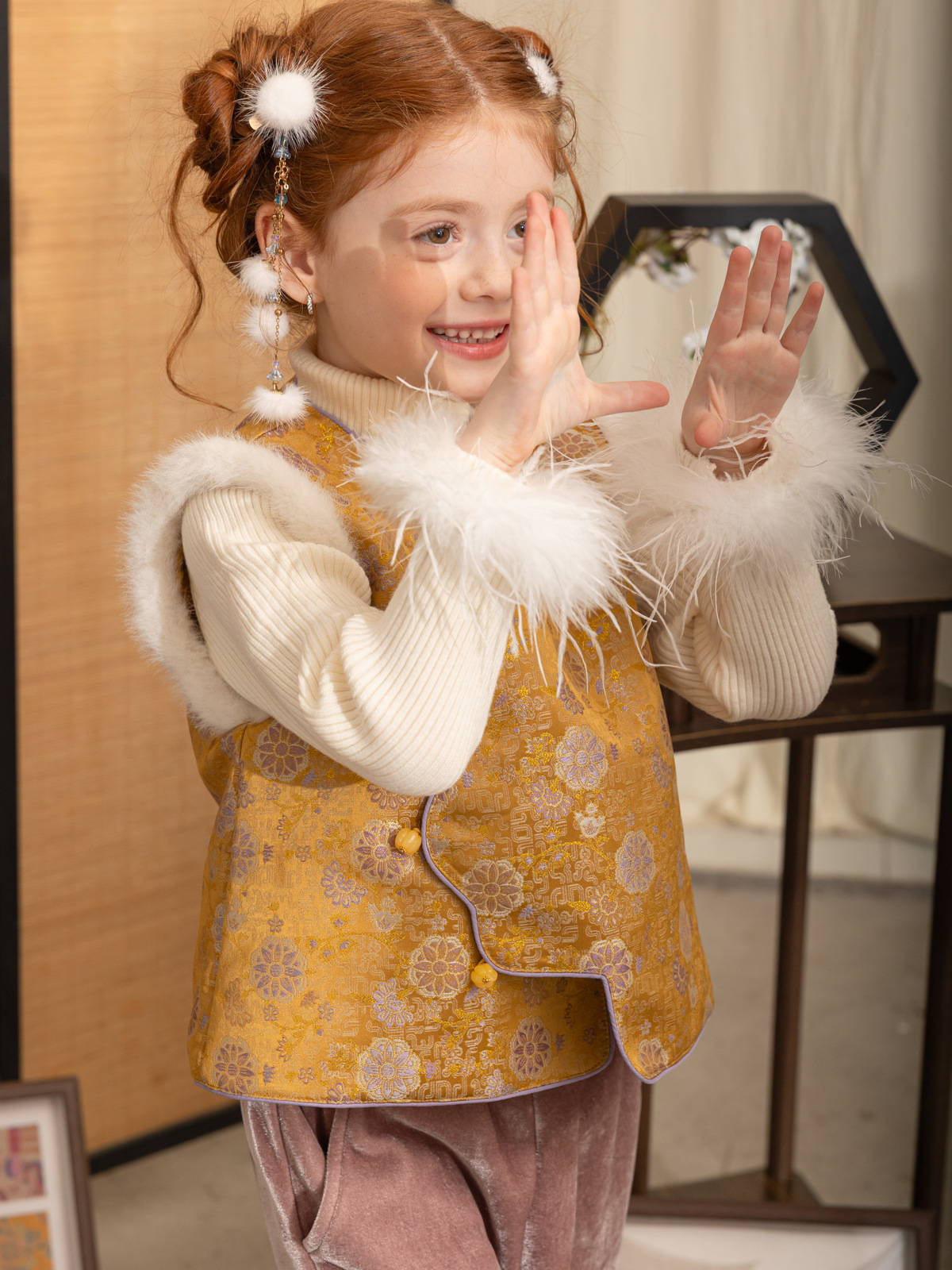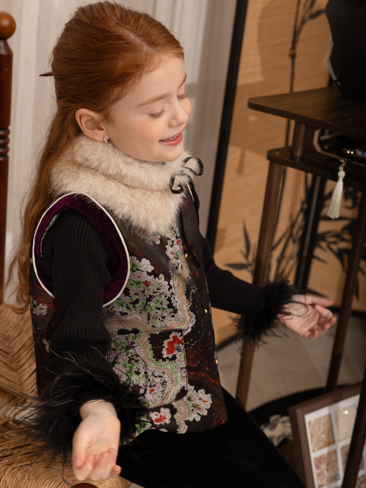 한국 아동복 어린이 고급 타조 울 바닥 스웨터 소녀 가을/겨울 2024 새로운 단색 스웨터스토어 가기
