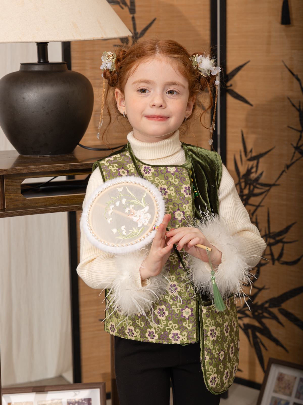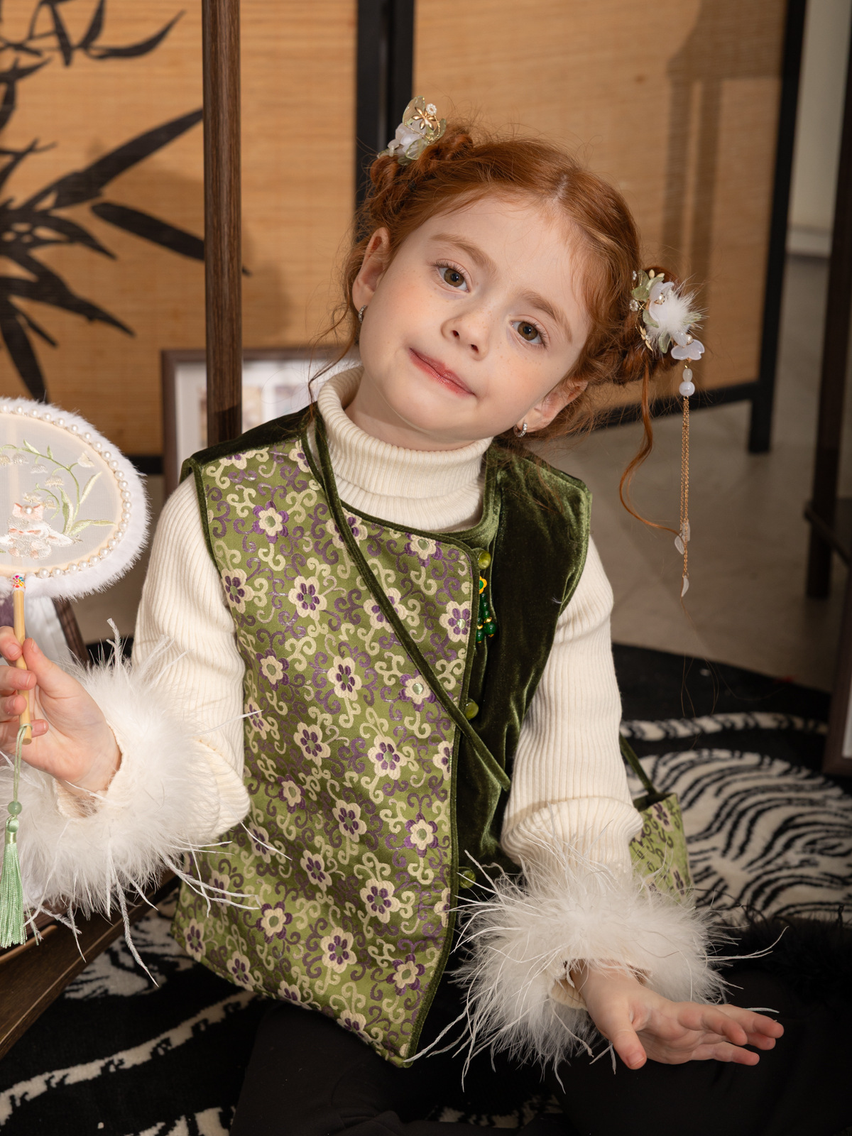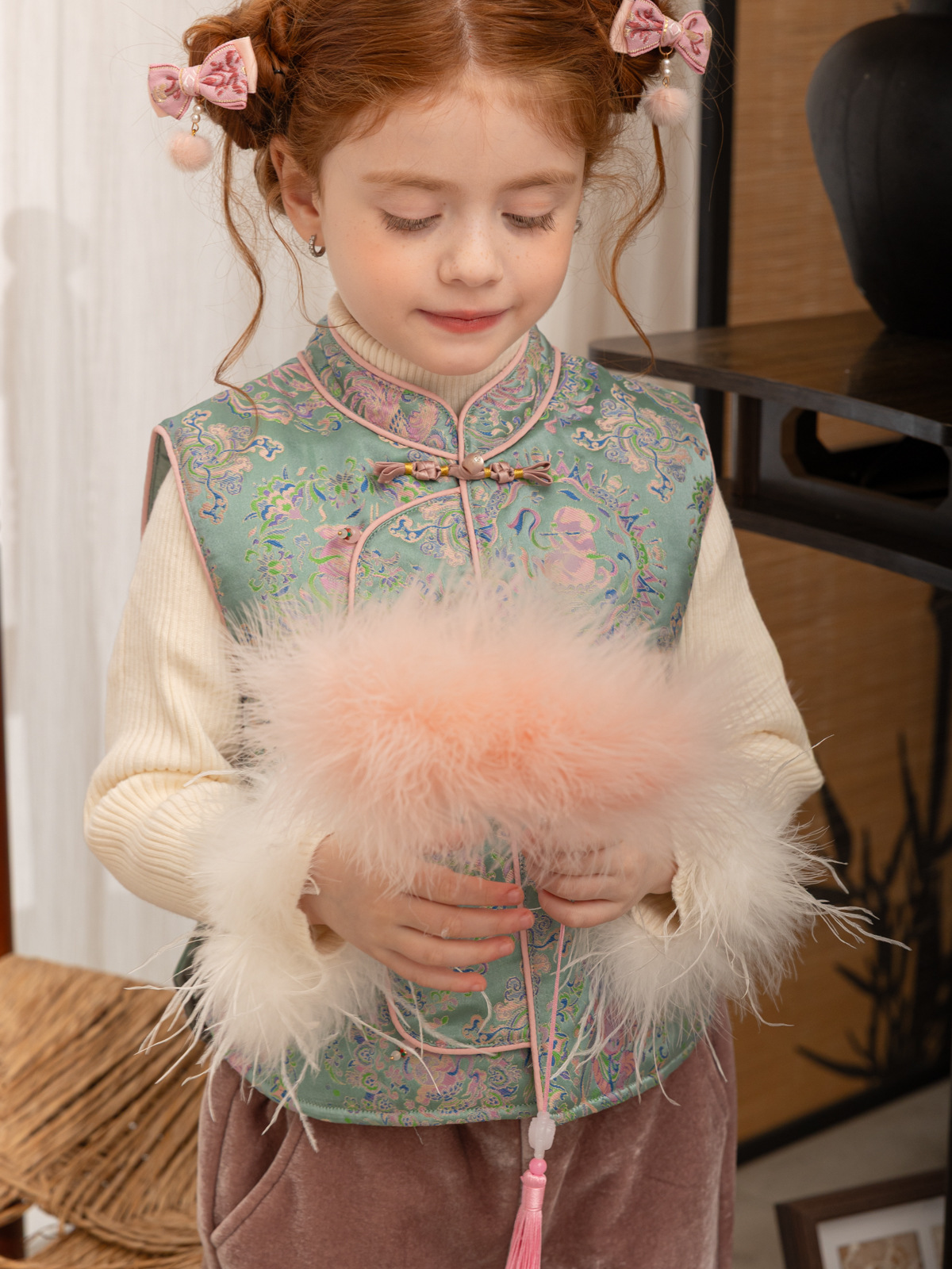 한국 아동복 어린이 고급 타조 울 바닥 스웨터 소녀 가을/겨울 2024 새로운 단색 스웨터