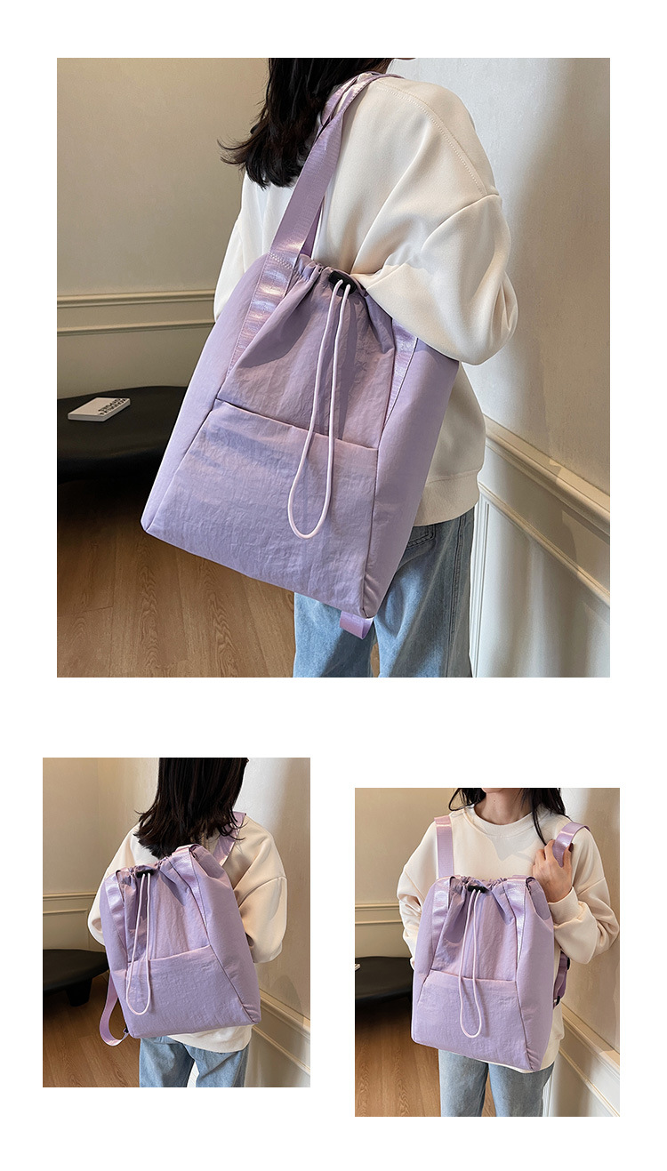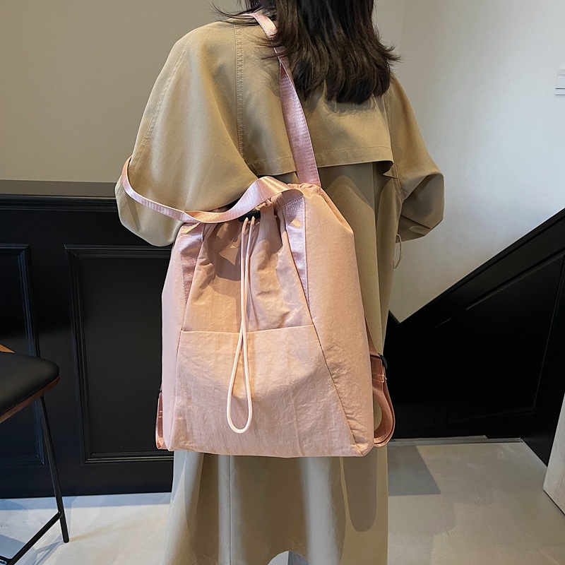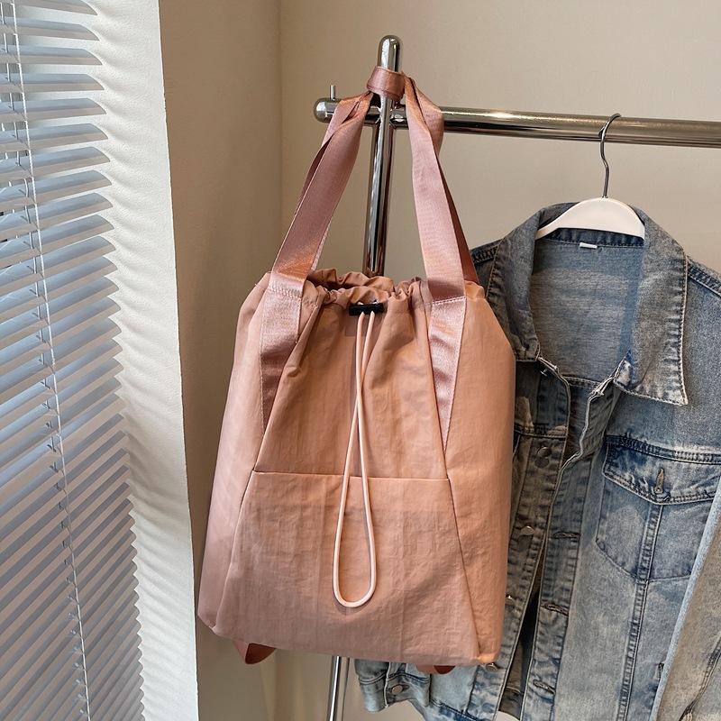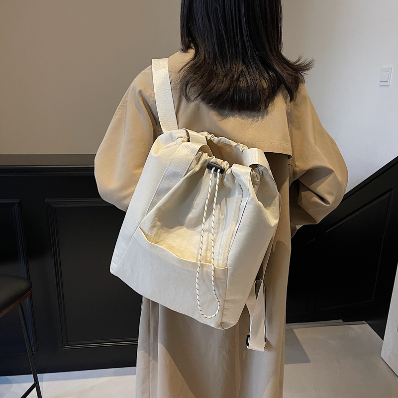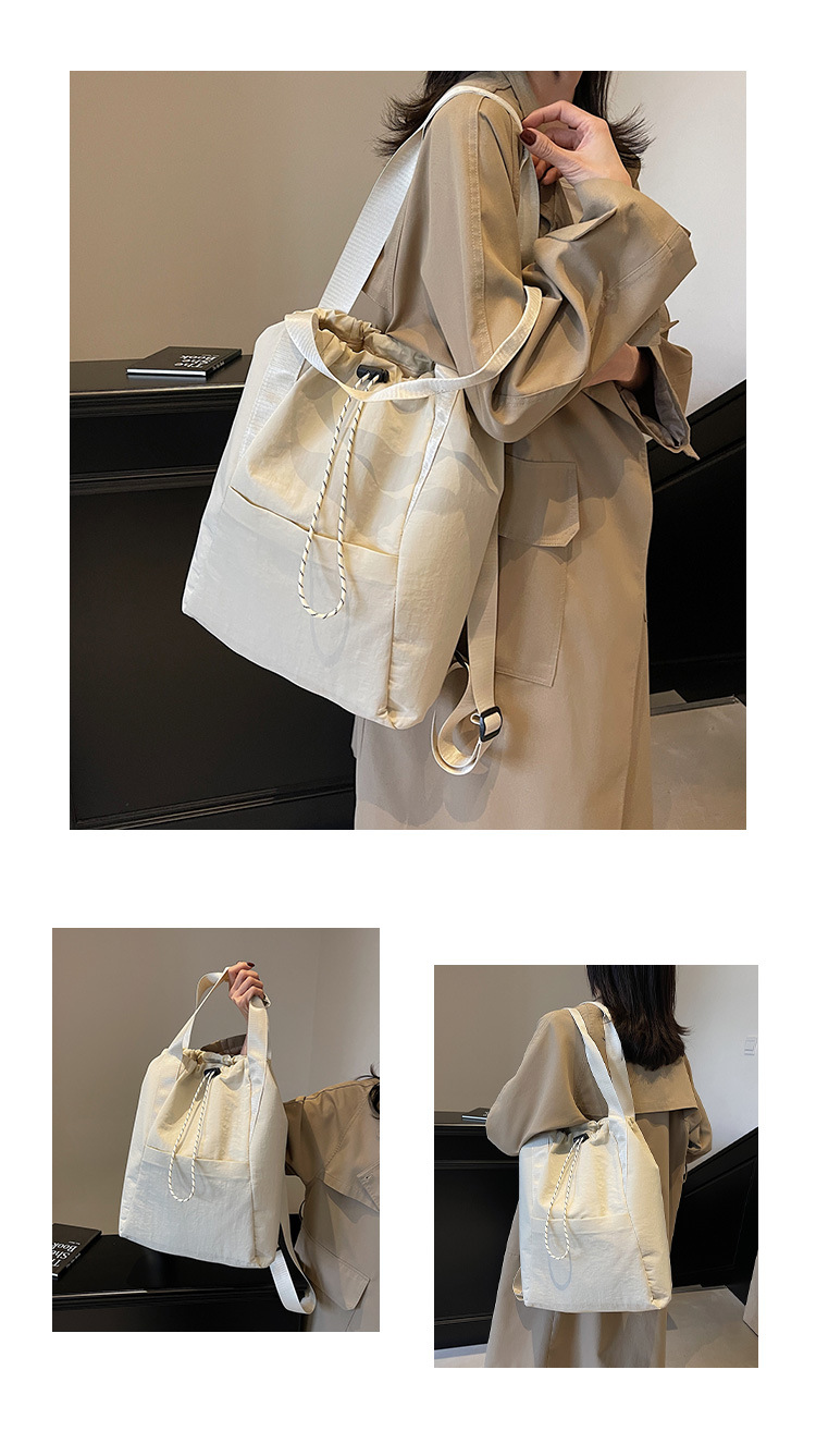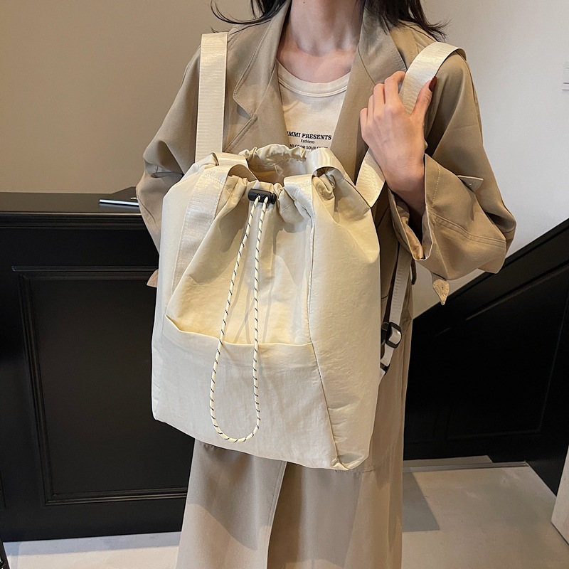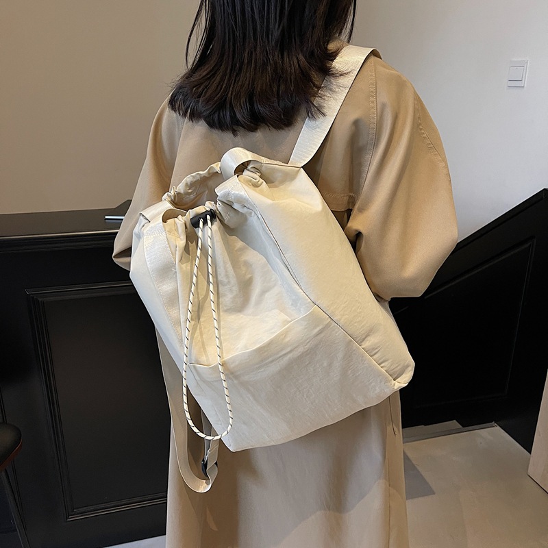 국경 간 패션 단색 간단한 통근 어깨 가방 여성의 2024 새로운 대용량 다중 사용 Drawstring 배낭스토어 가기