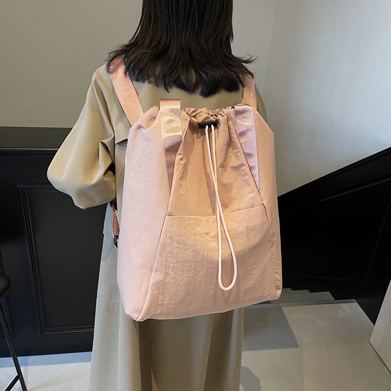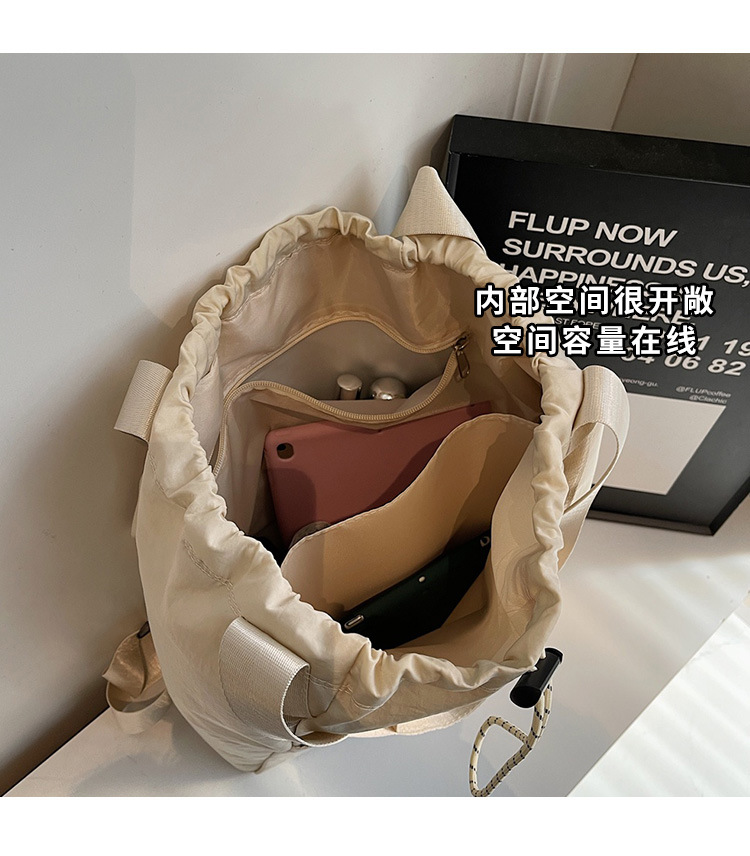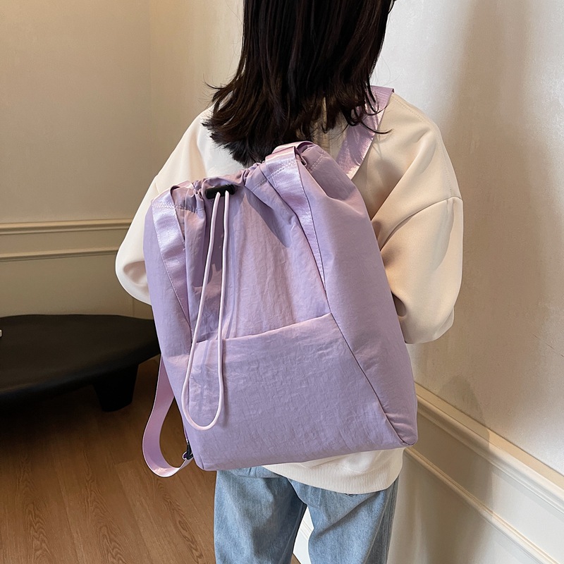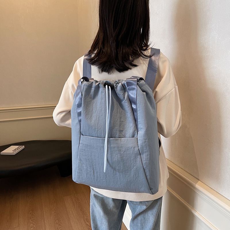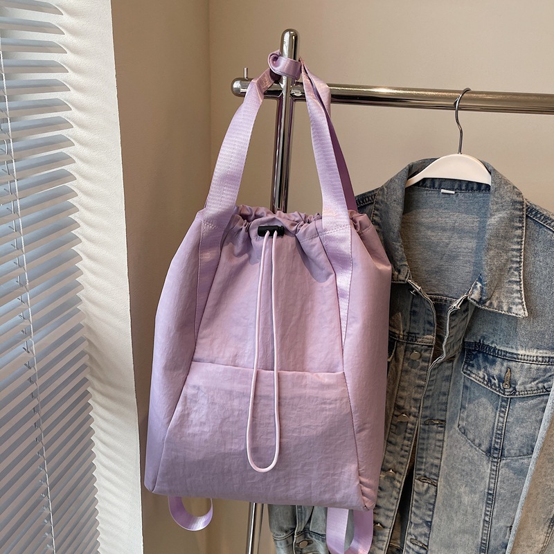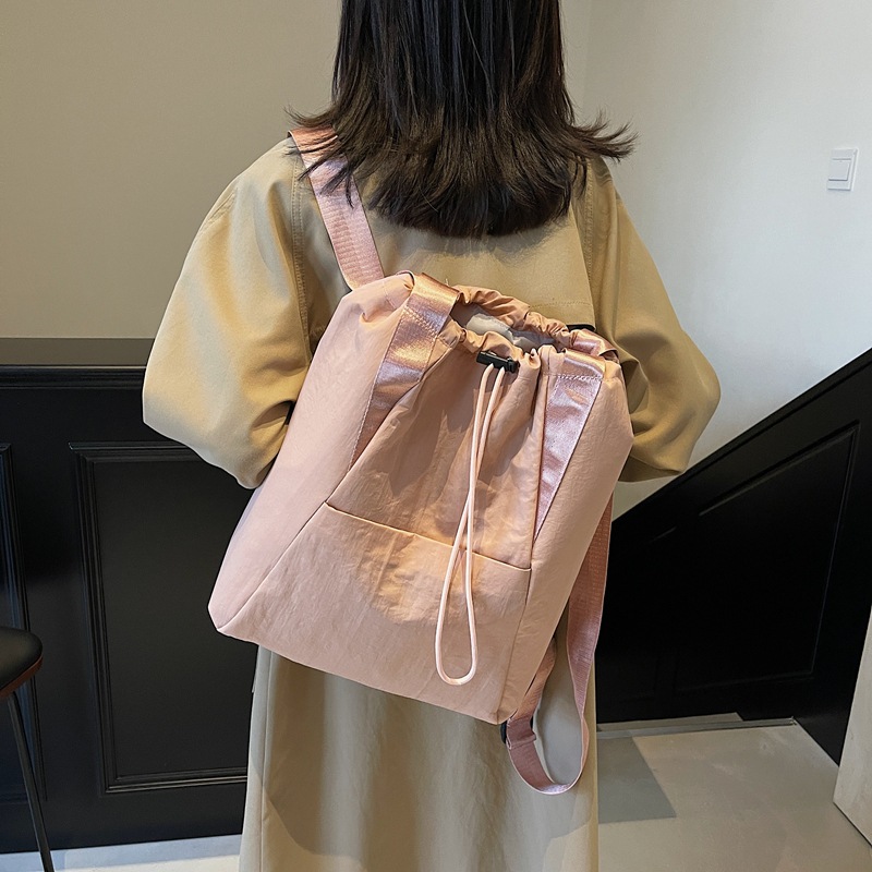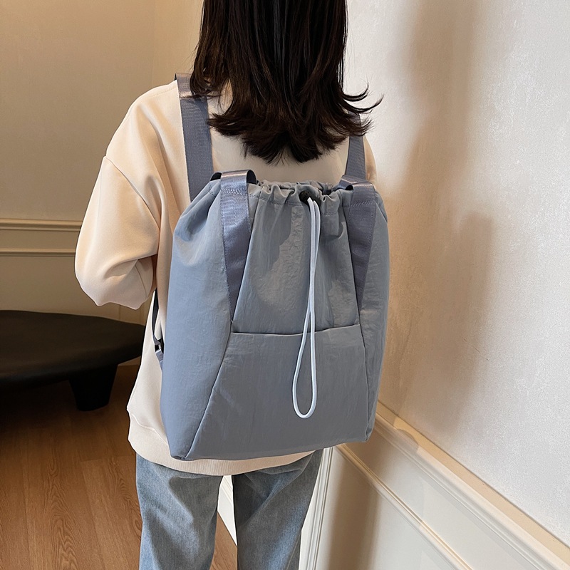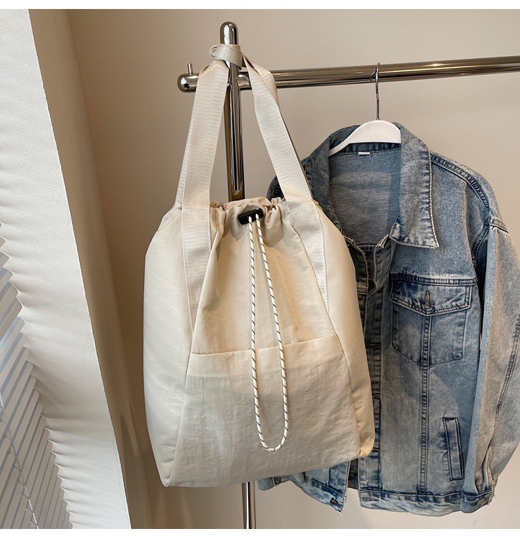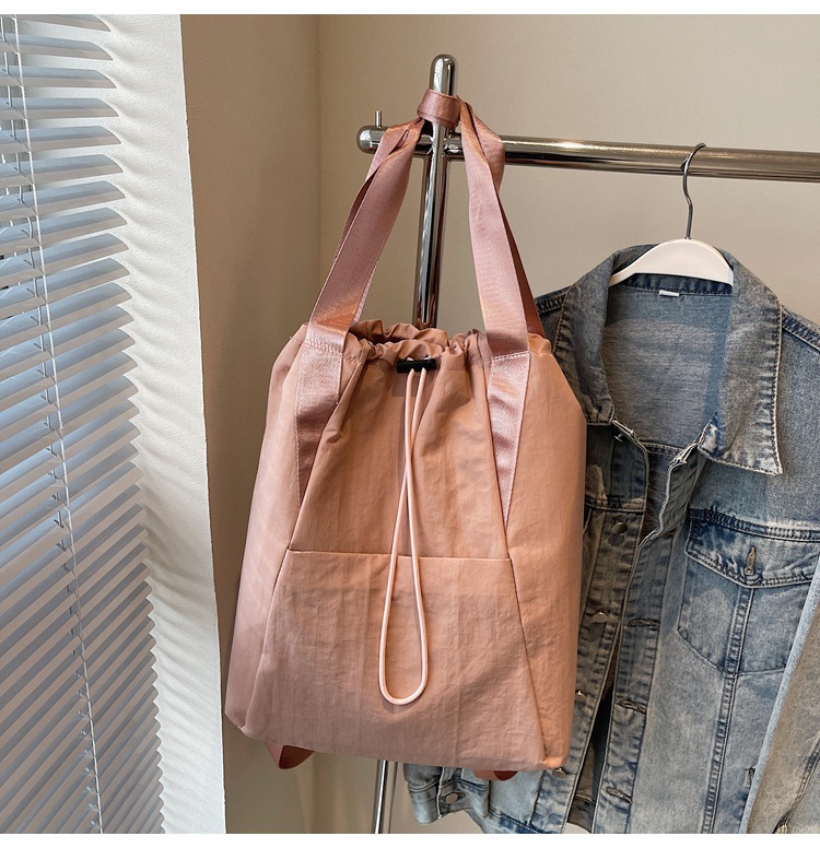 국경 간 패션 단색 간단한 통근 어깨 가방 여성의 2024 새로운 대용량 다중 사용 Drawstring 배낭스토어 가기