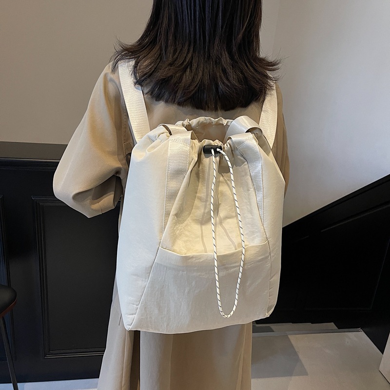 국경 간 패션 단색 간단한 통근 어깨 가방 여성의 2024 새로운 대용량 다중 사용 Drawstring 배낭