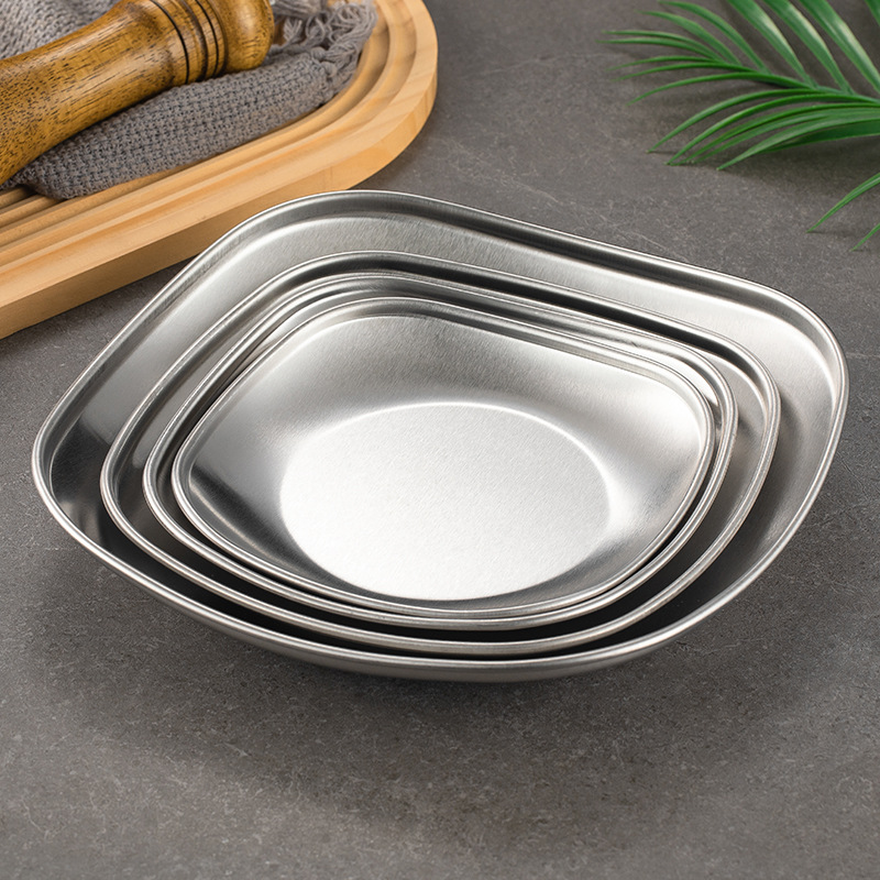 스테인레스 스틸 한국 스퀘어 바베큐 플레이트 디저트 플레이트 얕은 플레이트 황금 바베큐 플레이트 핫 팟 플레이트 커피 트레이스토어 가기
