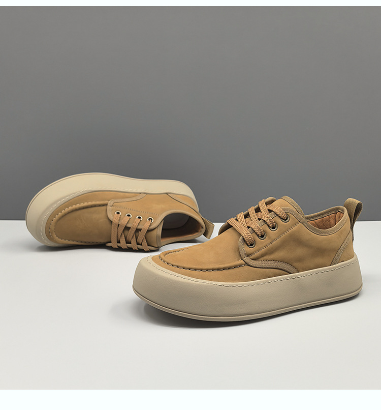 정품 가죽 틈새 보드 신발 남성용 트렌디 한 올매치 신발 남성용 유럽 역 신발 비뚤어진 머리 캐주얼 신발 귀여운 못생긴 망고 신발
