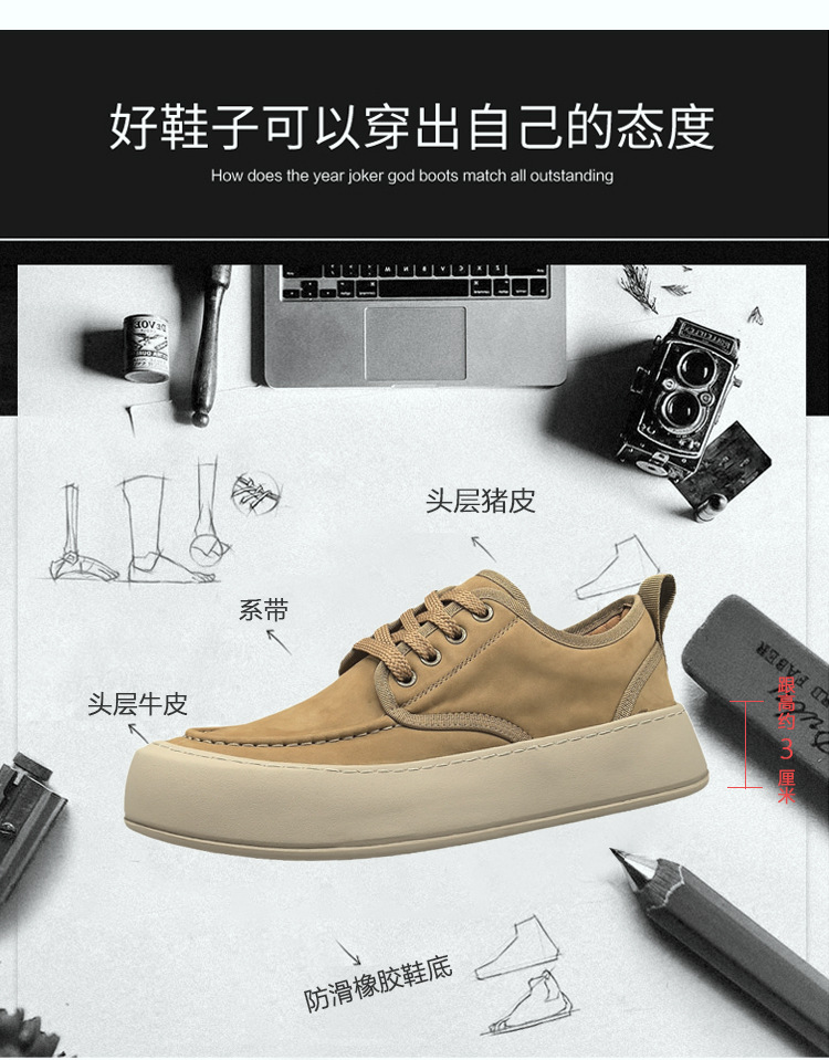 정품 가죽 틈새 보드 신발 남성용 트렌디 한 올매치 신발 남성용 유럽 역 신발 비뚤어진 머리 캐주얼 신발 귀여운 못생긴 망고 신발스토어 가기