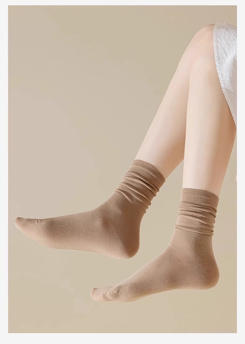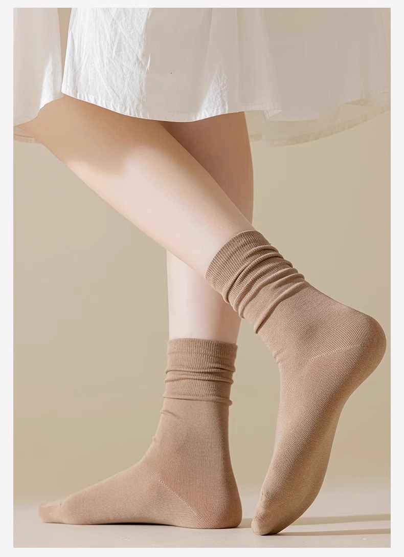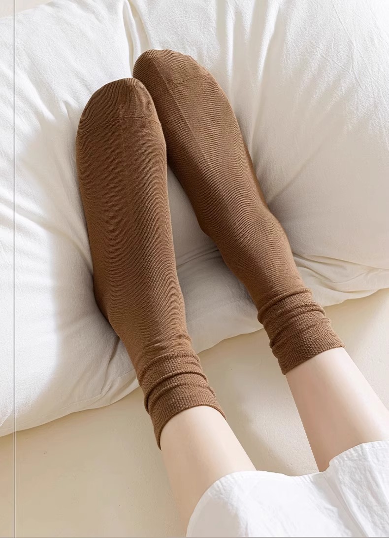 양말 여성용 미드 튜브 양말 봄 및 가을 Maillard 다크 브라운 작은 가죽 신발이 달린 코일 양말 여름 다크 브라운 미드 튜브 스타킹스토어 가기