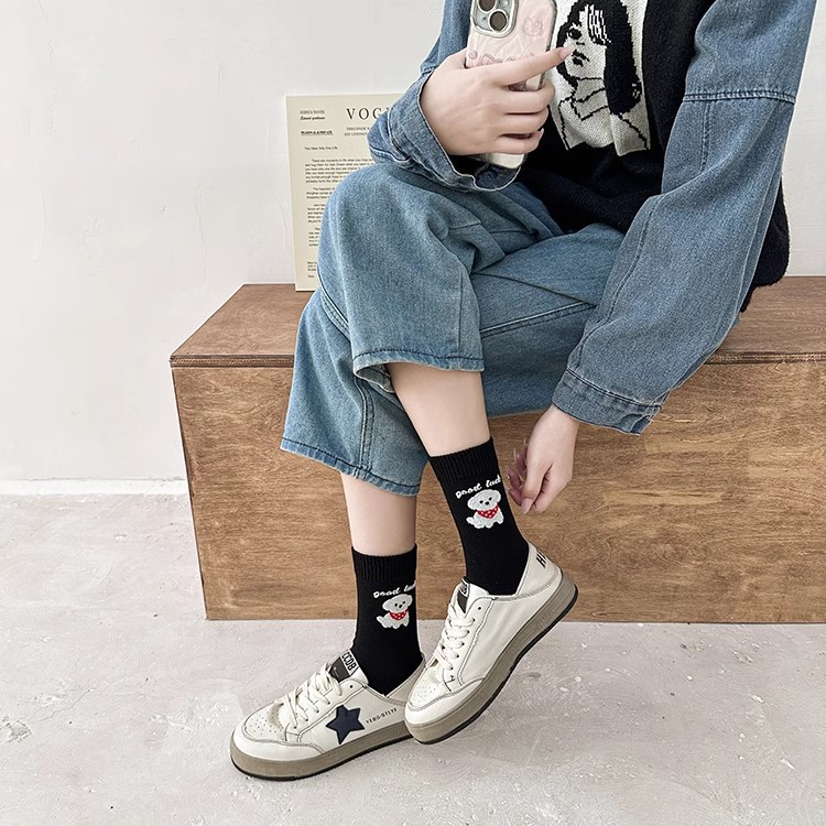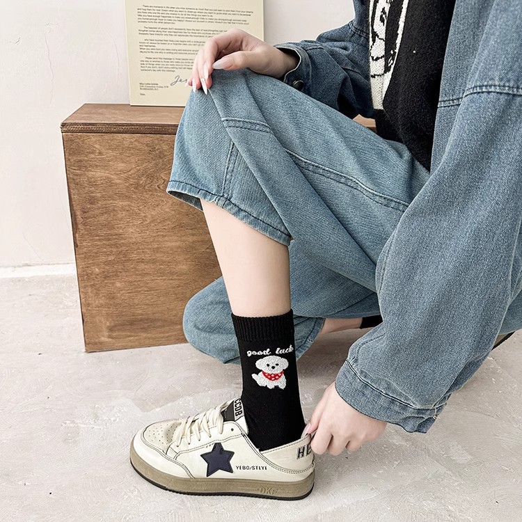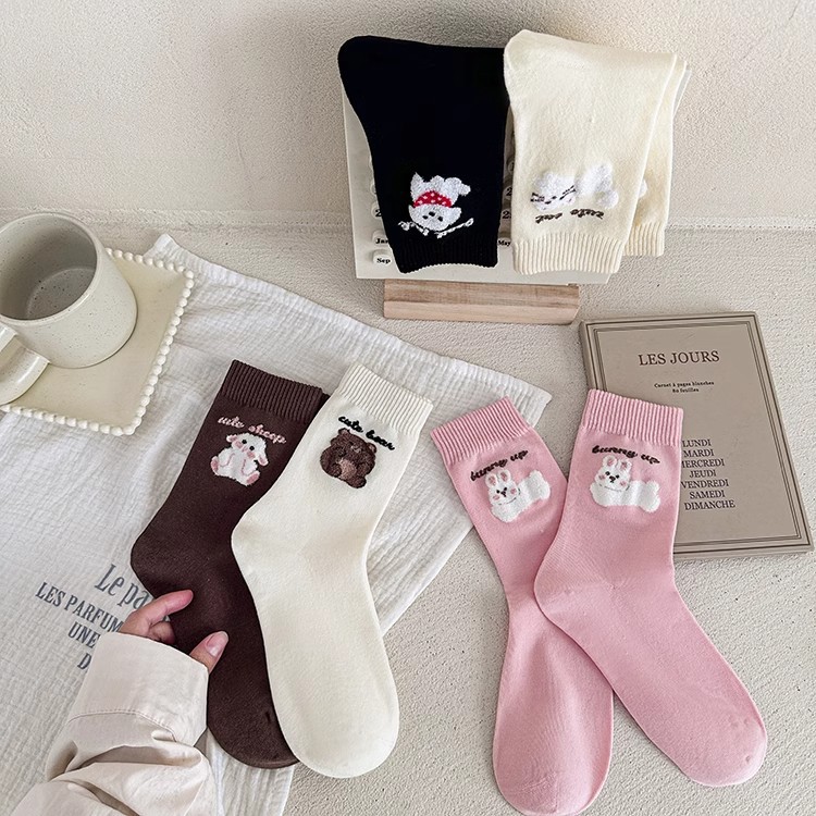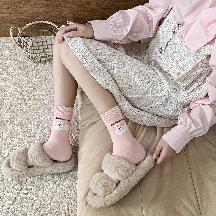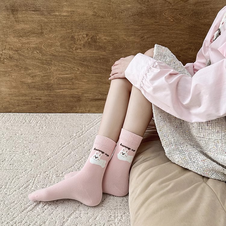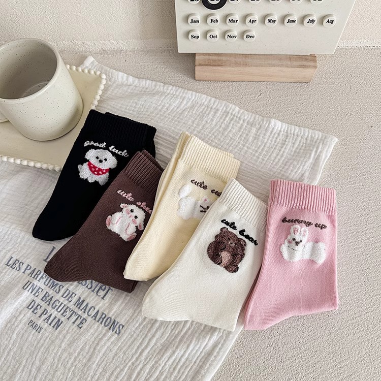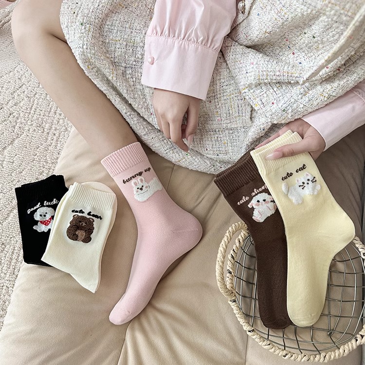 귀여운 만화 미드 양말 여성의 뼈없는 재봉 머리 사계절 양면 양말 강아지 새끼 고양이 재미 잠금 더미 양말스토어 가기