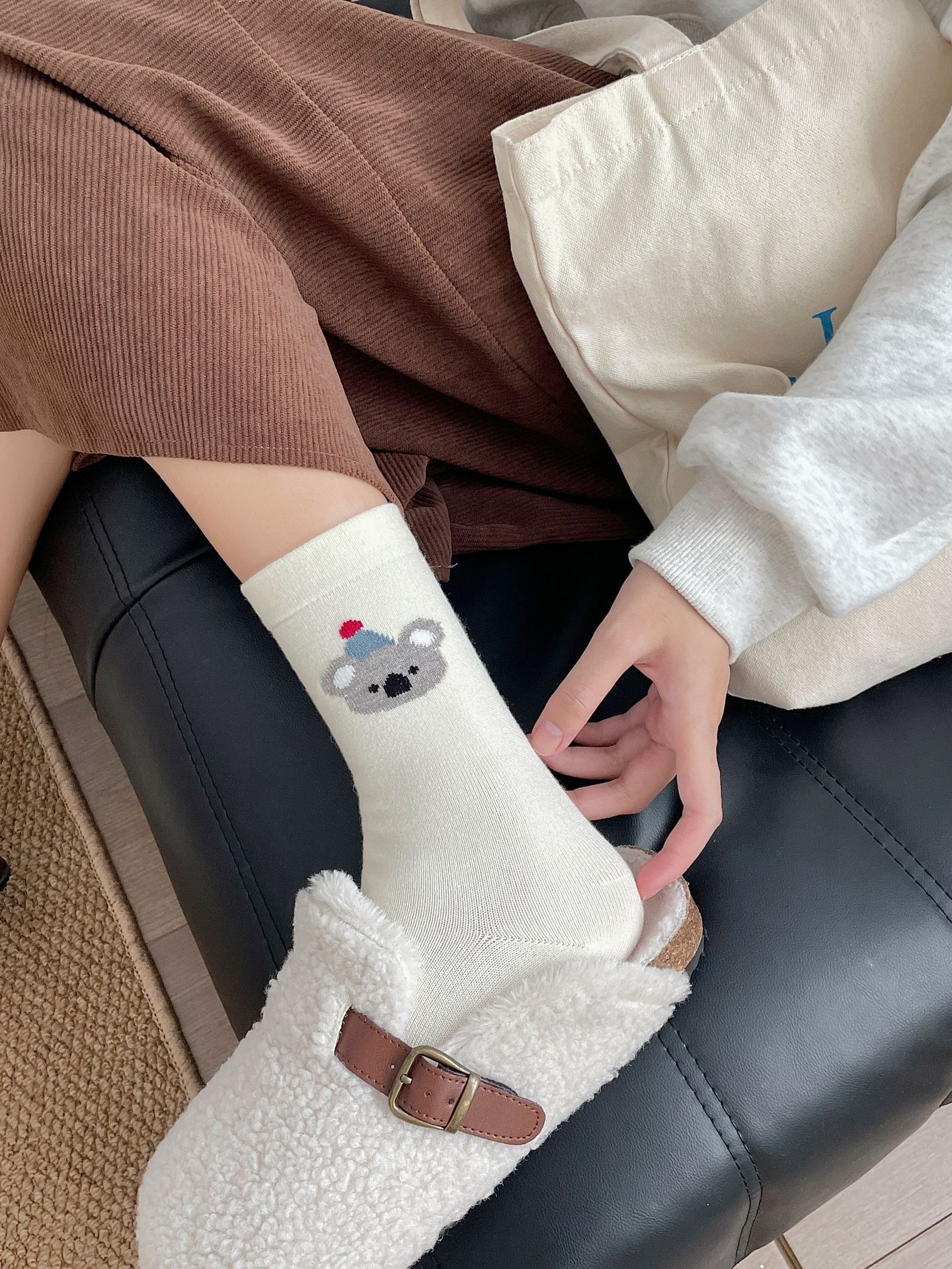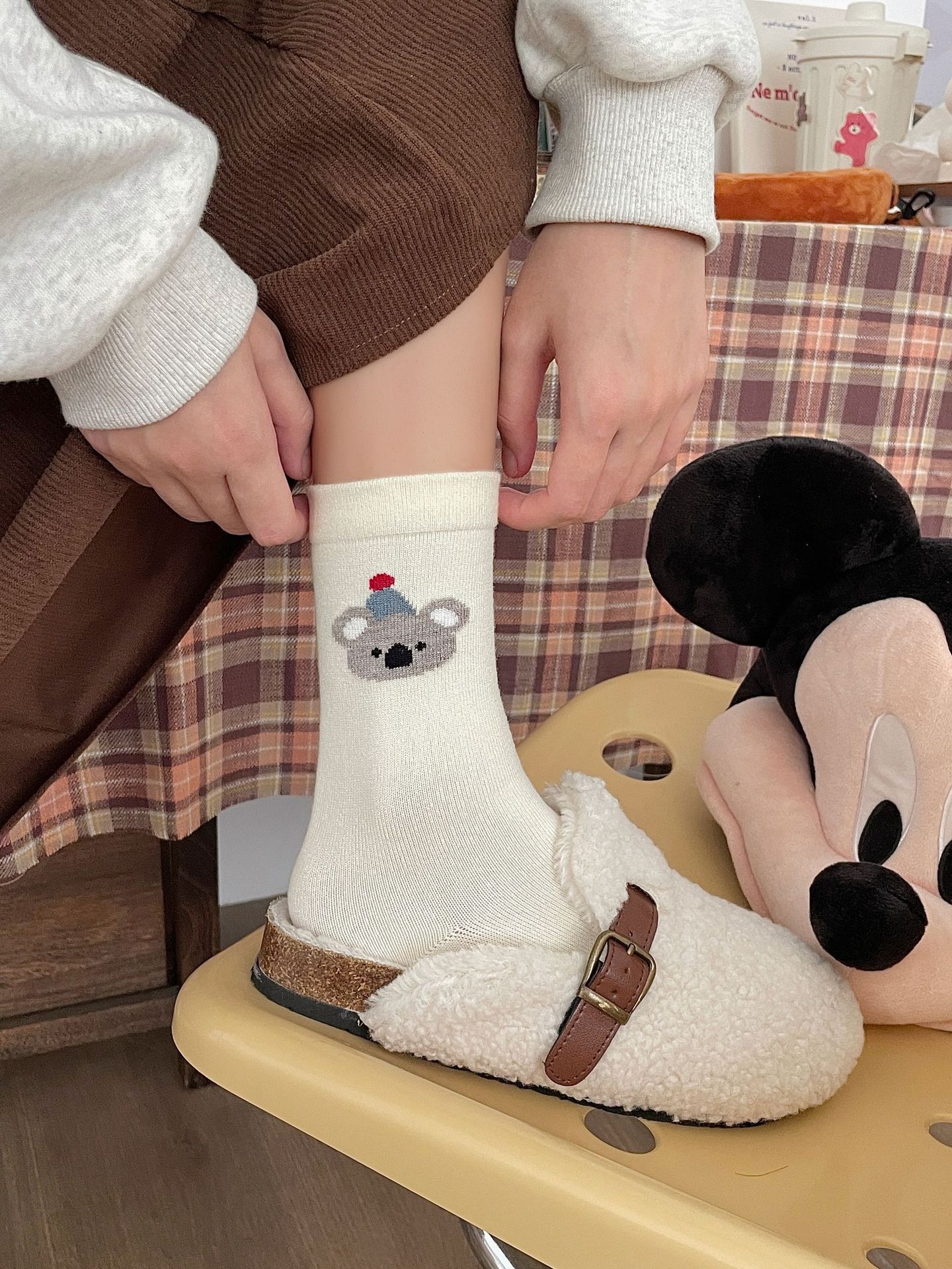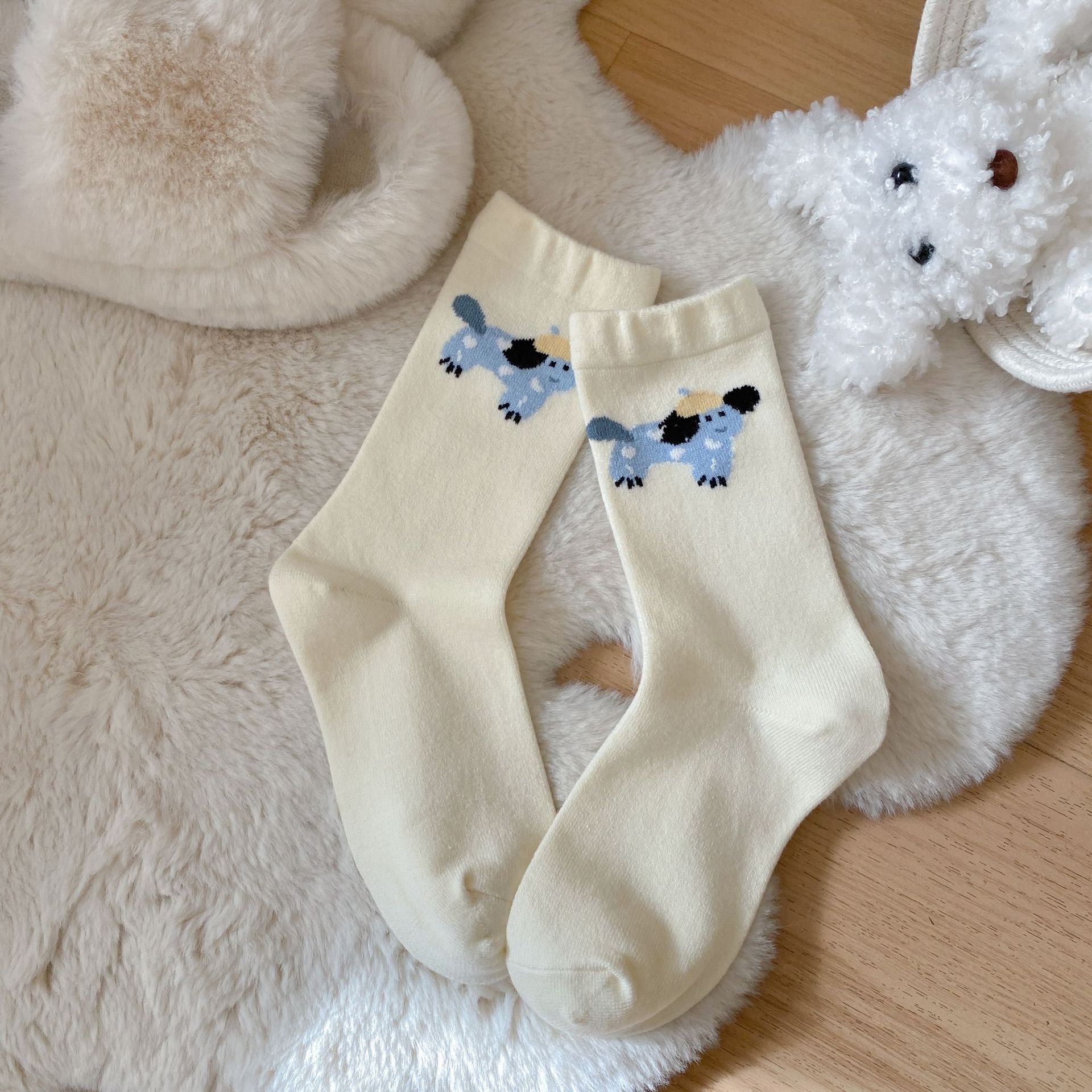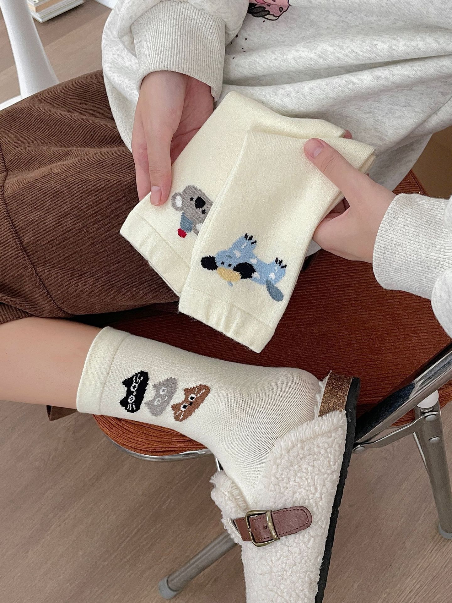 캐시미어 강아지 양말 여성의 가을과 겨울 두꺼운 따뜻한 일본 스타일 Ins 트렌디 한 달콤한 울 양말 귀여운 만화 미드 튜브 양말스토어 가기