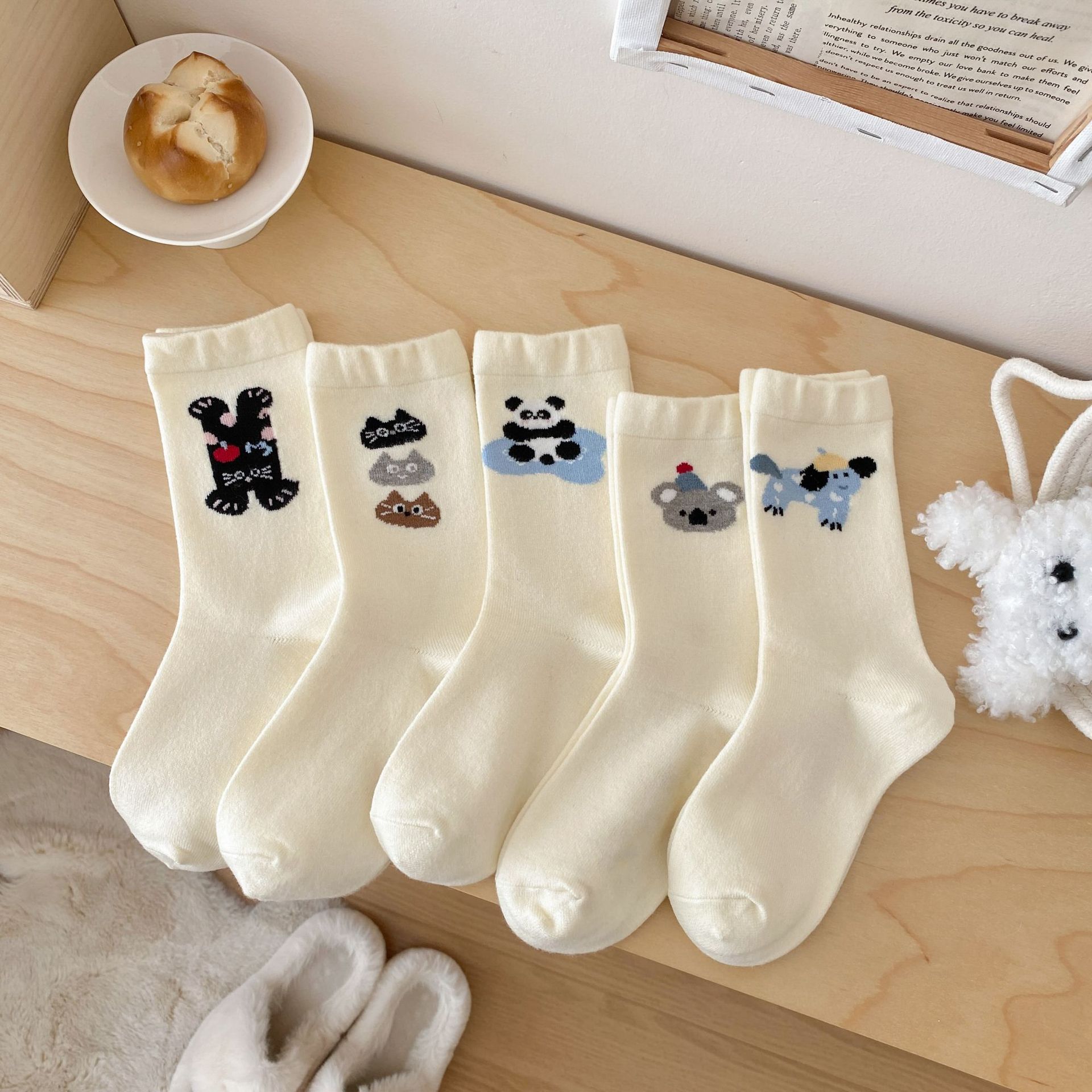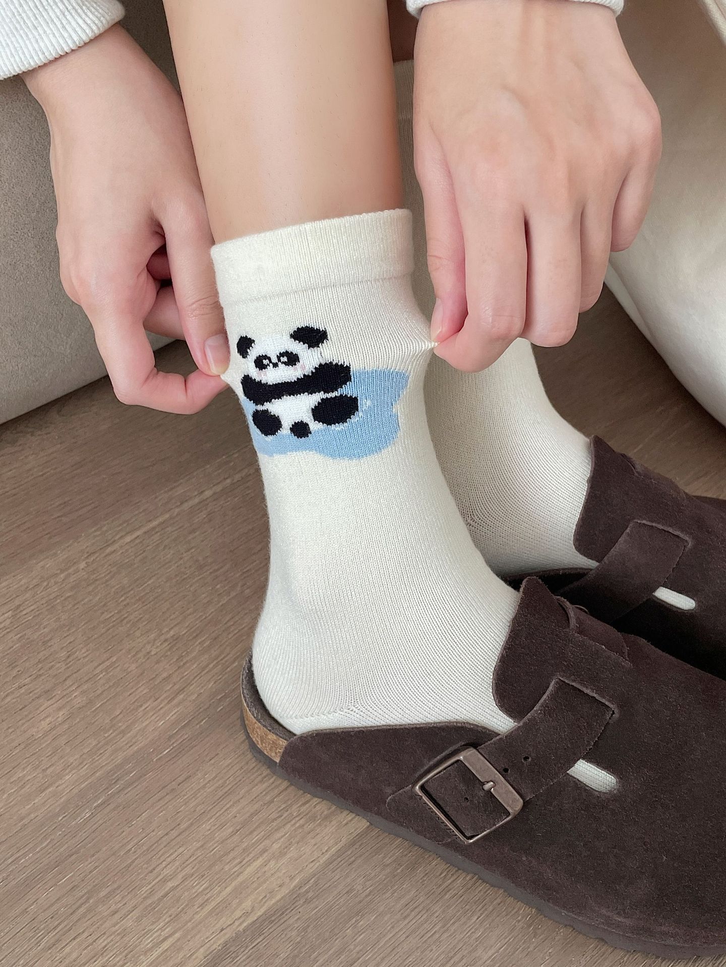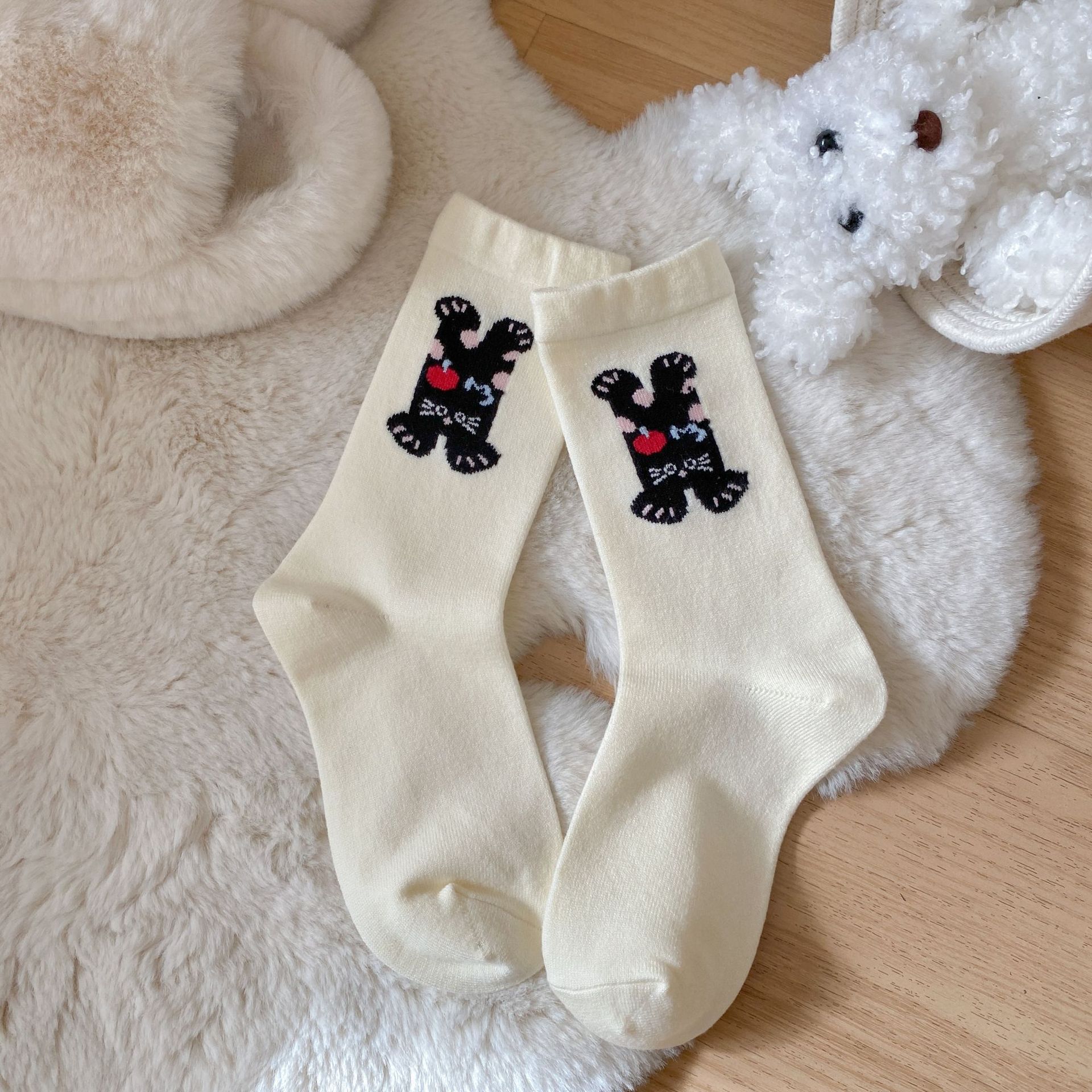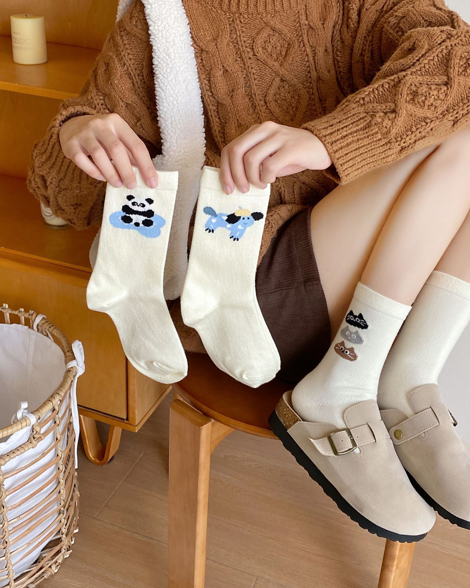 캐시미어 강아지 양말 여성의 가을과 겨울 두꺼운 따뜻한 일본 스타일 Ins 트렌디 한 달콤한 울 양말 귀여운 만화 미드 튜브 양말스토어 가기