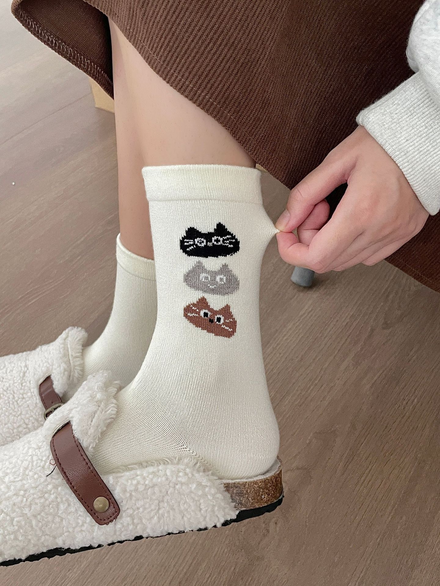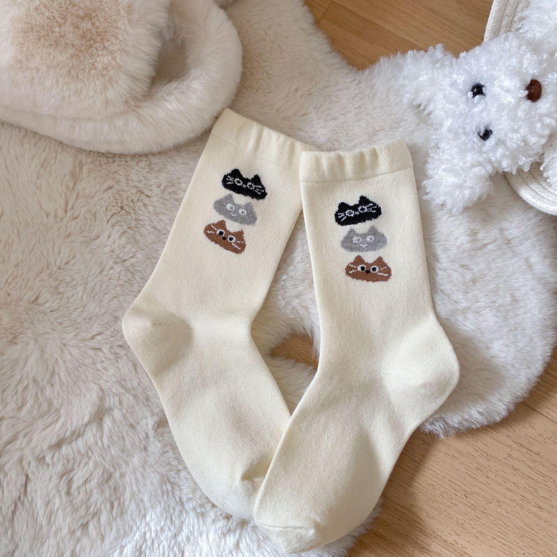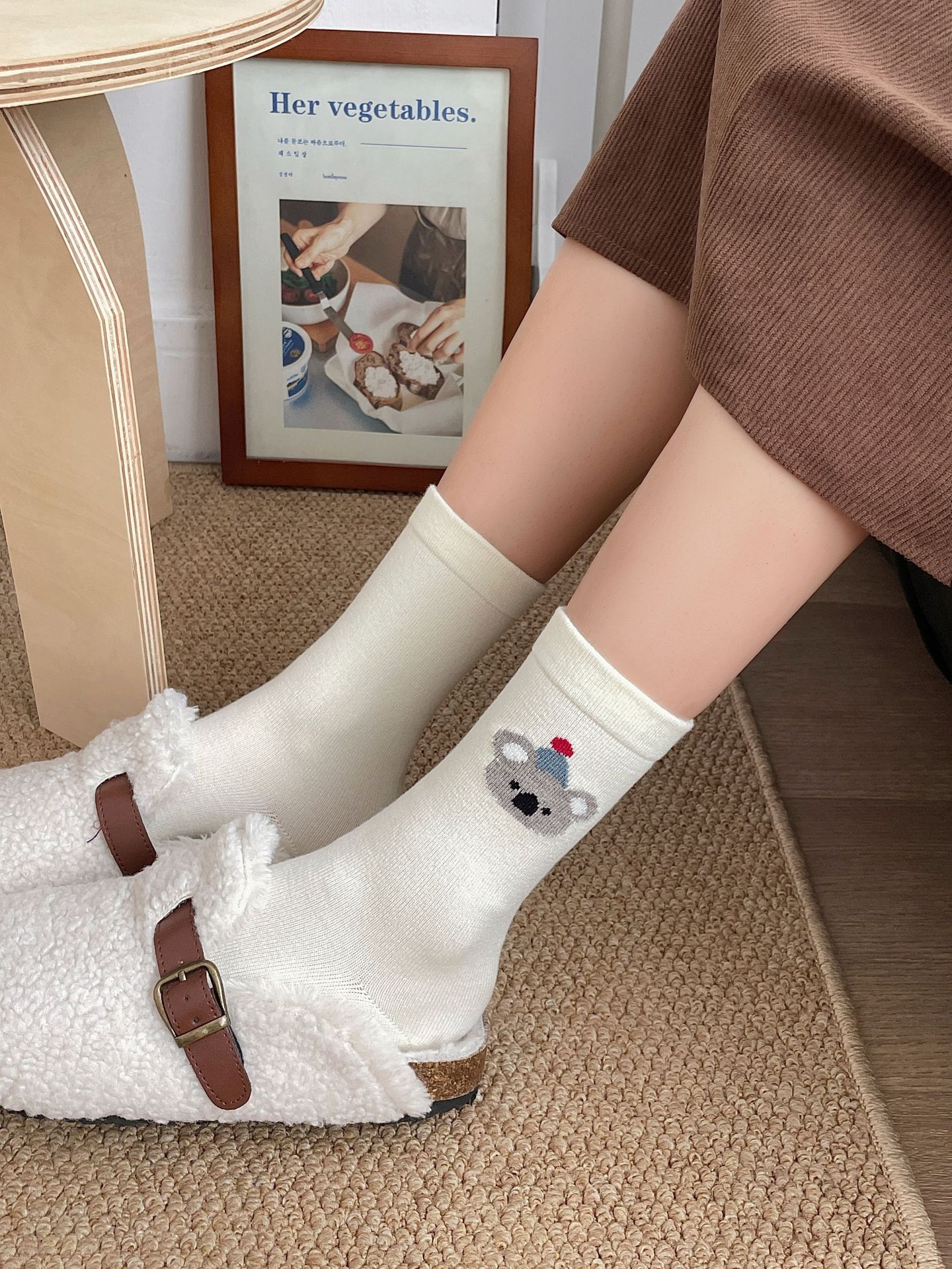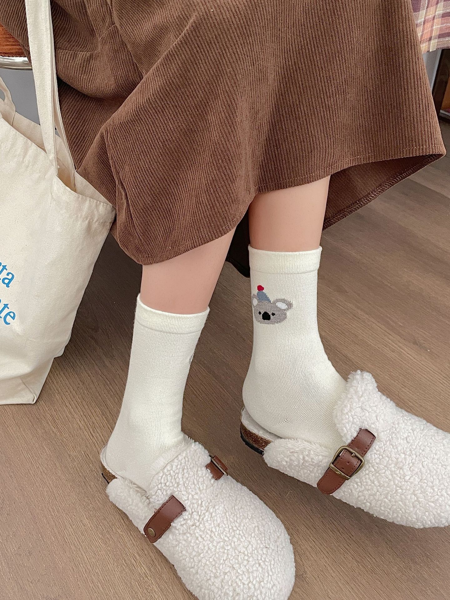 캐시미어 강아지 양말 여성의 가을과 겨울 두꺼운 따뜻한 일본 스타일 Ins 트렌디 한 달콤한 울 양말 귀여운 만화 미드 튜브 양말스토어 가기