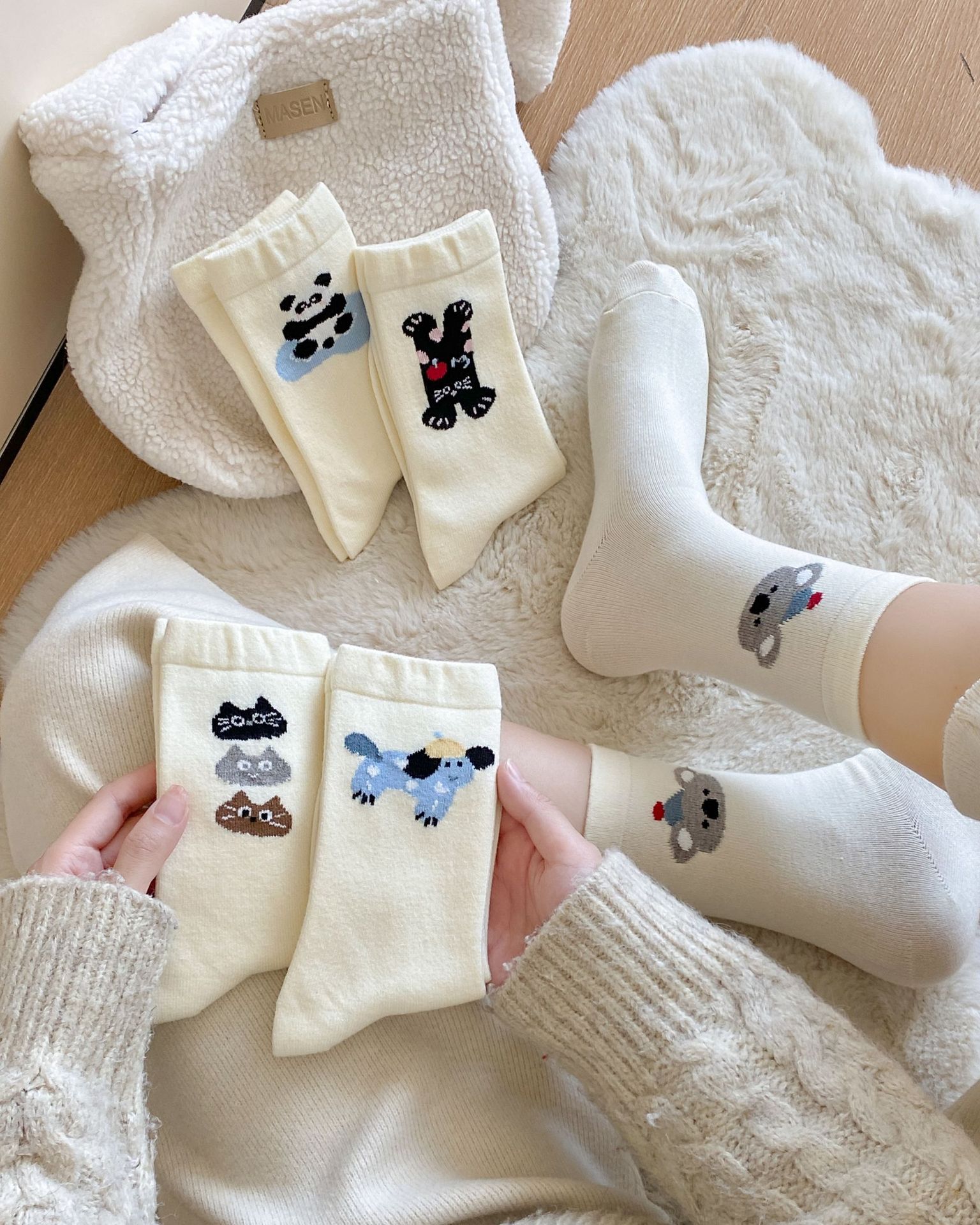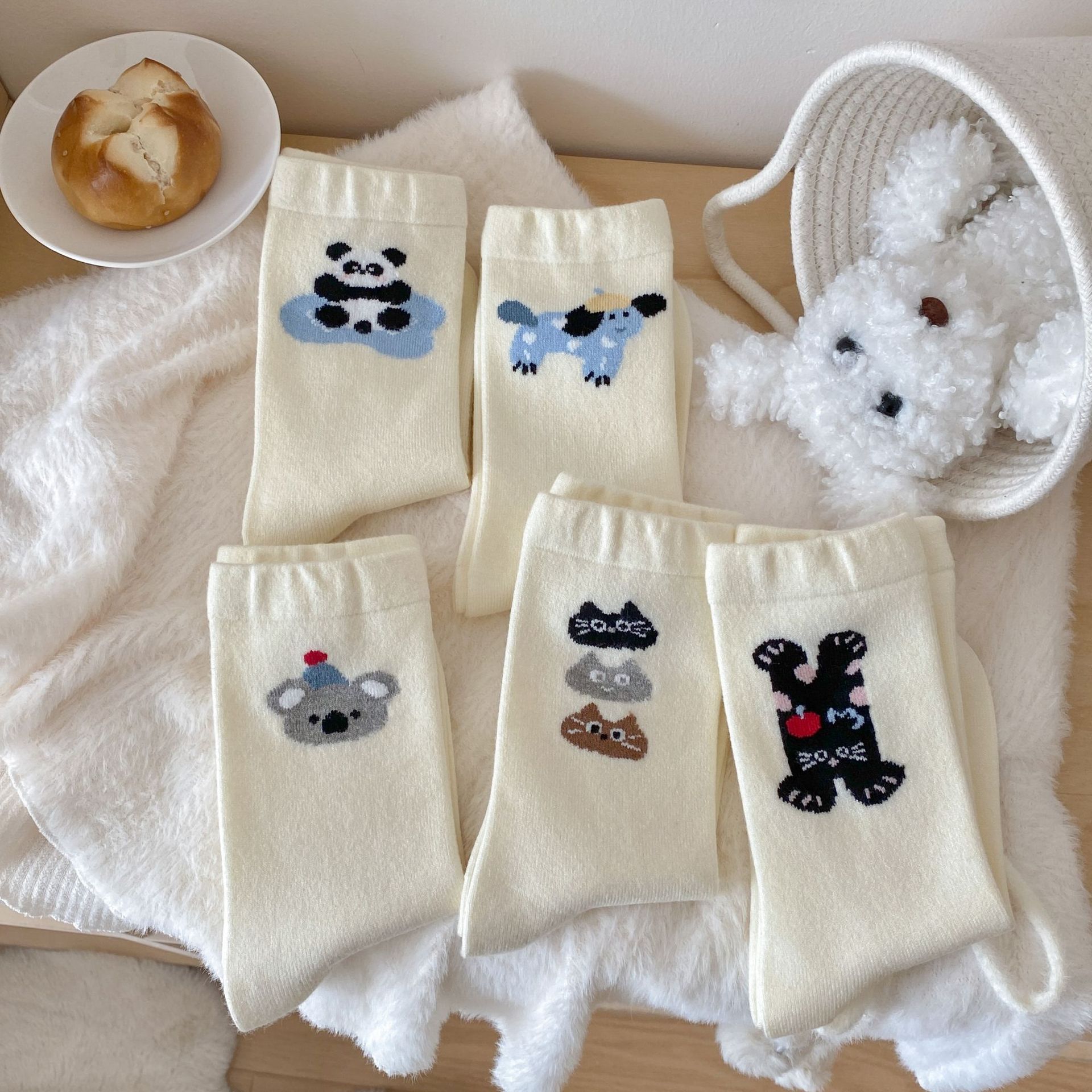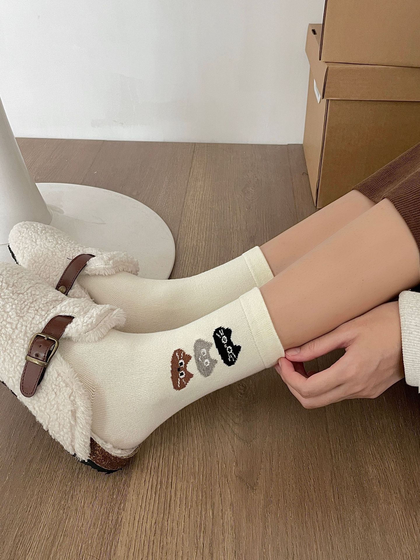 캐시미어 강아지 양말 여성의 가을과 겨울 두꺼운 따뜻한 일본 스타일 Ins 트렌디 한 달콤한 울 양말 귀여운 만화 미드 튜브 양말