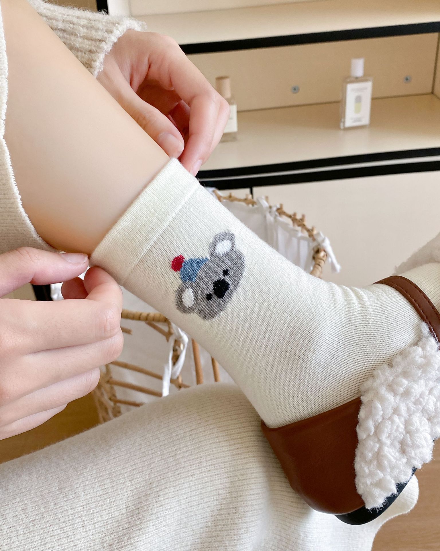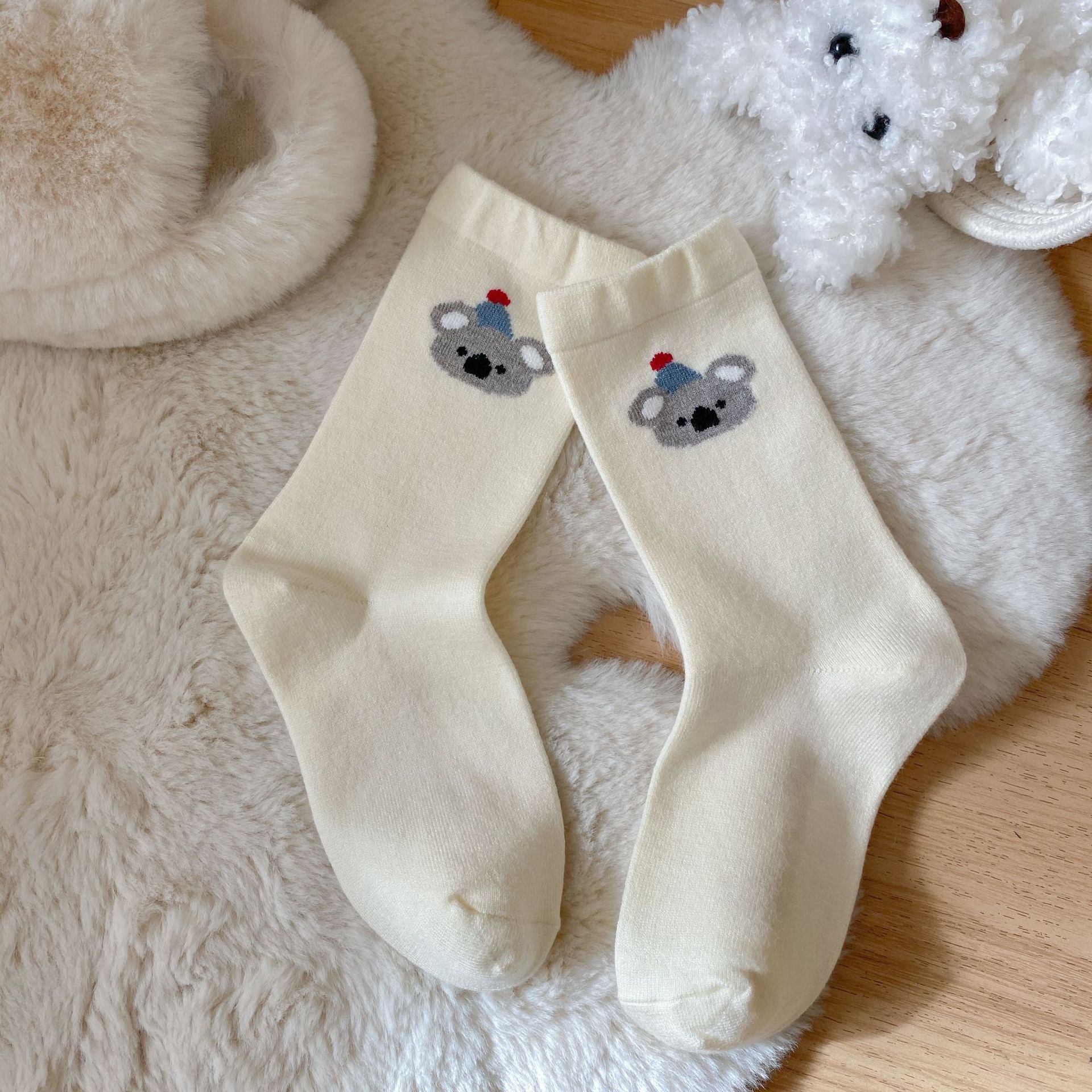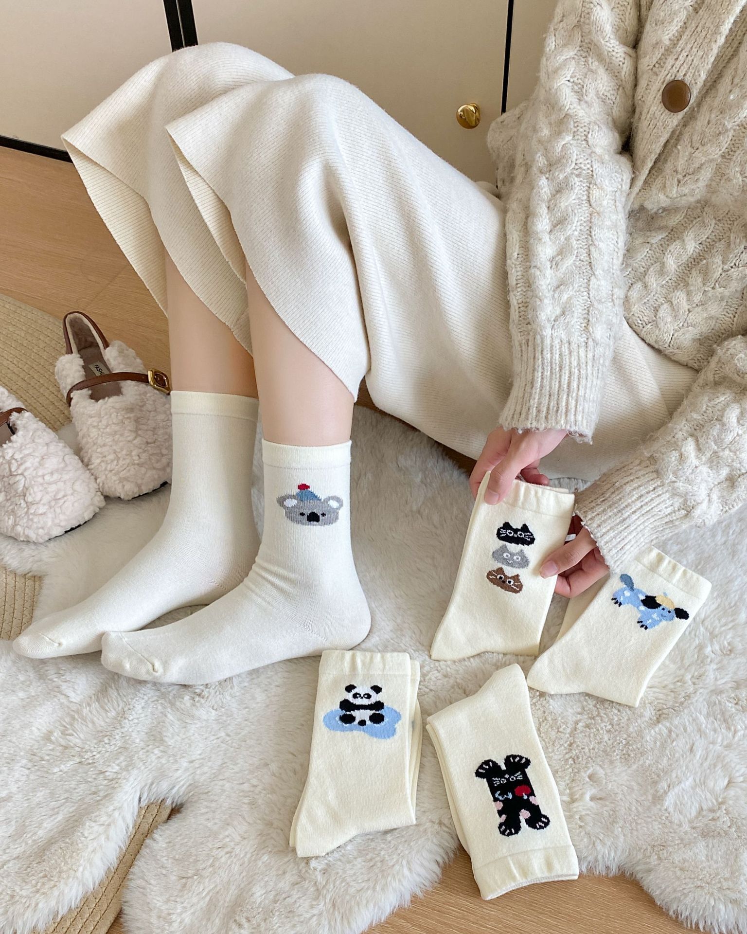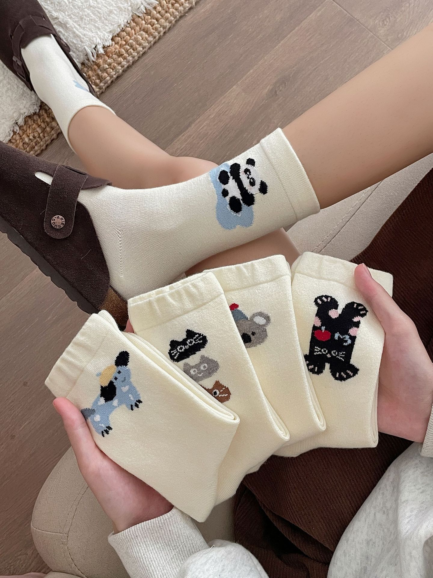 캐시미어 강아지 양말 여성의 가을과 겨울 두꺼운 따뜻한 일본 스타일 Ins 트렌디 한 달콤한 울 양말 귀여운 만화 미드 튜브 양말