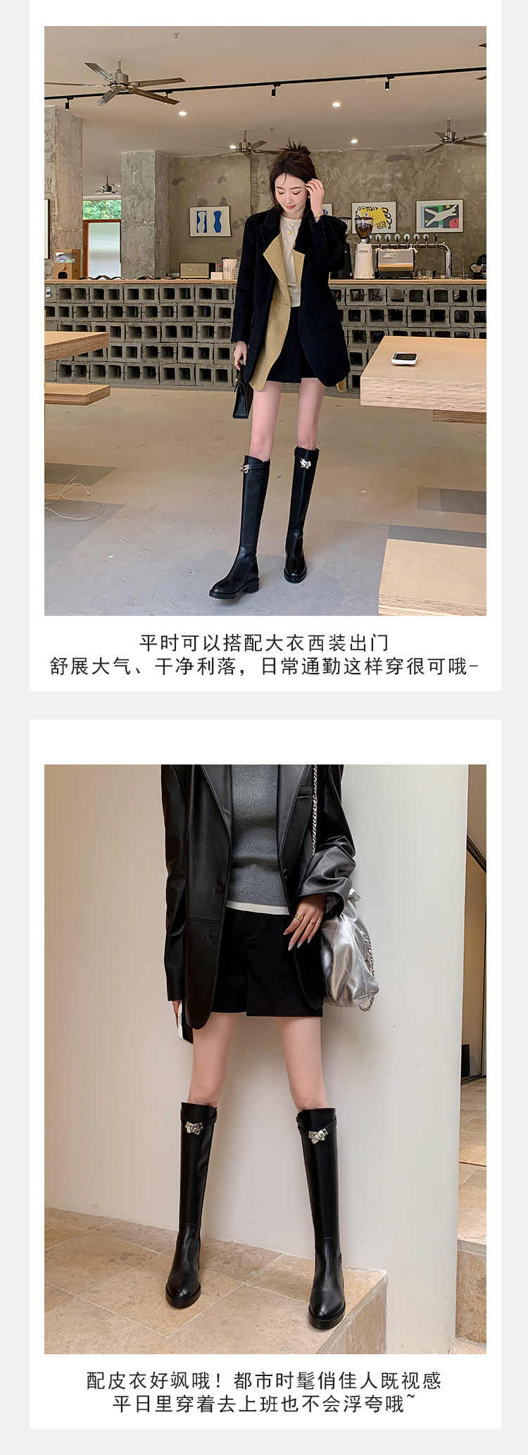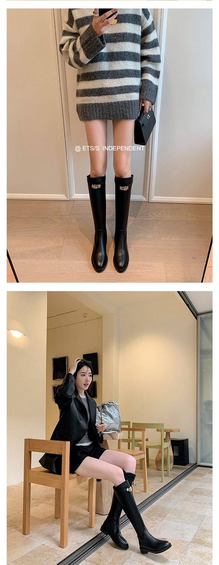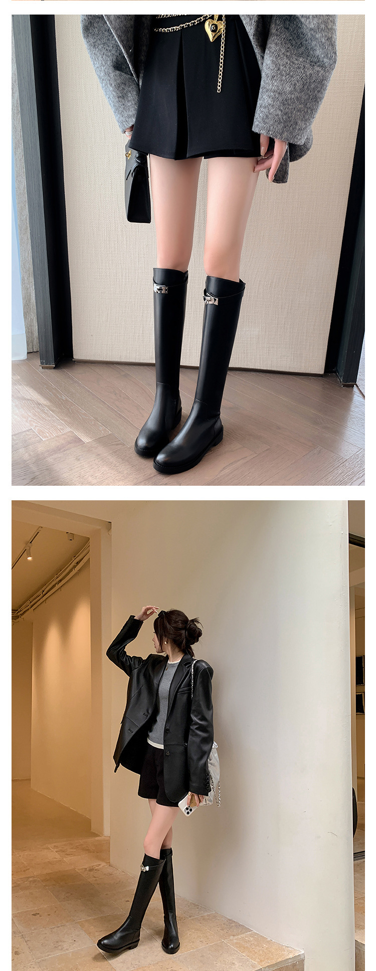 편안한 올 매치 메탈 잠금 라운드 헤드 Cowhide 기사 부츠 가을 및 겨울 2024 여성을위한 새로운 기사 높은 부츠스토어 가기