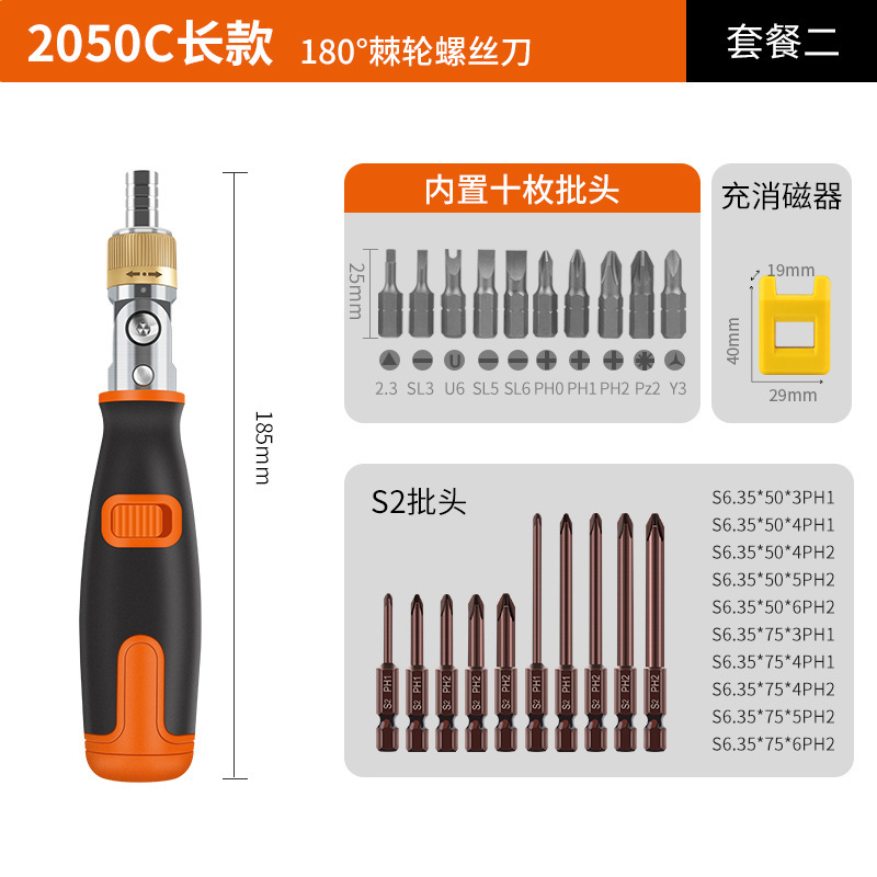 • 2050E(짧은) 래칫 드라이버 + 자화 장치 + 긴 십자 한 단어 내부 육각형 조합