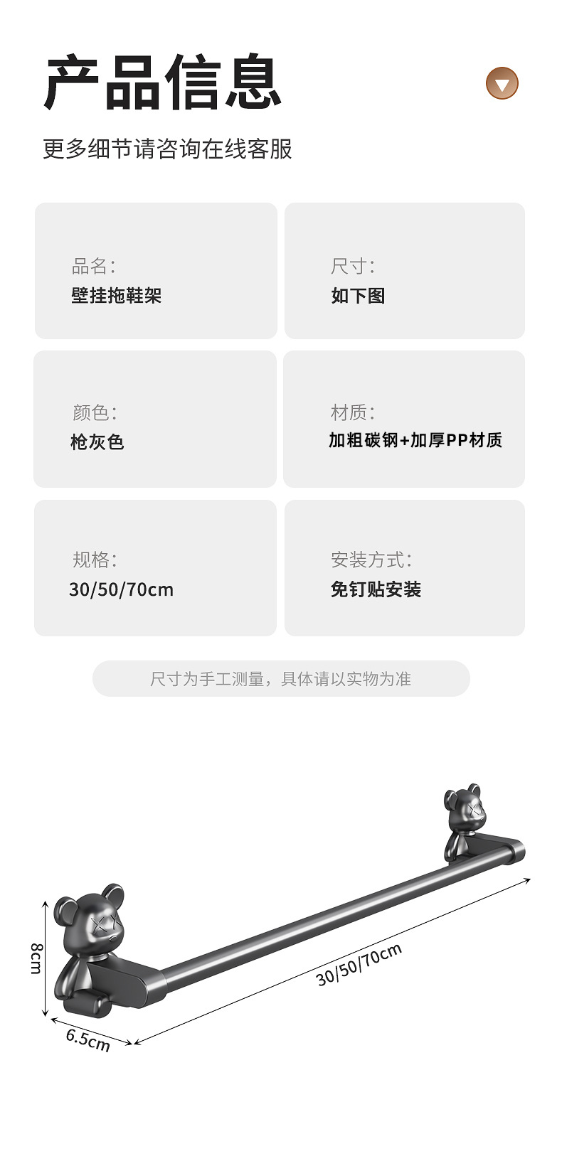 • 30CM+50CM 회색 곰 모델, 네일 프리 스티커 포함