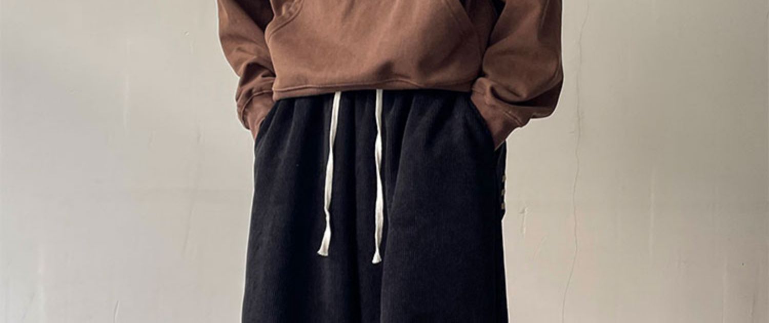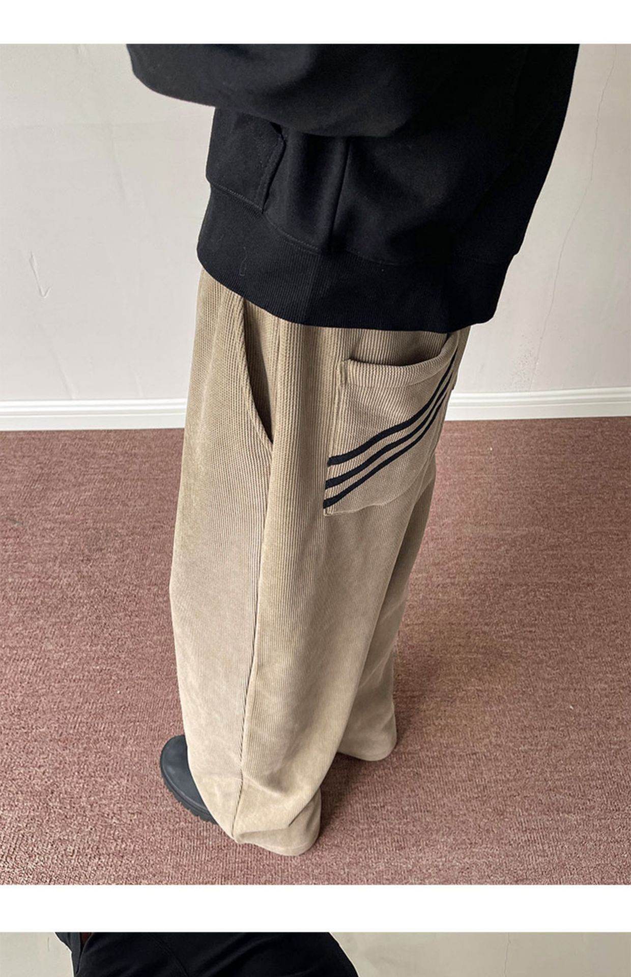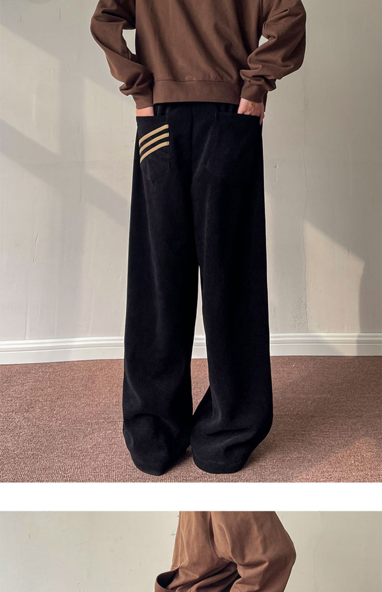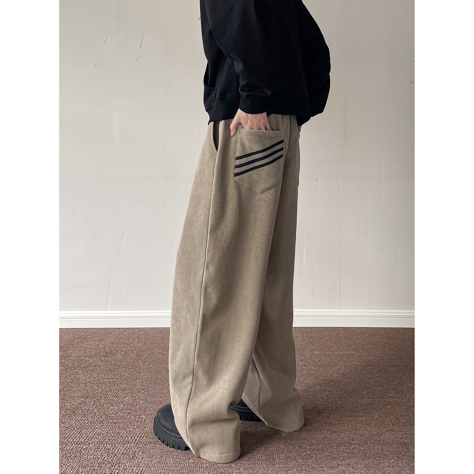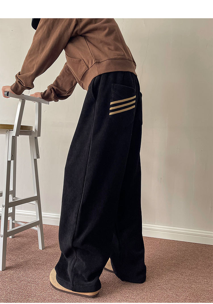 게으른 스타일 와이드 레그 바지 3 바 가드 바지 남자 코듀로이 캐주얼 바지 미국 스타일 드래핑 스트레이트 바지 트렌디스토어 가기